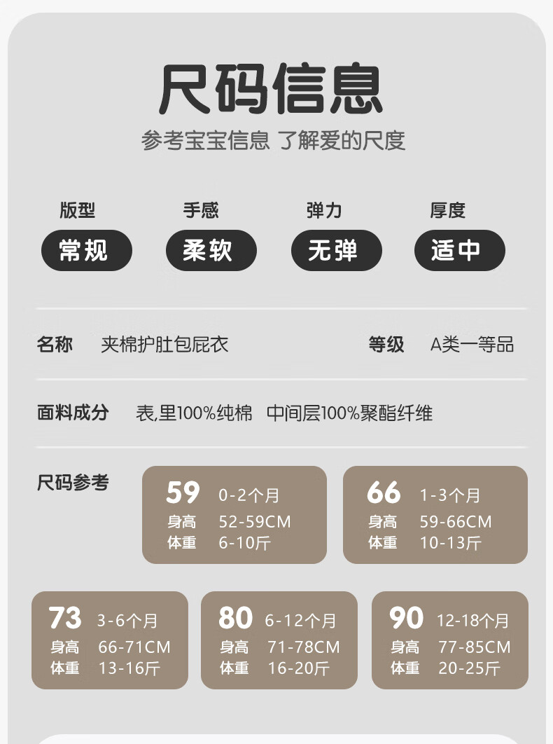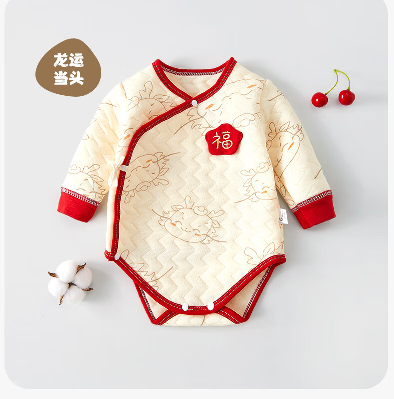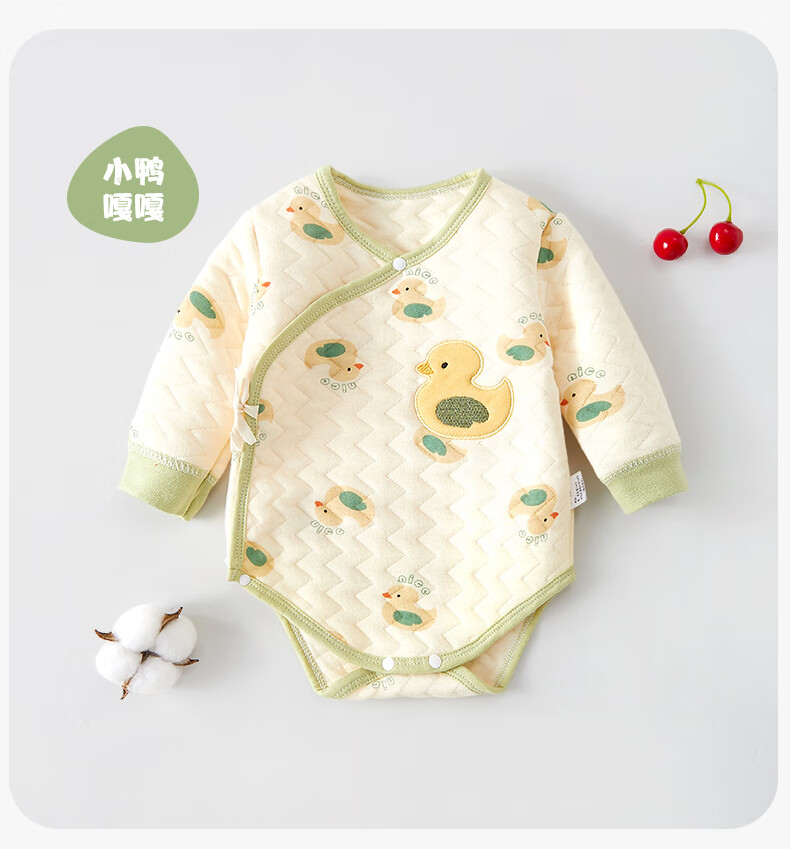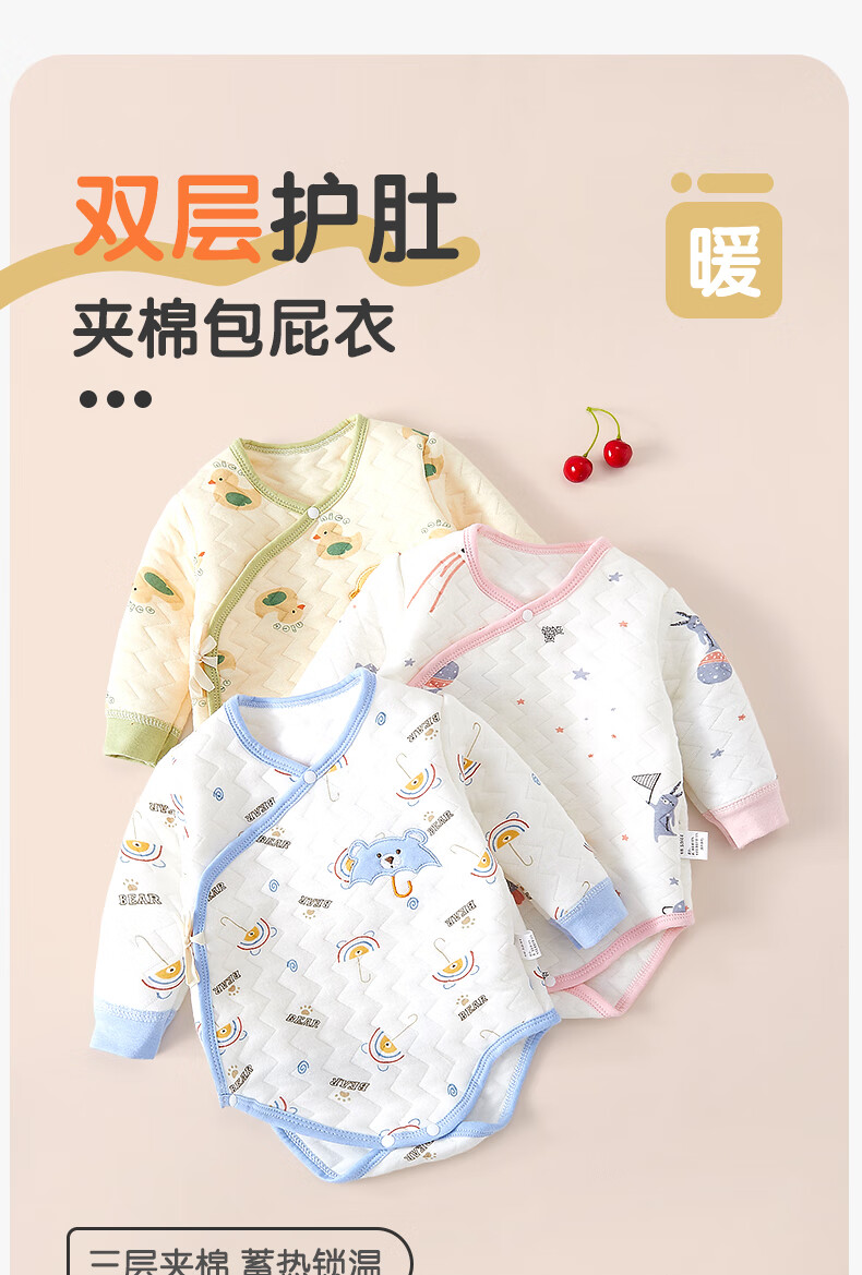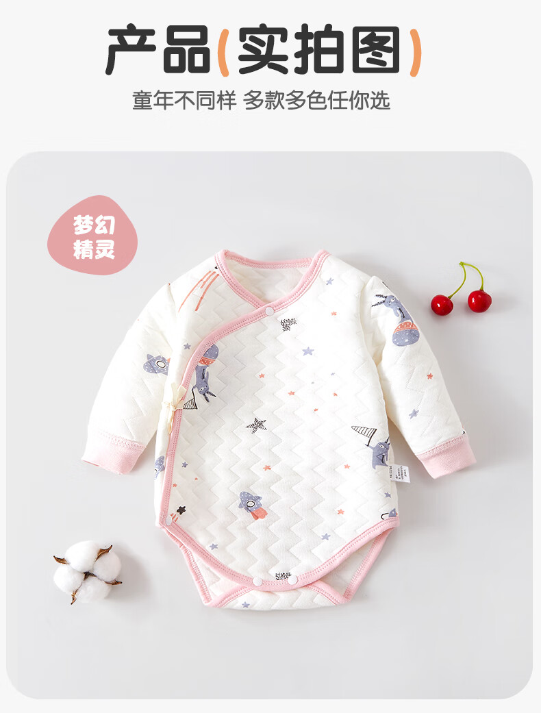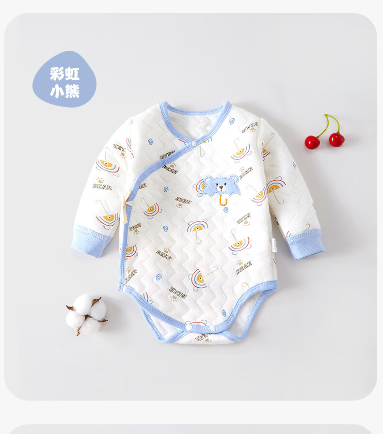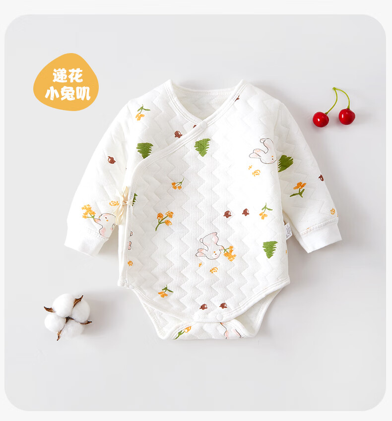 Baby warm quilted fart clothes, autumn and winter newborn clothes, male and female baby jumpsuits, triangle sweatshirts, hand-flowered rabbits 73cm