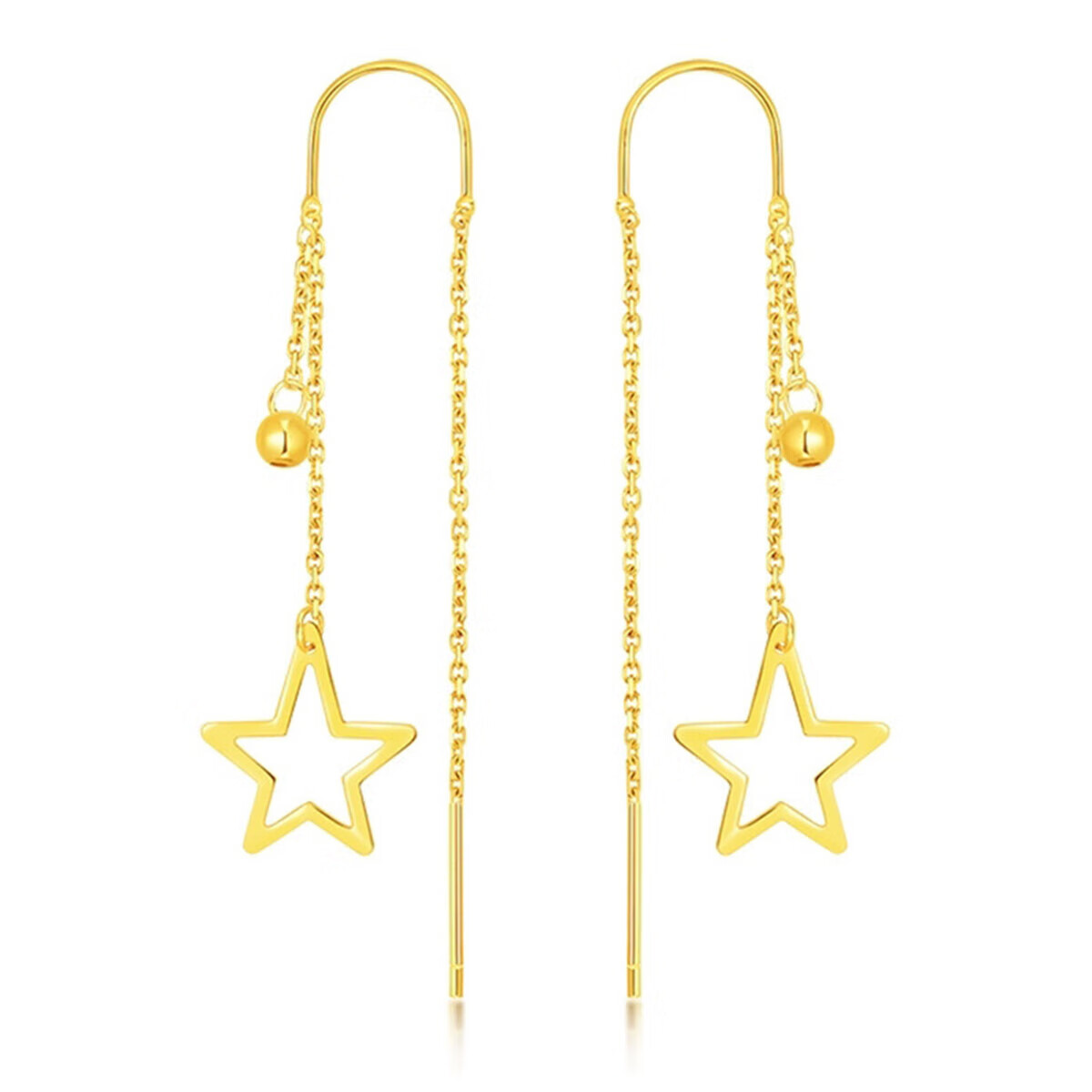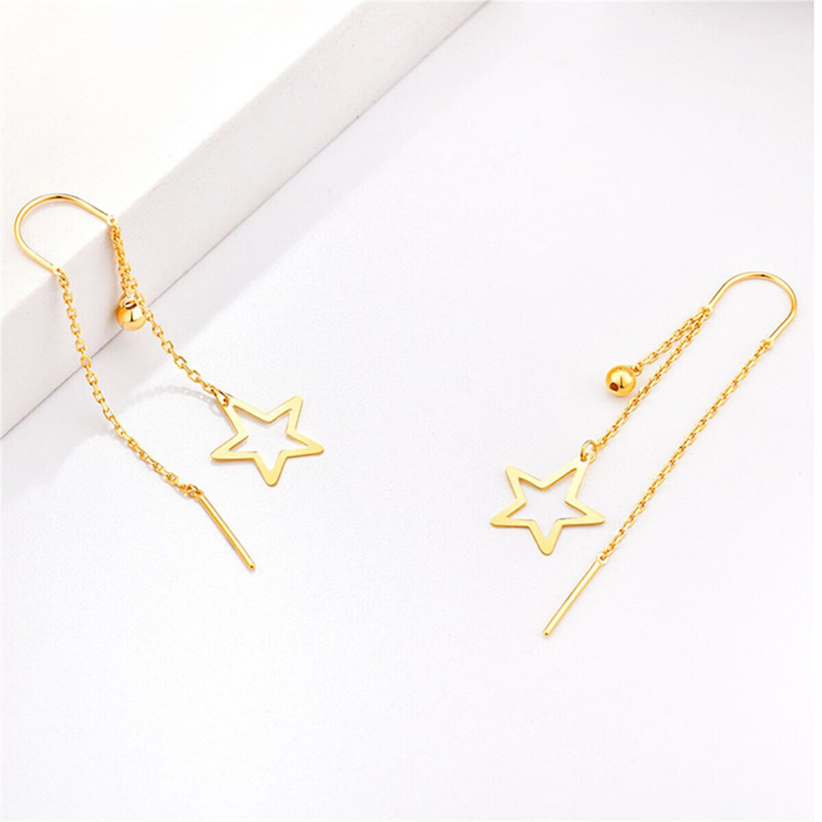 Su Chen 18k gold five-pointed star earrings women's long tassel earrings earrings round bead earrings fashion imitation gold ins do not fade