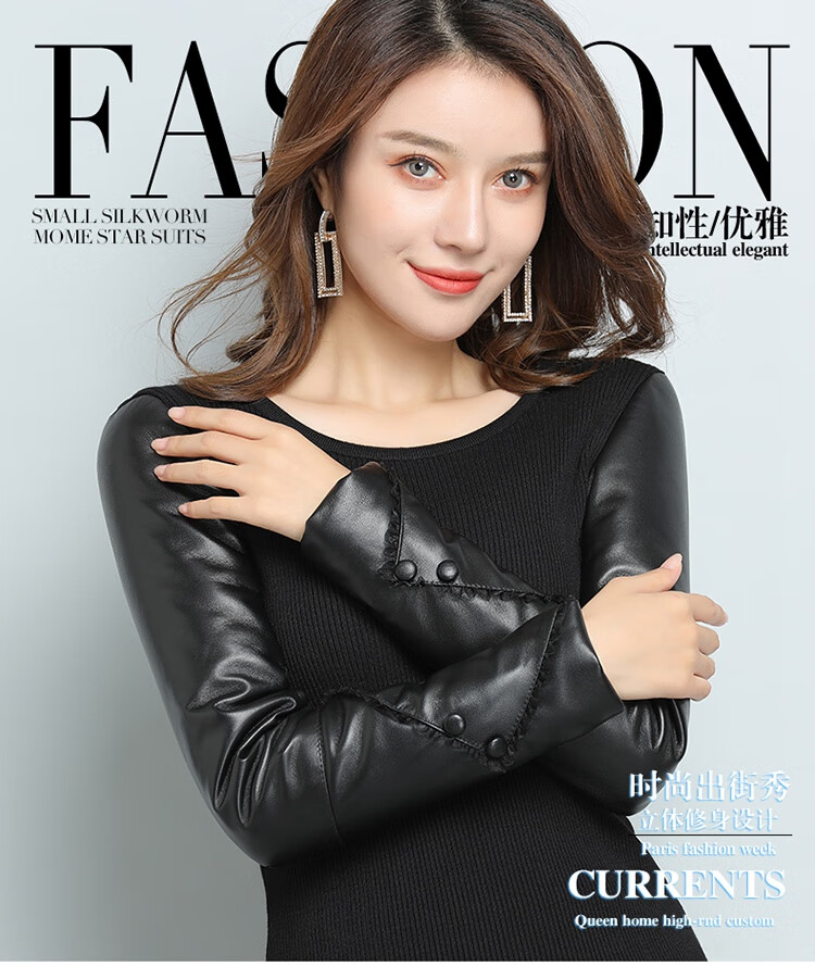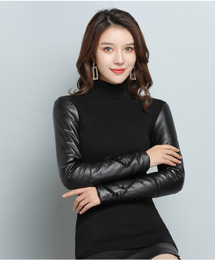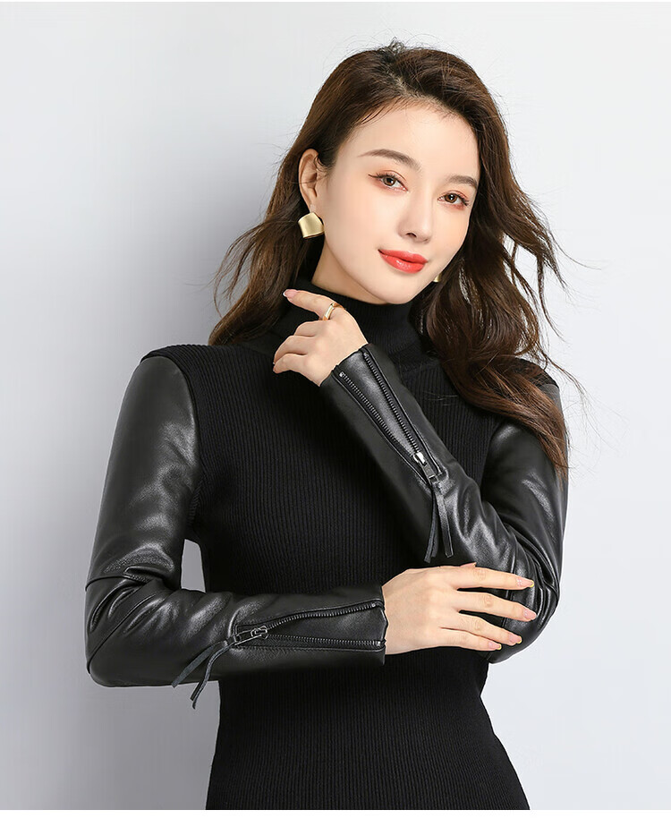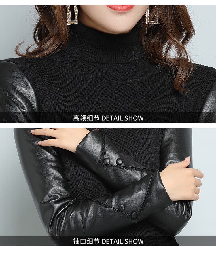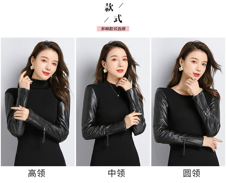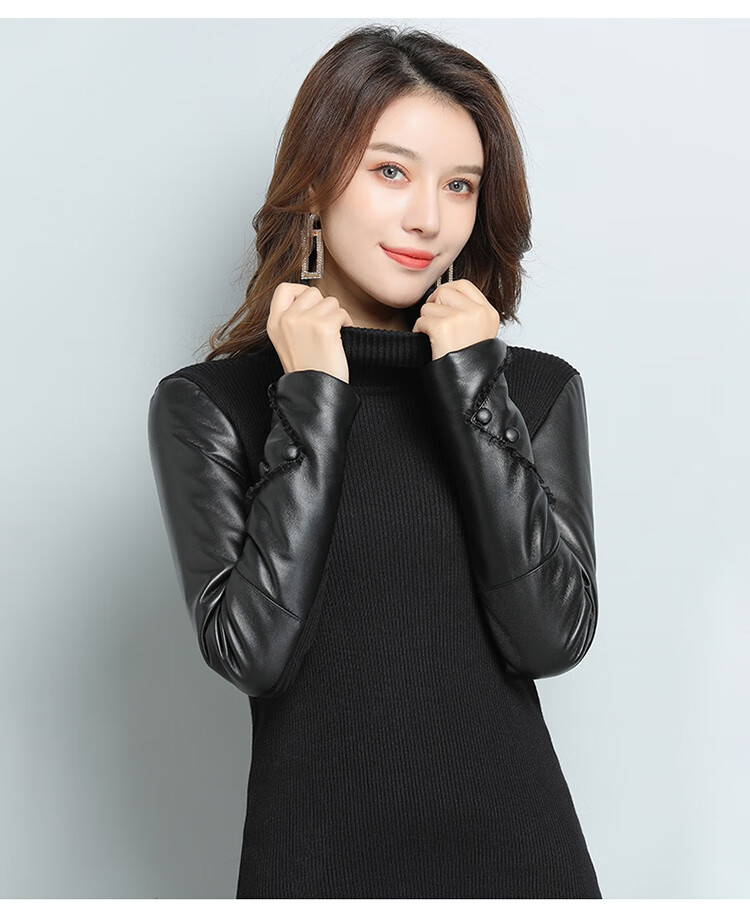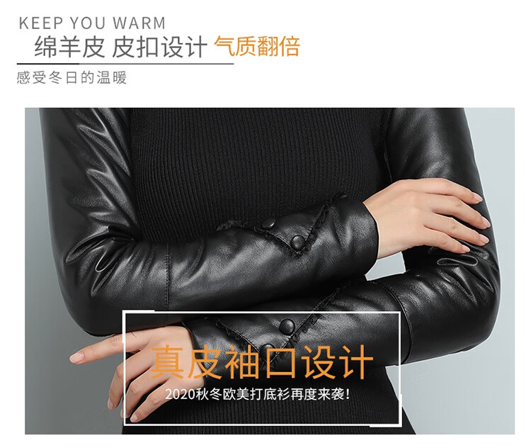 CARSEMKEITN Fashionable Sheepskin Down Sleeves Leather Sleeves Bottoming Shirt Women's Winter Genuine Leather with Fur Interior Plush Cotton Sleeve Shirt Thickened Lace Zipper High Collar 100% Genuine Sheepskin S 80-100Jin Jin is equal to 0.5kg