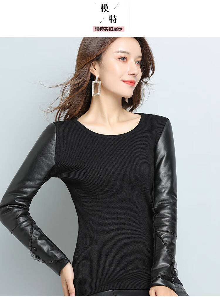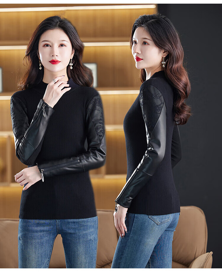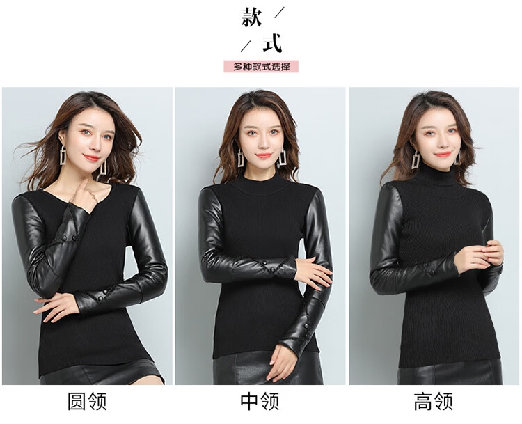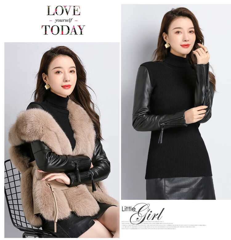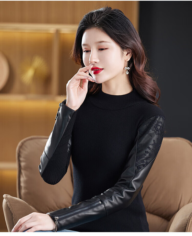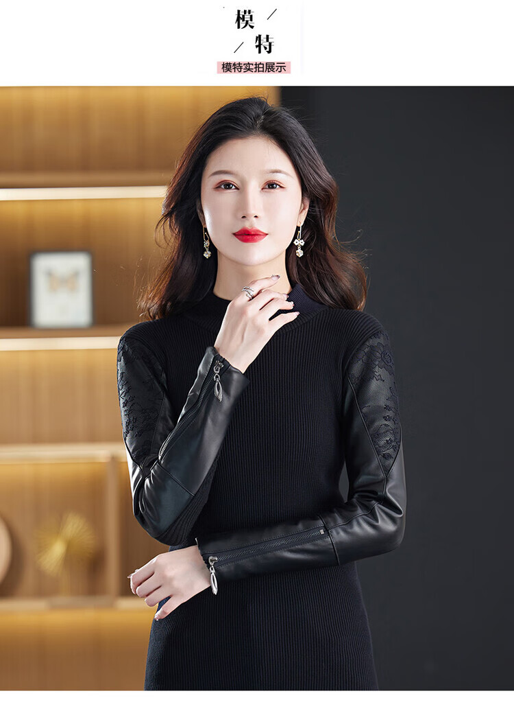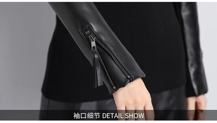 CARSEMKEITN Fashionable Sheepskin Down Sleeves Leather Sleeves Bottoming Shirt Women's Winter Genuine Leather with Fur Interior Plush Cotton Sleeve Shirt Thickened Lace Zipper High Collar 100% Genuine Sheepskin S 80-100Jin Jin is equal to 0.5kg