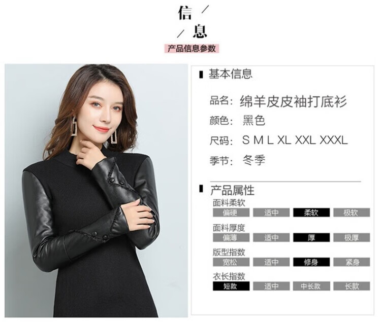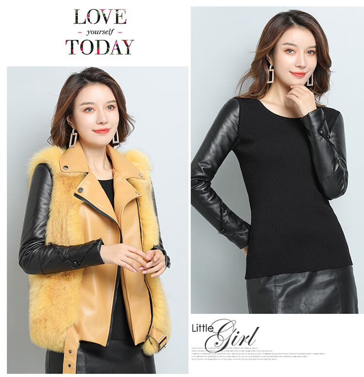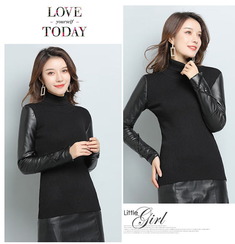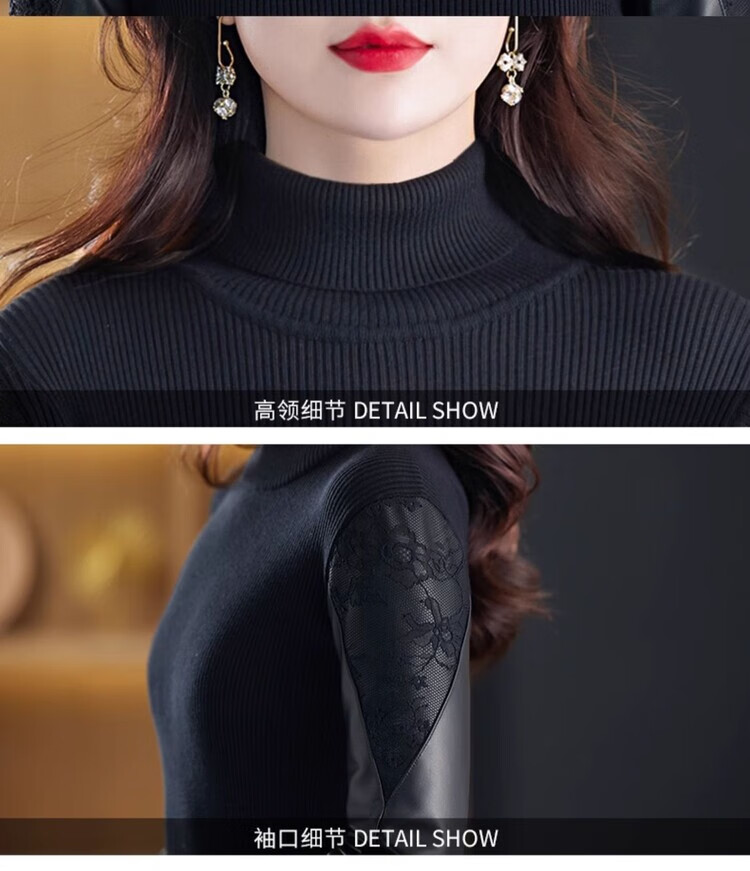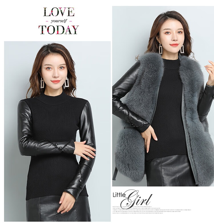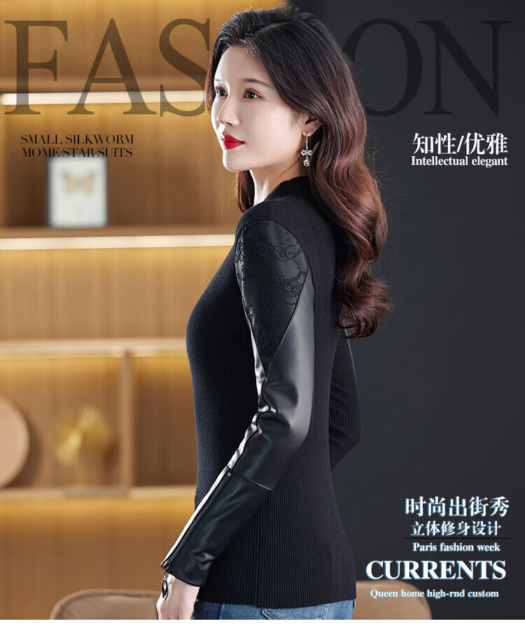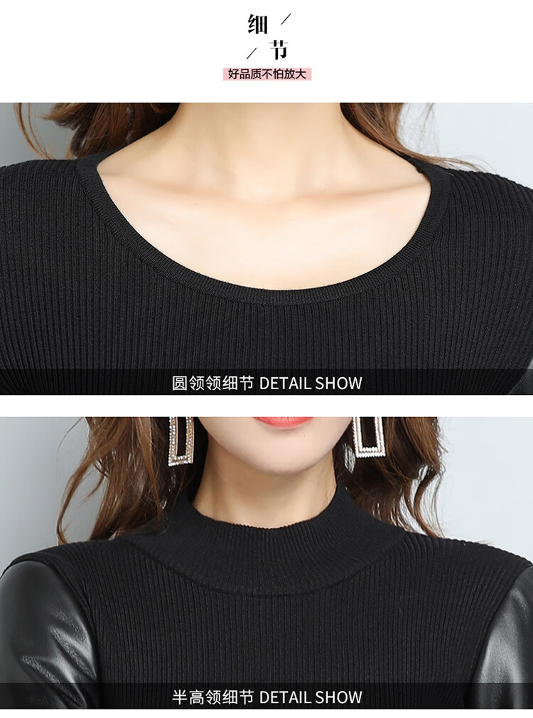 CARSEMKEITN Fashionable Sheepskin Down Sleeves Leather Sleeves Bottoming Shirt Women's Winter Genuine Leather with Fur Interior Plush Cotton Sleeve Shirt Thickened Lace Zipper High Collar 100% Genuine Sheepskin S 80-100Jin Jin is equal to 0.5kg