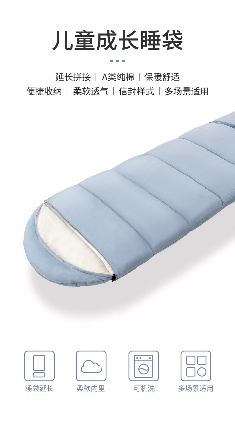 Nok children's sleeping bag for all seasons, outdoor camping and camping, elementary school students' classroom lunch nap, school dormitory quilt, spring and summer model, brassica yellow-retractable model, machine washable