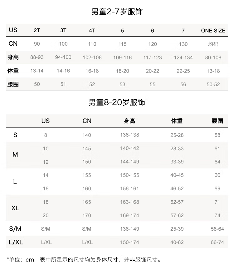 China (cm) 165 / 88-90 170 / 96-98 175 / 108-110 180 / 118-122 185 / 126-130