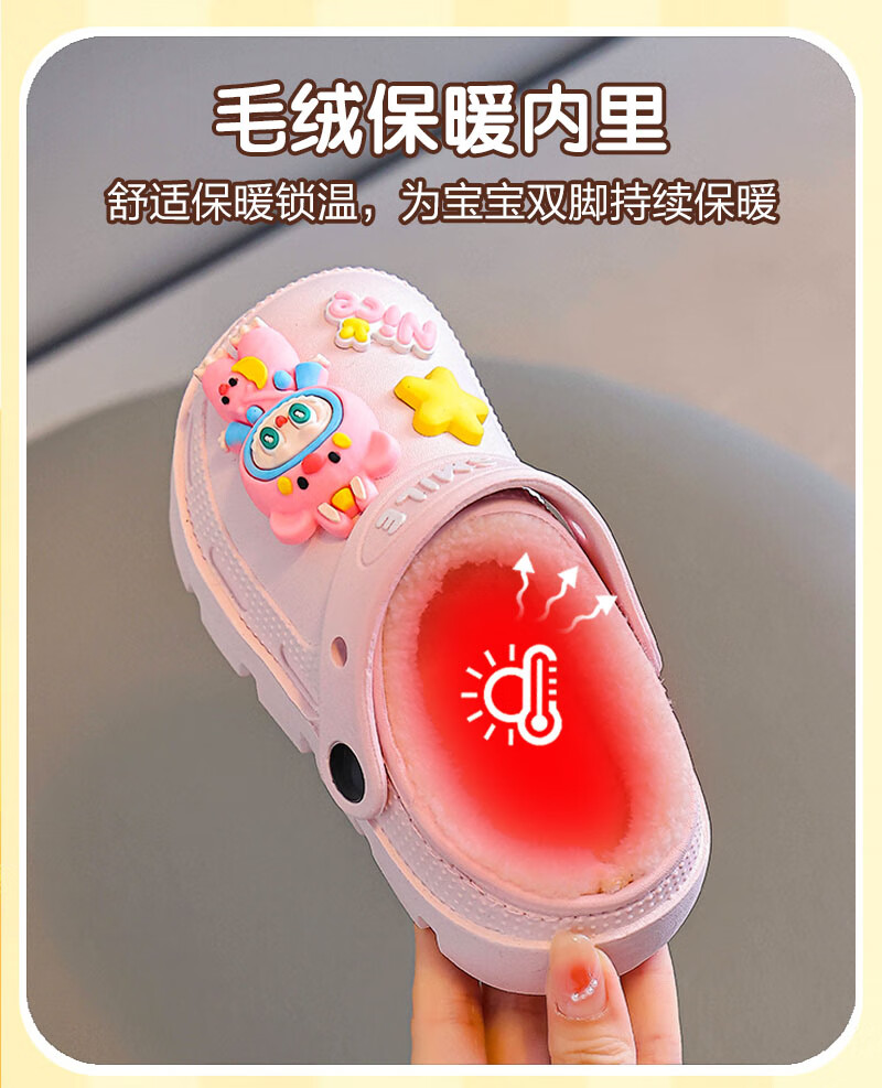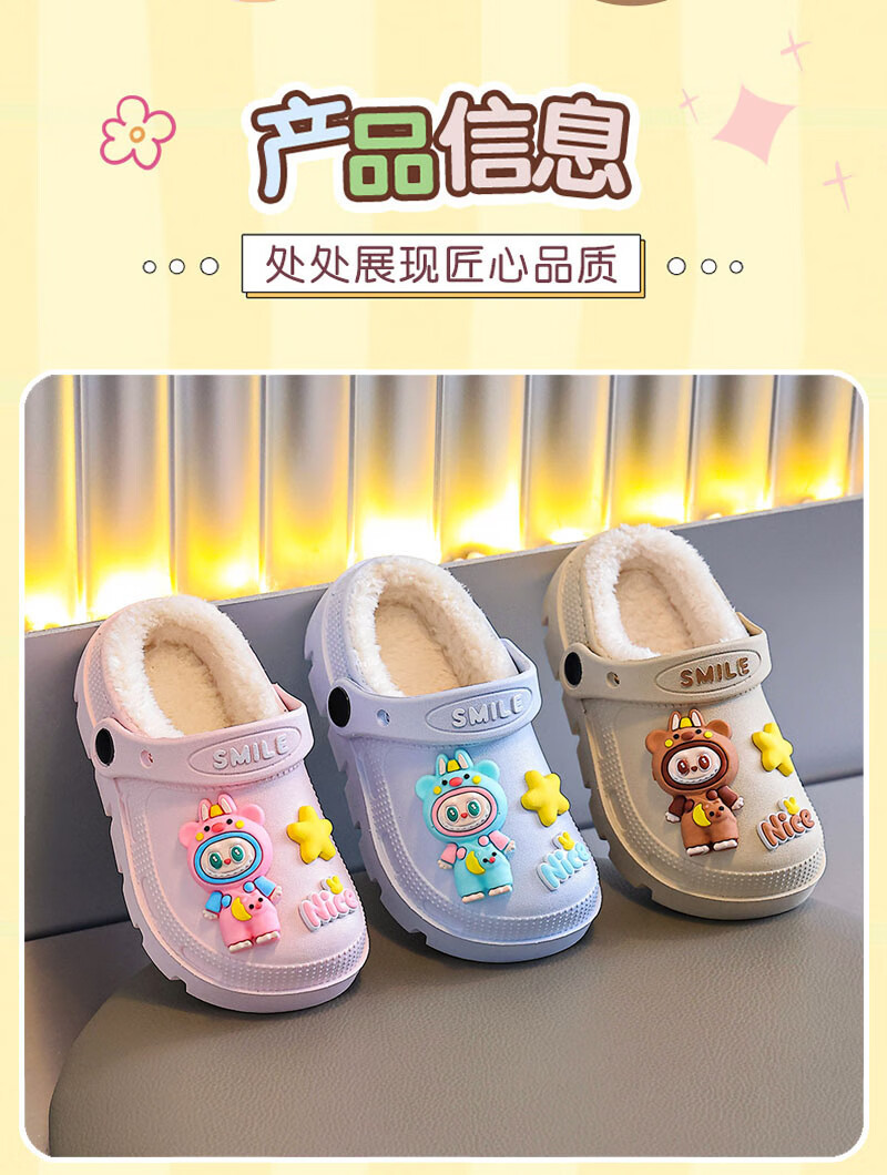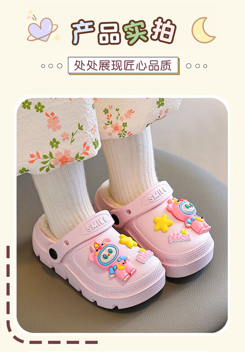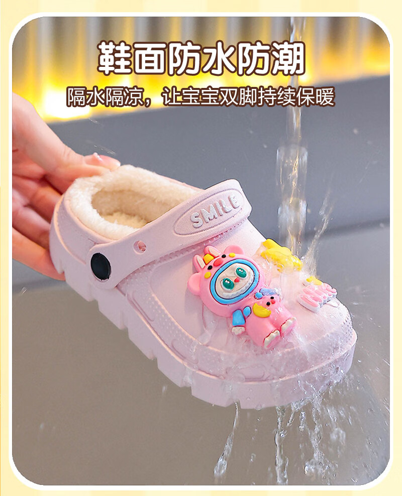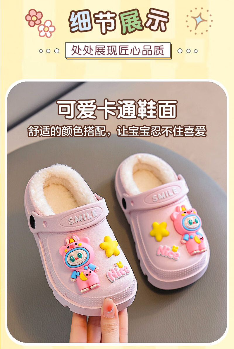 Labubu children's cotton slippers for girls in winter, indoor and outdoor plus velvet to keep warm and waterproof, cute baby cotton slippers Labubu - pink 18.5 30-31 size (suitable for 6 years old and 6 and a half years old)
