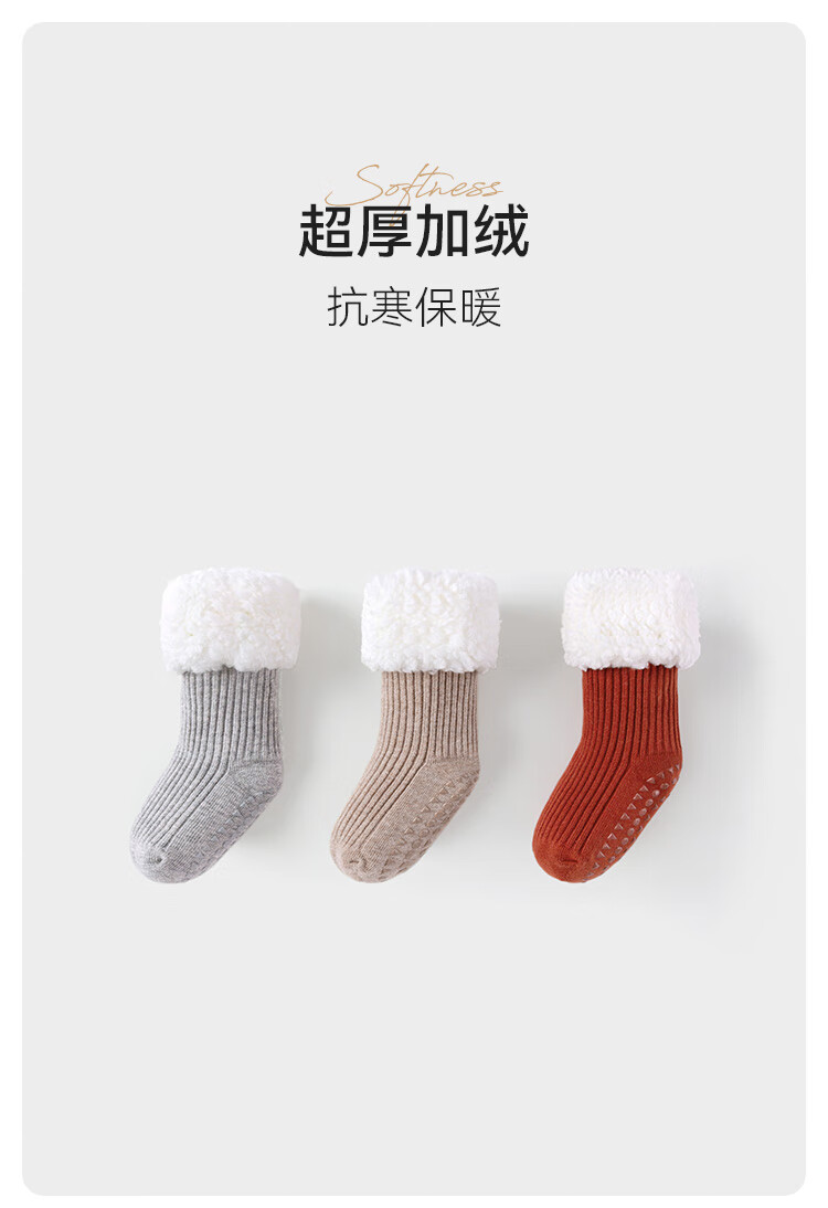 Babylove baby stockings winter baby thickened warm plush versatile calf socks non-slip toddler socks light gray 6-12 months (10.5cm)