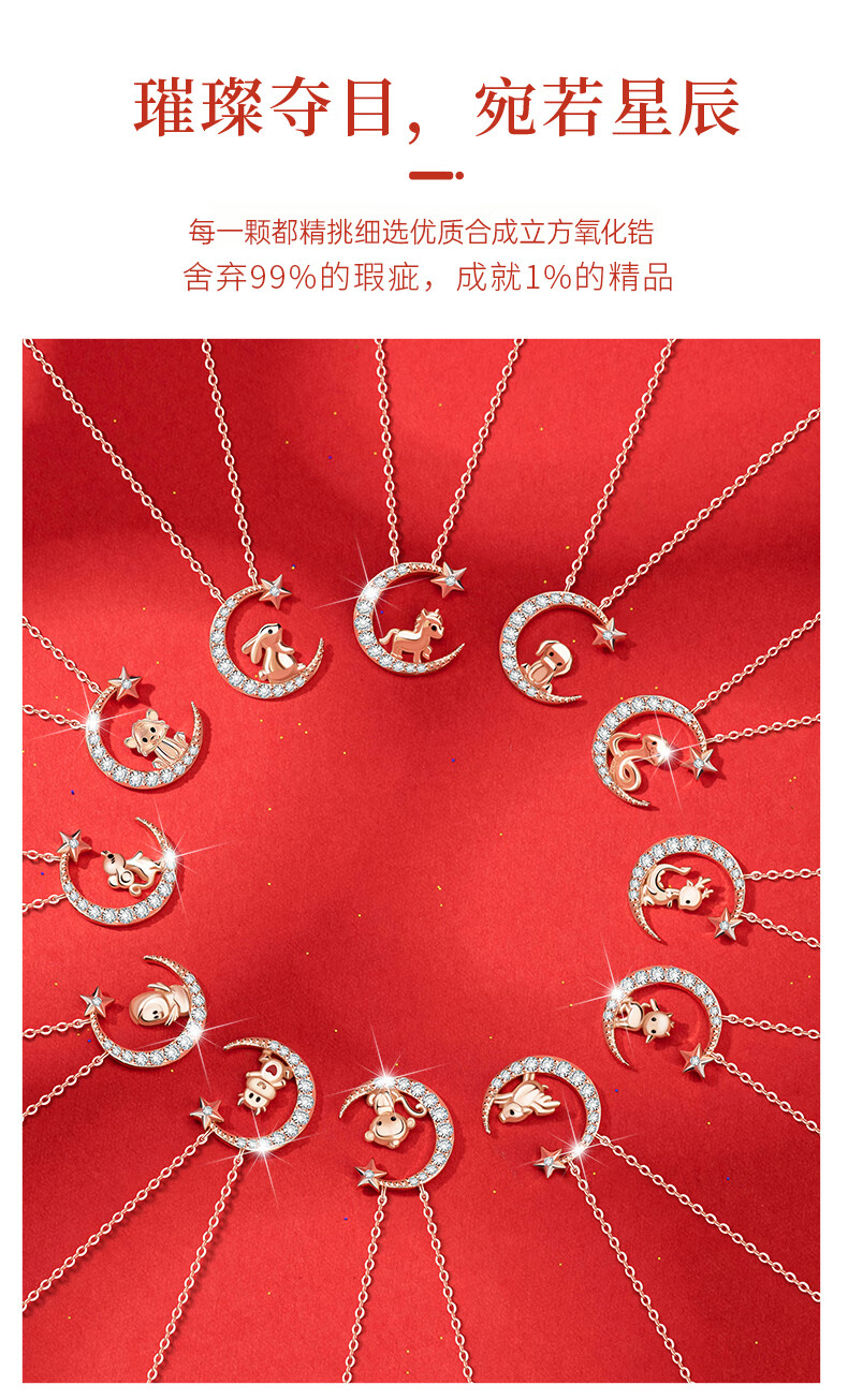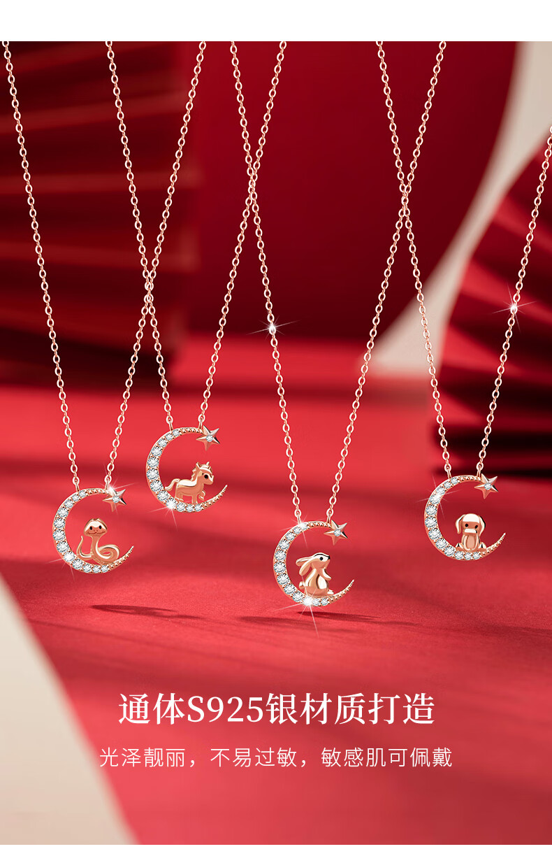 Lao Fengxiang's 12 zodiac signs necklace sterling silver women's zodiac year of the horse jewelry anniversary birthday gift for girlfriend and wife zodiac sheep + brand gift box