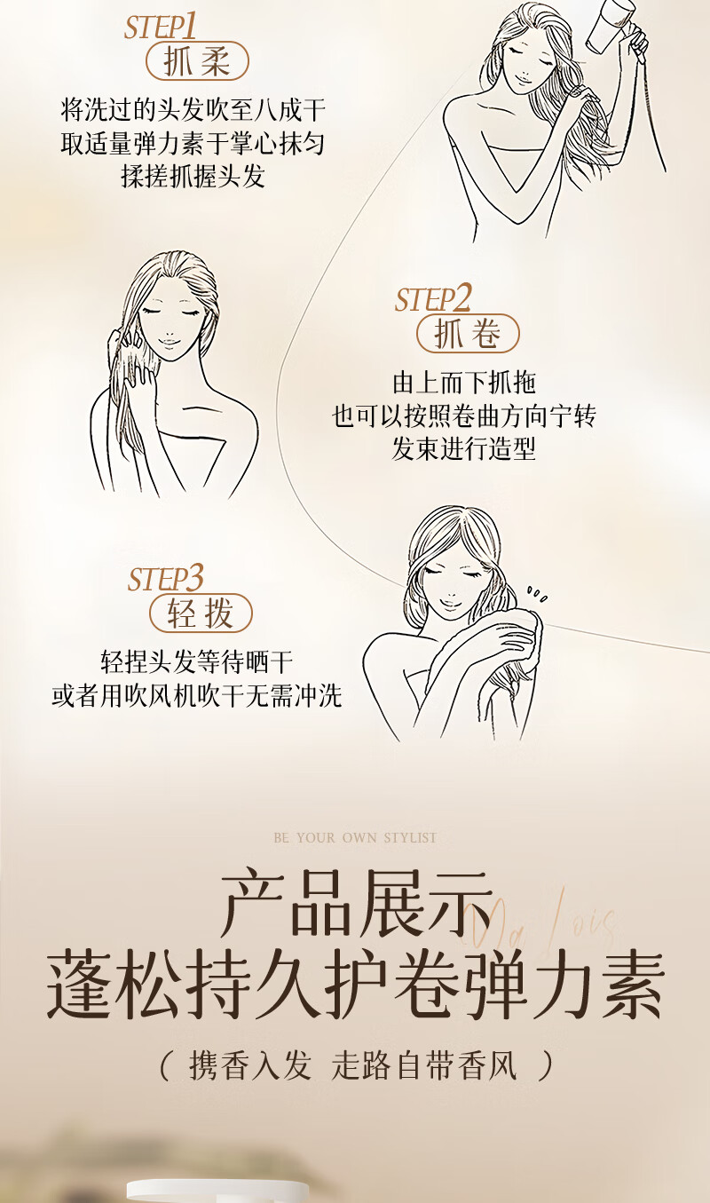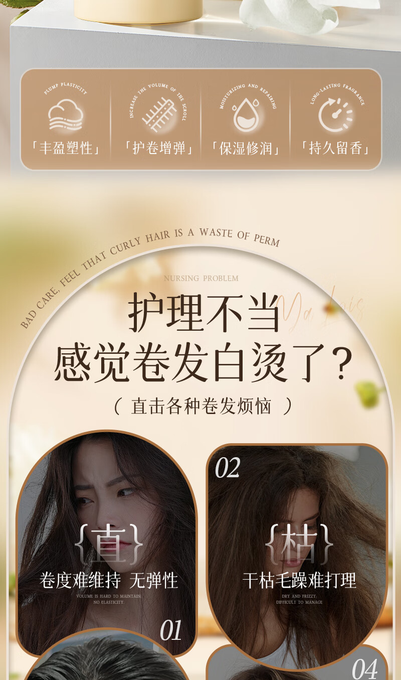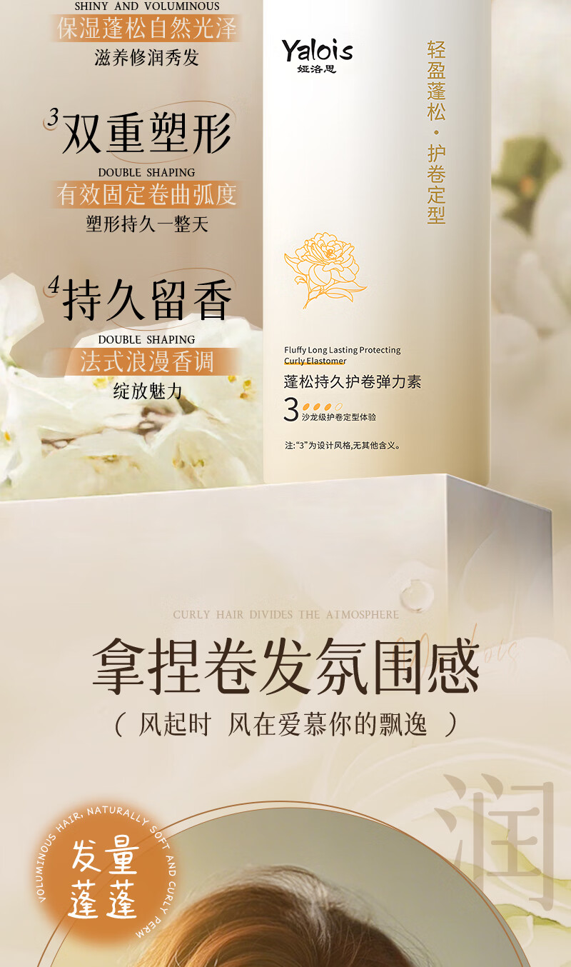 Yalos Elastic Women's Long-lasting Moisturizing and Styling Essence Naturally Fluffy Anti-frizz Conditioner for Hair After Perm Basic Care Long-lasting Styling Anti-frizz Elastic 850ml*1