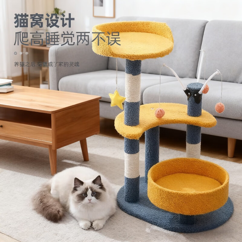 Cat climbing frame, cat scratching board, cat toy scratching post, large sisal frame, cat nest, cat climbing post, all-in-one cat supplies, star cat teasing stick