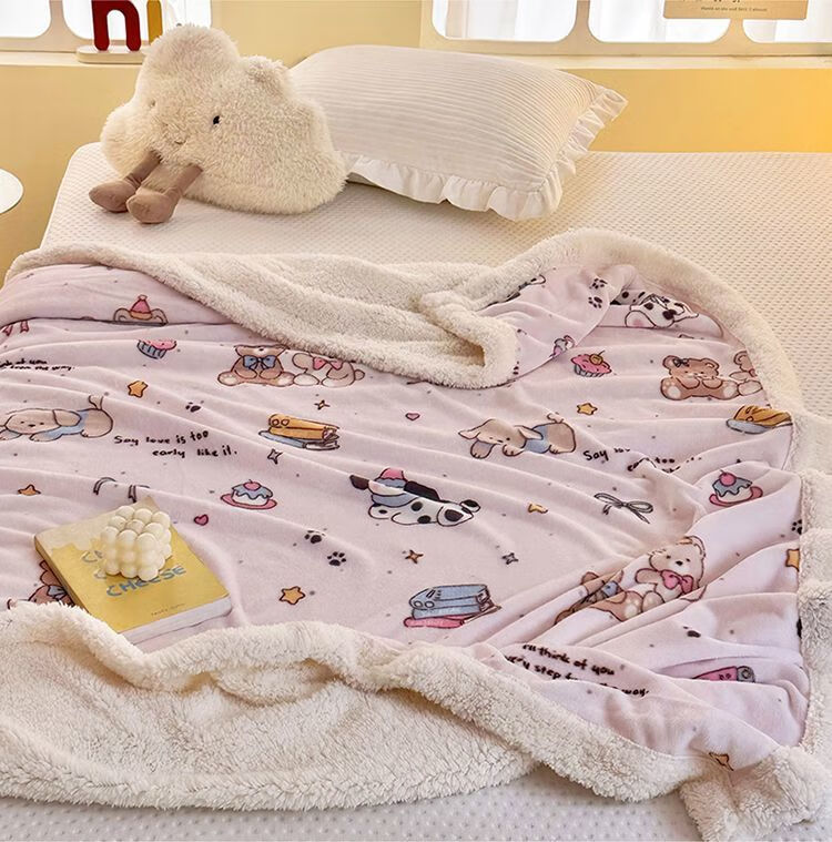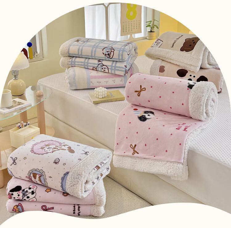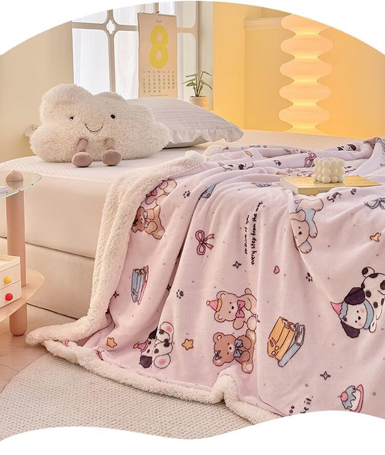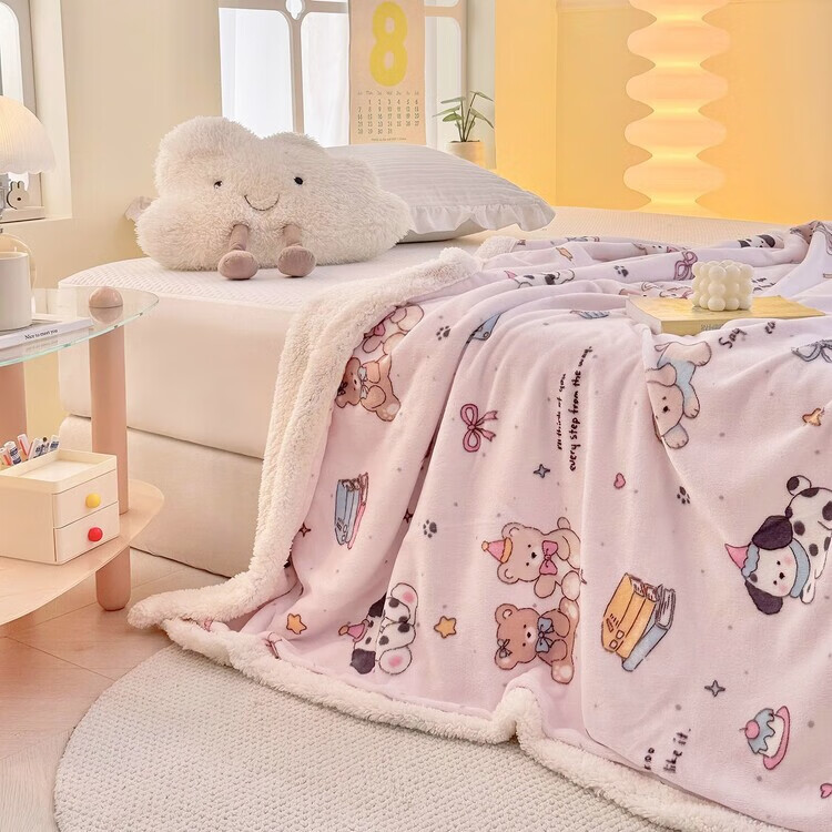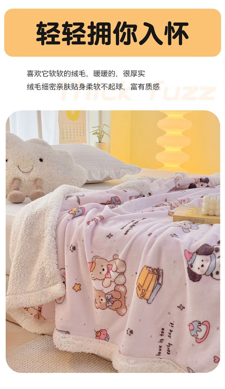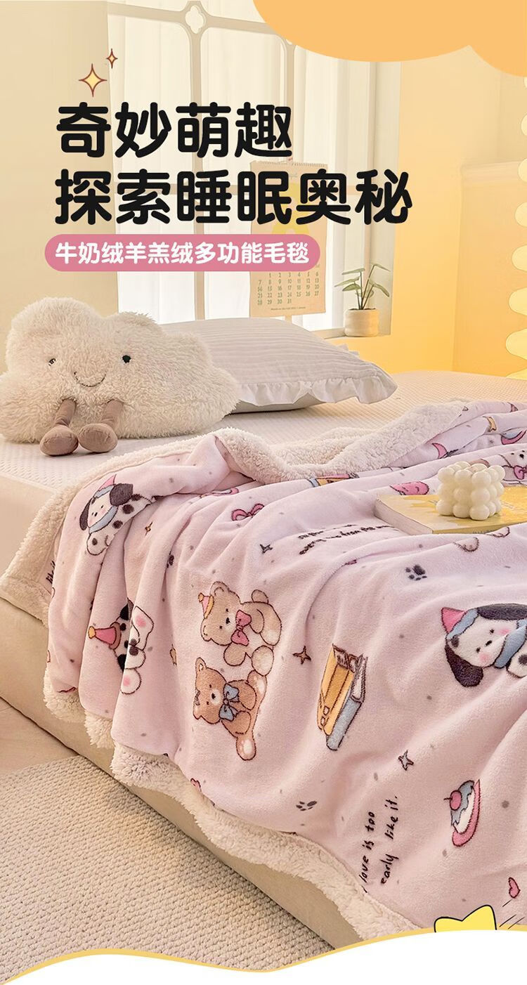 Fantasy A-type three-layer thickened plus plush blanket milk velvet office nap blanket kindergarten blanket autumn and winter blanket Huahuaxiong double-layer thickened high-gram weight milk velvet + lamb's velvet 150*200 single blanket A-type skin-friendly warm can be spread and covered