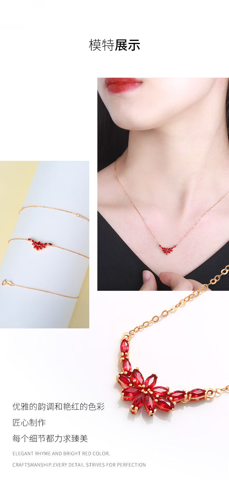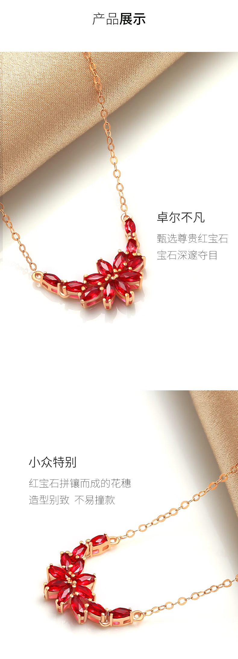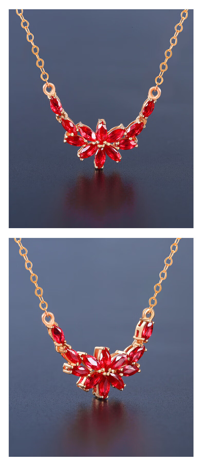 Xingyin Wheat Flower Ruby Necklace for Women 18K Gold Clavicle Chain Inlaid with Colorful Jewelry for Wife and Girlfriend Ruby Necklace