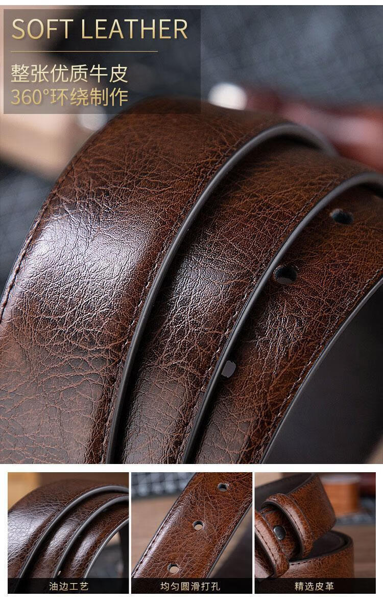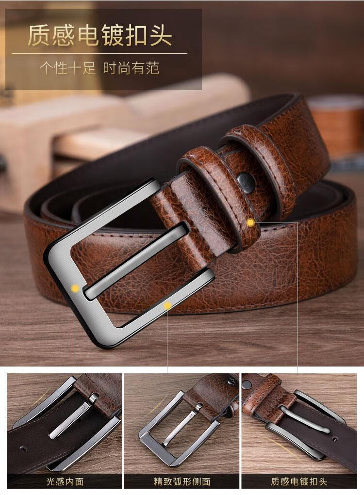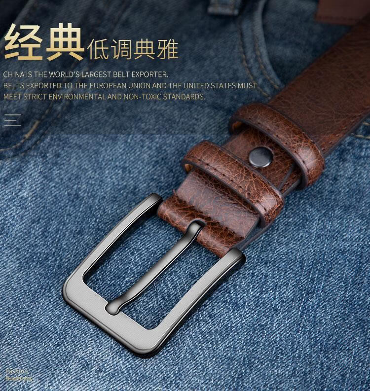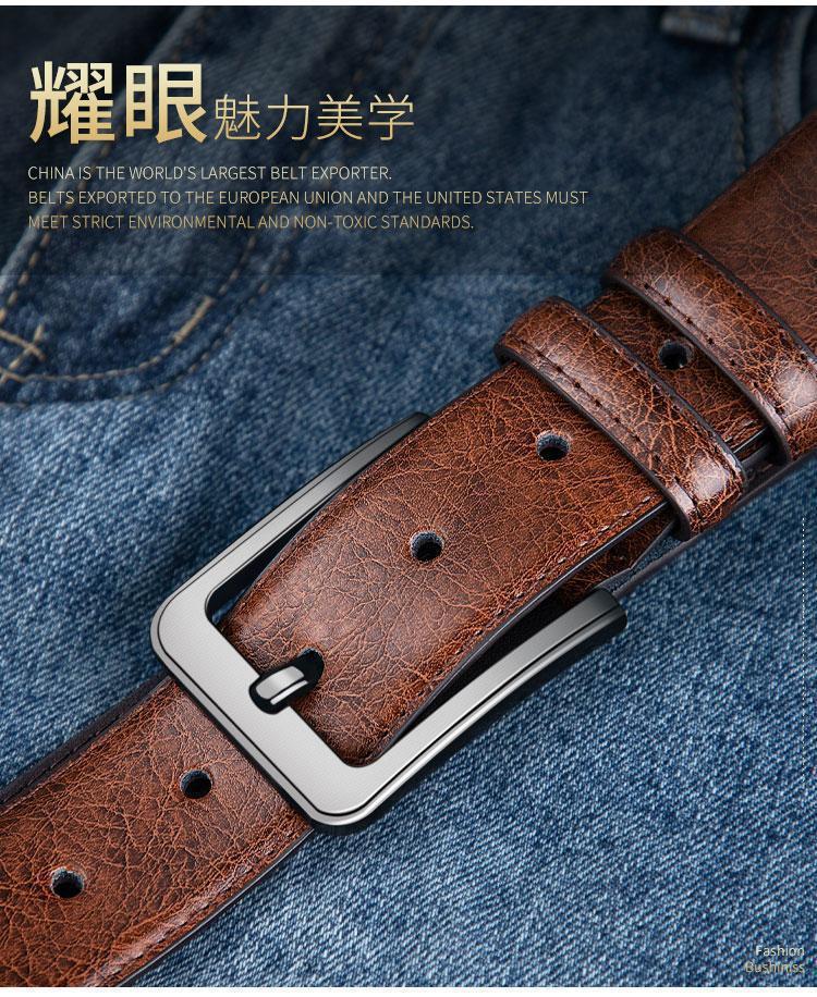 Fat Donglai same style genuine leather belt first layer cowhide men's retro pin buckle business casual belt quality selected cowhide brown 3.5cm wide (+ puncher) cowhide 110cm
