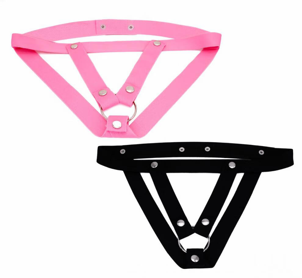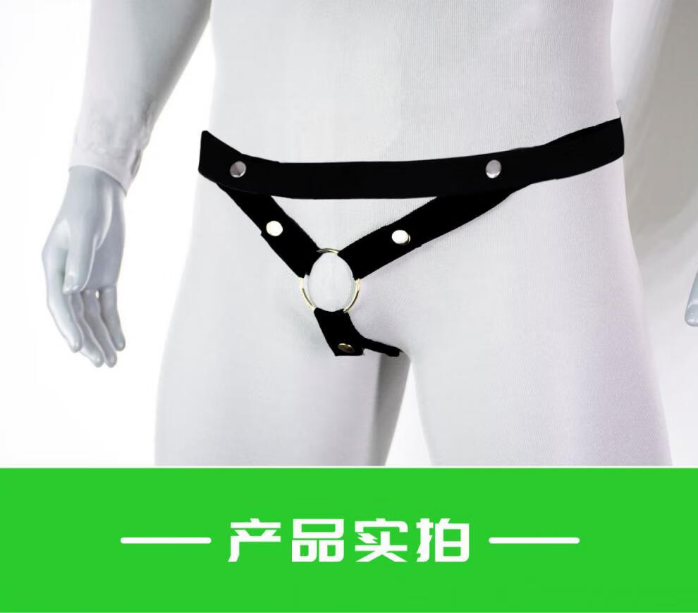 OLO chastity lock auxiliary belt men's cb lock lifting belt men's thong double D style three-way anti-fall cb lock V-shaped auxiliary belt - black