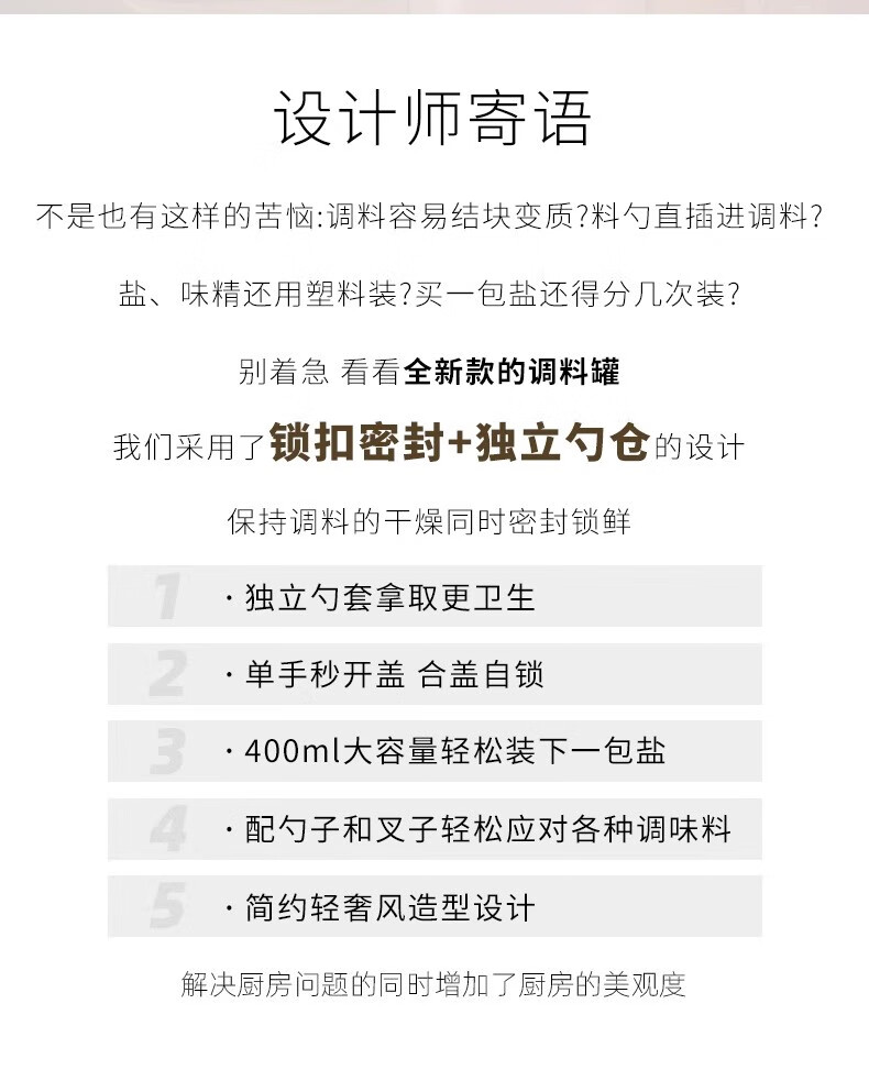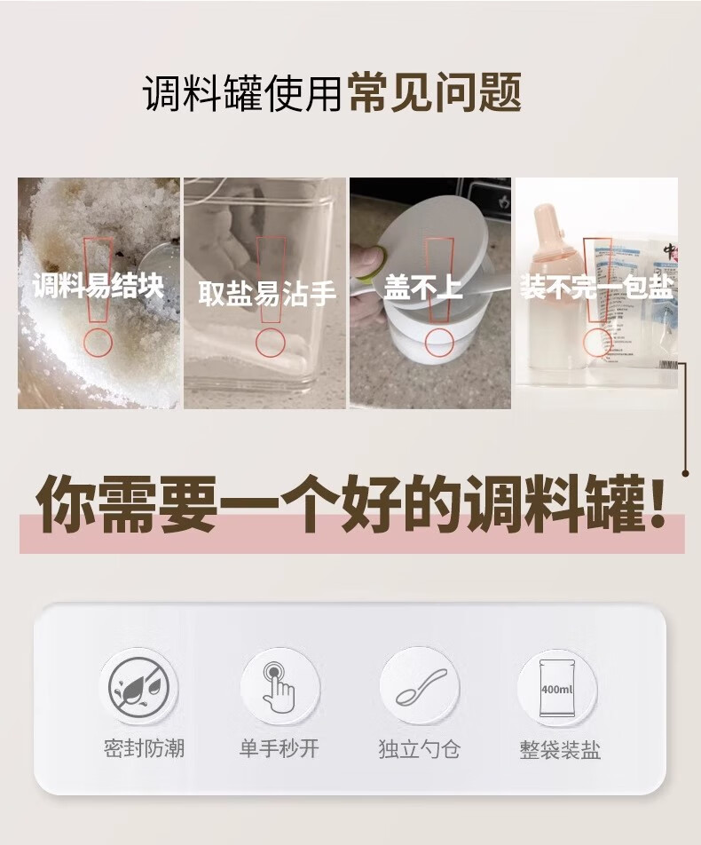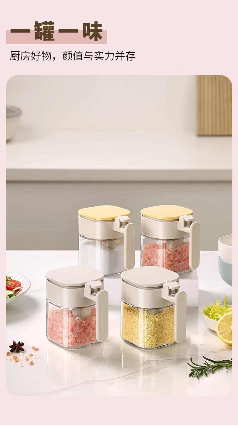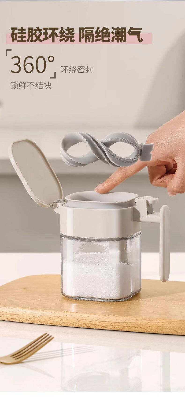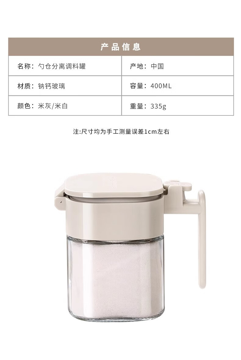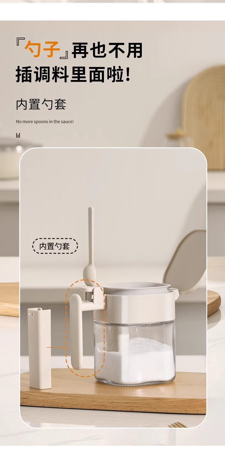 YOUQIN spoon compartment separated seasoning jar sealed moisture-proof seasoning box kitchen household salt shaker storage glass seasoning bottle jar white 1 pack (independent spoon compartment + sealed moisture-proof)