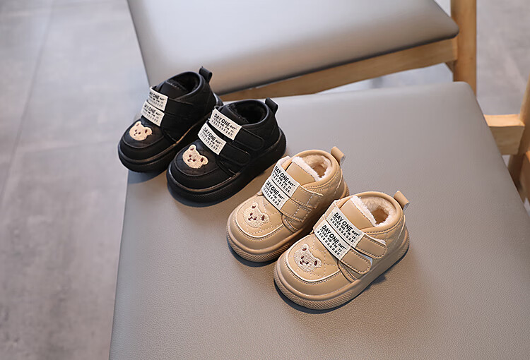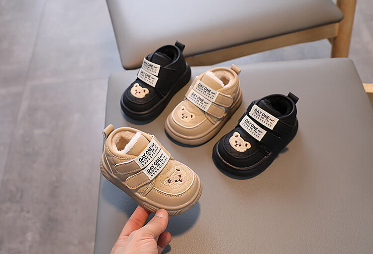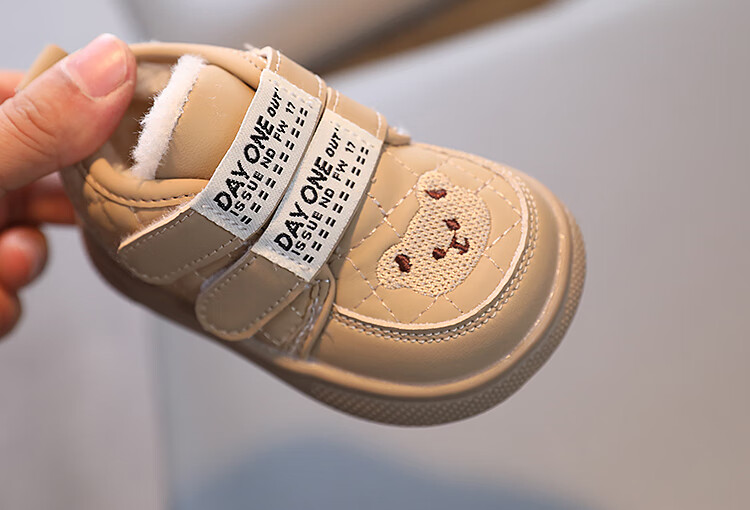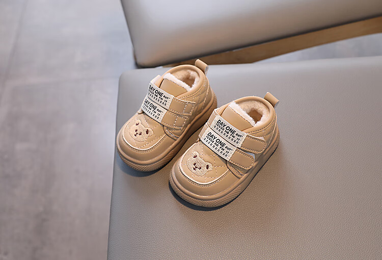 Terranis Yangma recommends toddler shoes for boys, non-slip, plus velvet, warm bear style, girls, soft bottom, winter, infants and toddlers, warm - thick velvet, khaki_winter 15 cm inner length_size 24