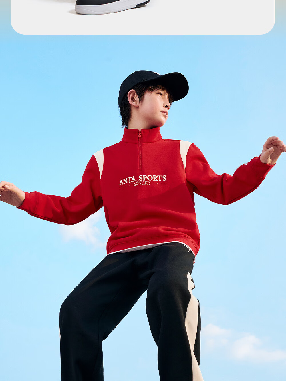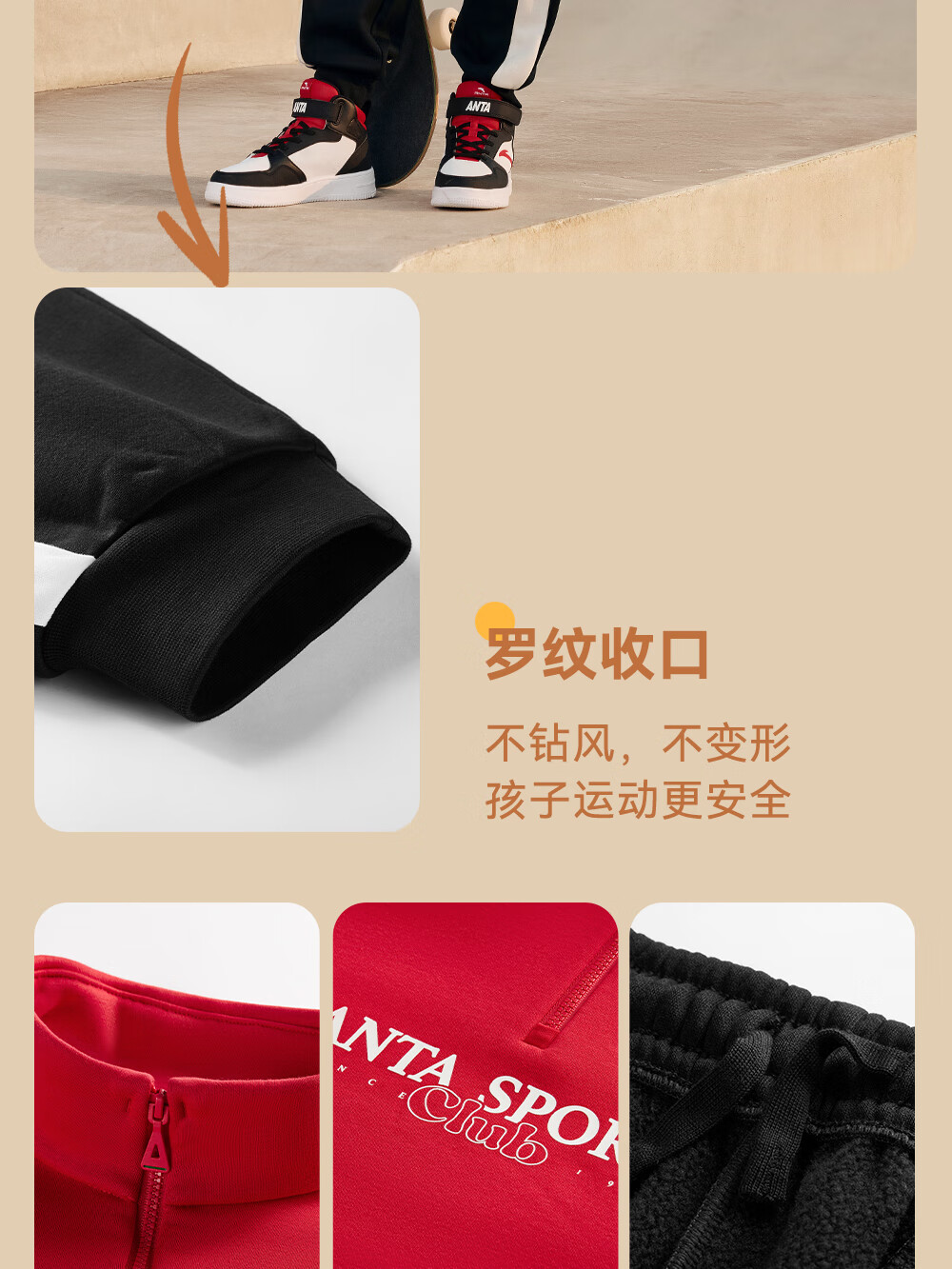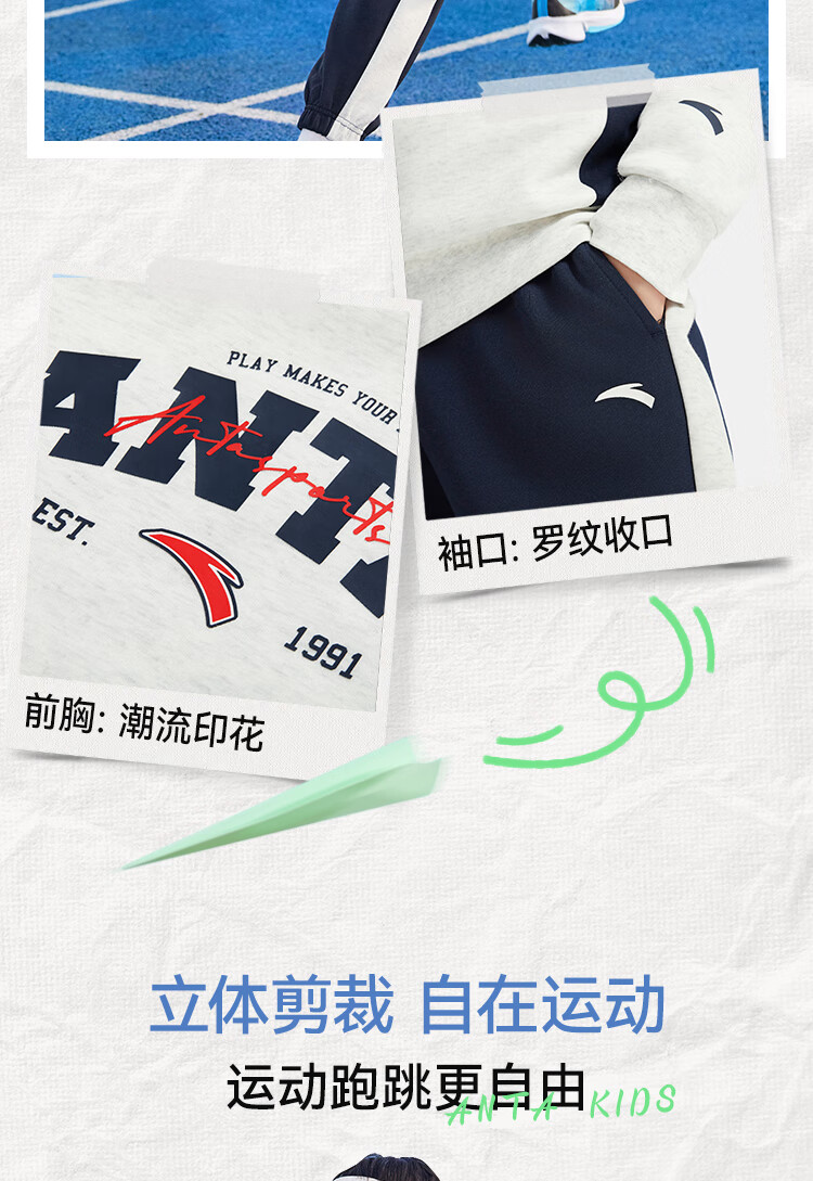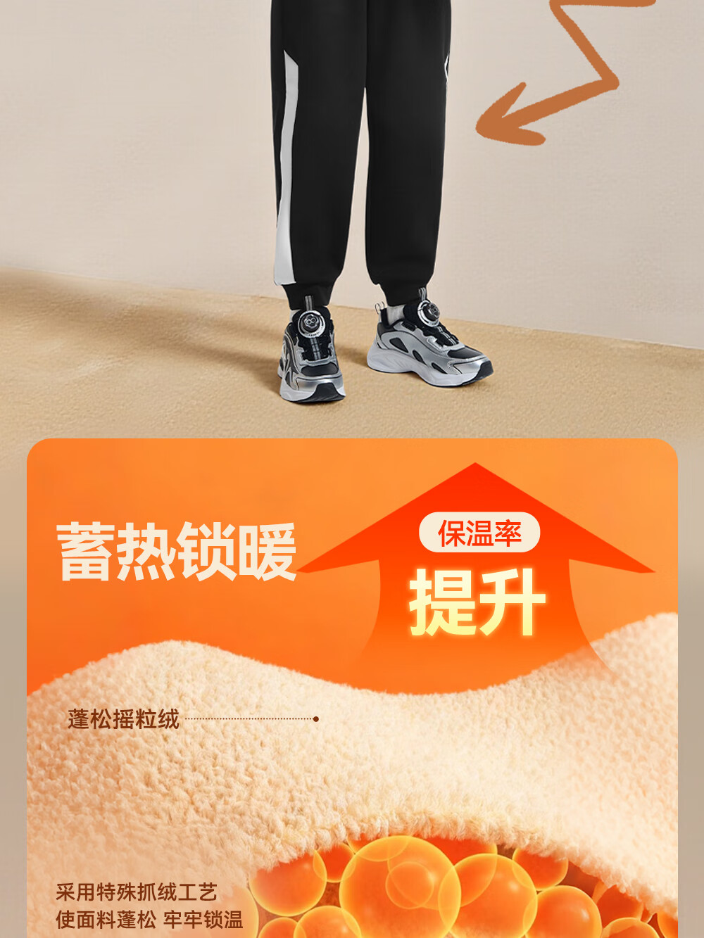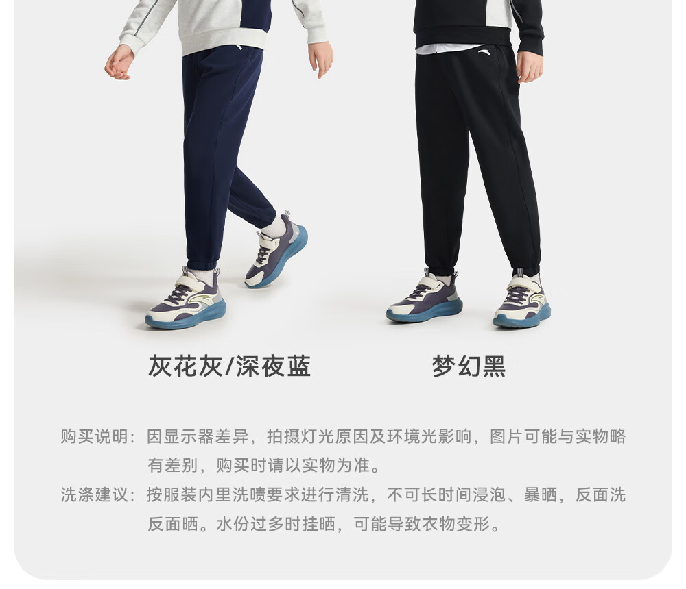 ANTA Children's Suit for Boys and Girls 2025 Autumn School Sports Children's Clothing Outdoor Running Training Knitted Sports Clothes Plus Velvet Style Black Letter Sweatshirt + Black Trousers Skin Warm Velvet 150 cm