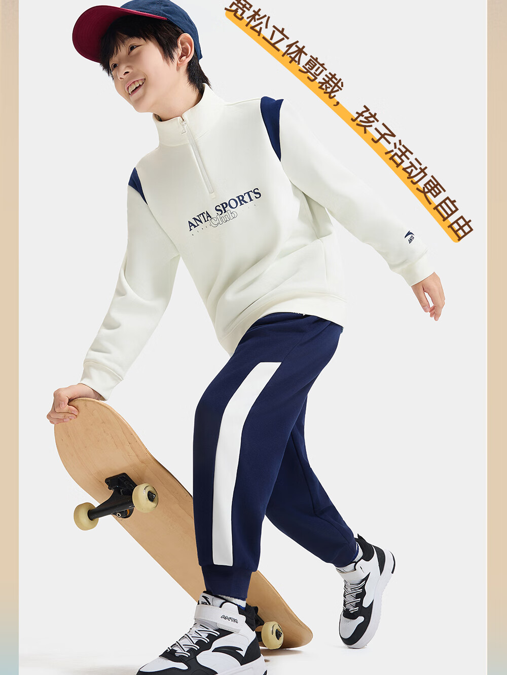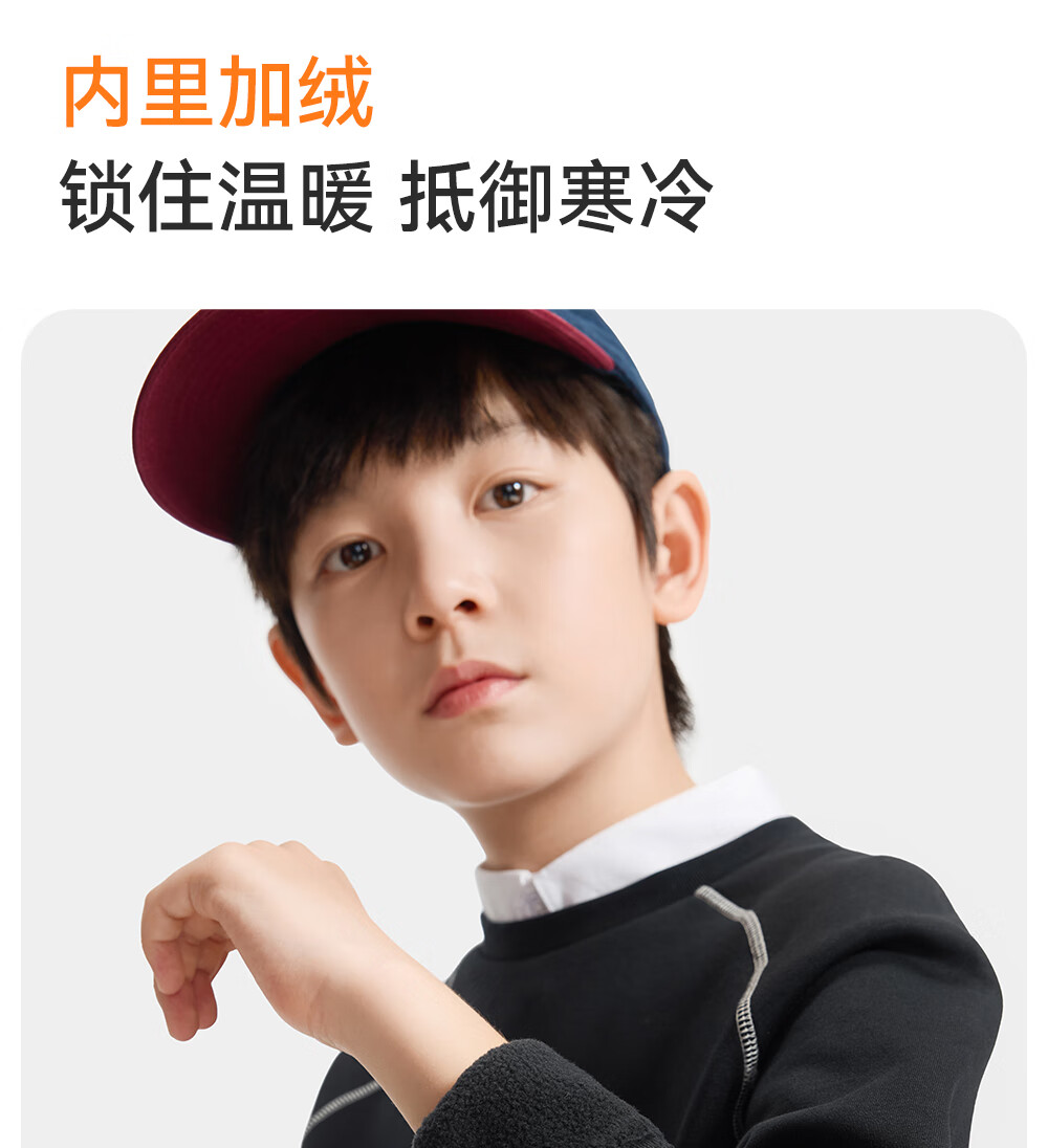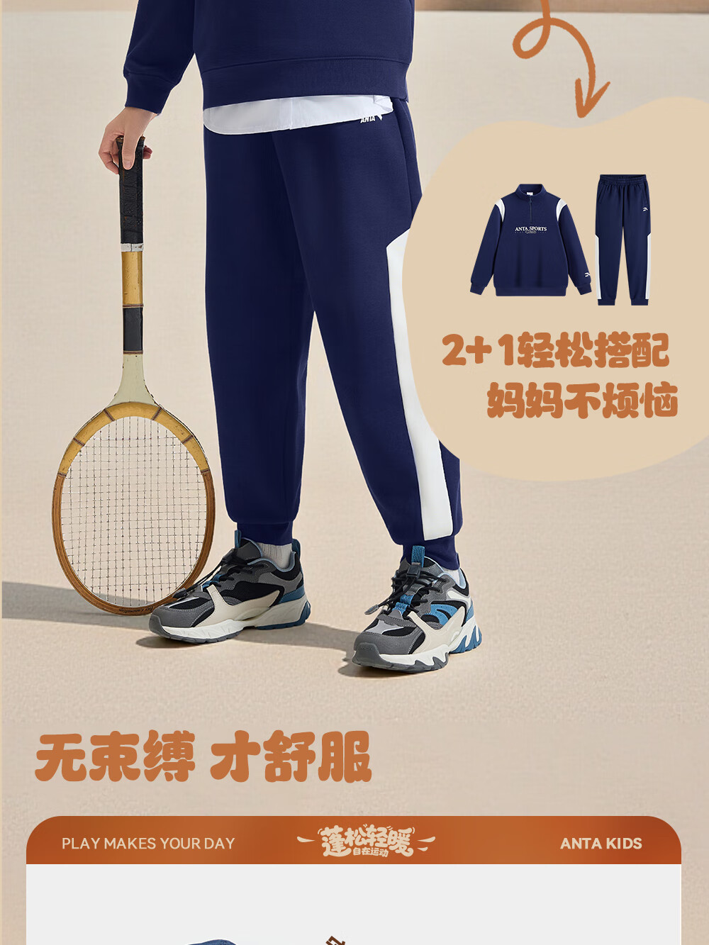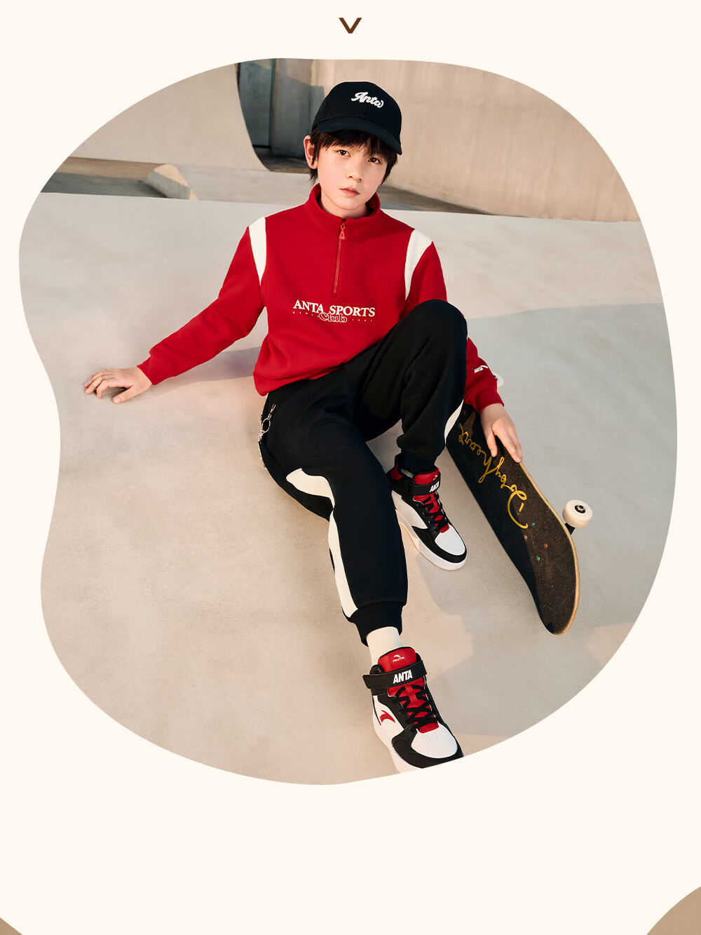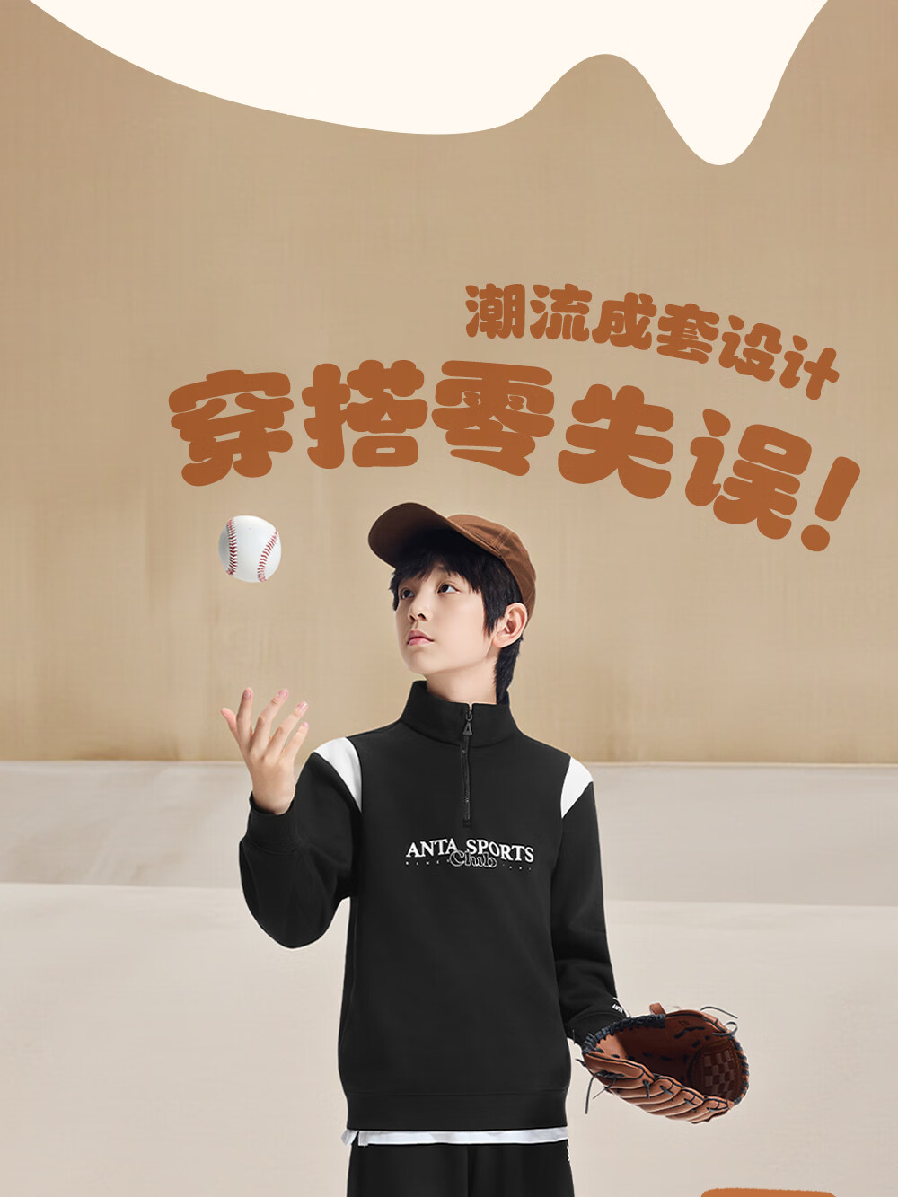 ANTA Children's Suit for Boys and Girls 2025 Autumn School Sports Children's Clothing Outdoor Running Training Knitted Sports Clothes Plus Velvet Style Black Letter Sweatshirt + Black Trousers Skin Warm Velvet 150 cm