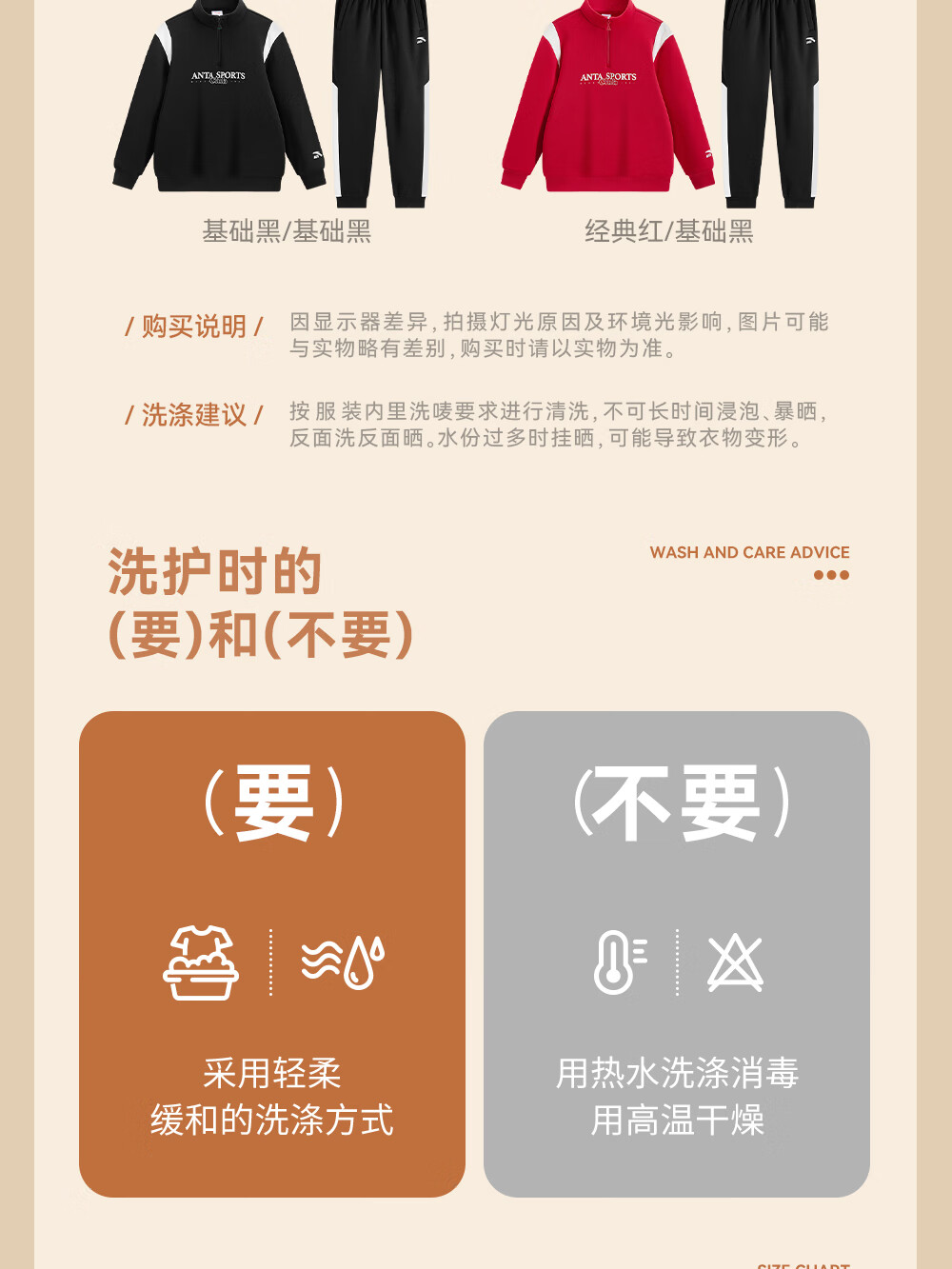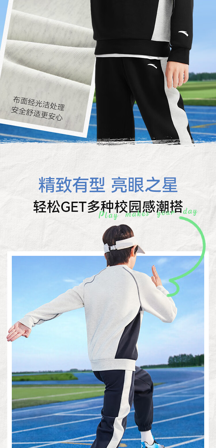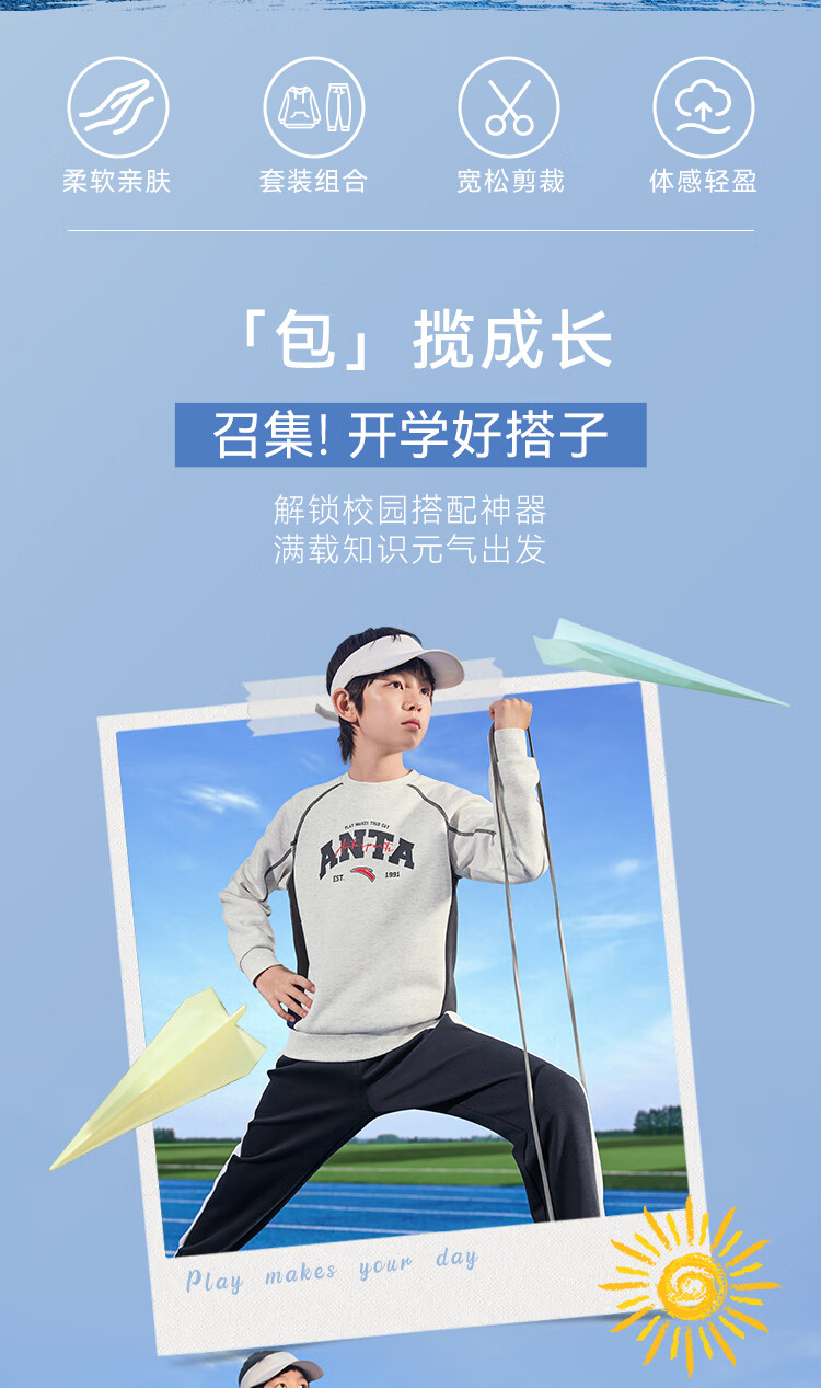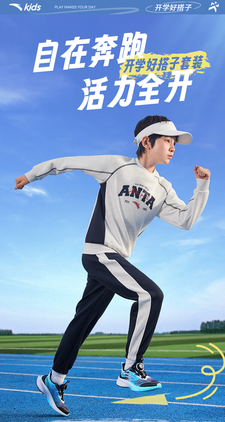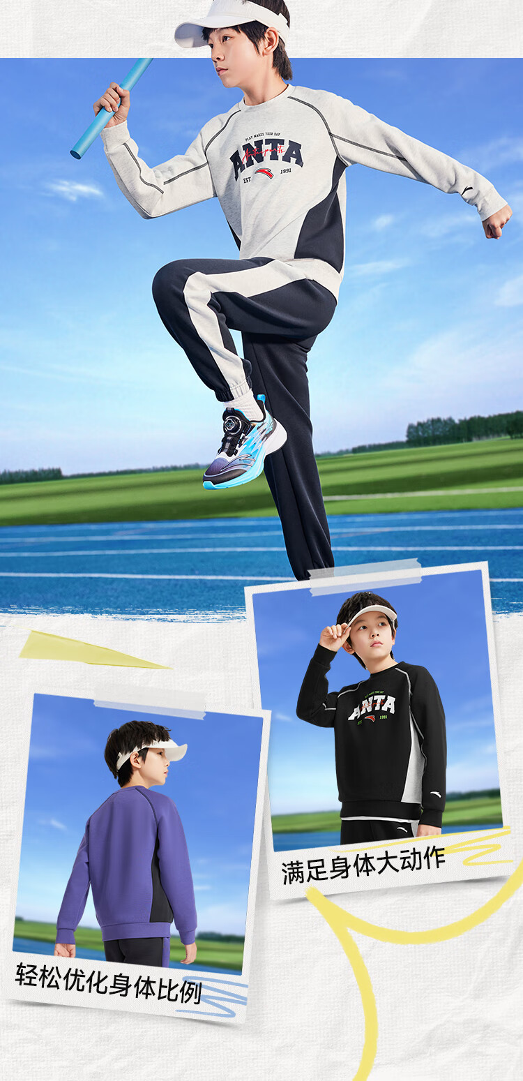 ANTA Children's Suit for Boys and Girls 2025 Autumn School Sports Children's Clothing Outdoor Running Training Knitted Sports Clothes Plus Velvet Style Black Letter Sweatshirt + Black Trousers Skin Warm Velvet 150 cm