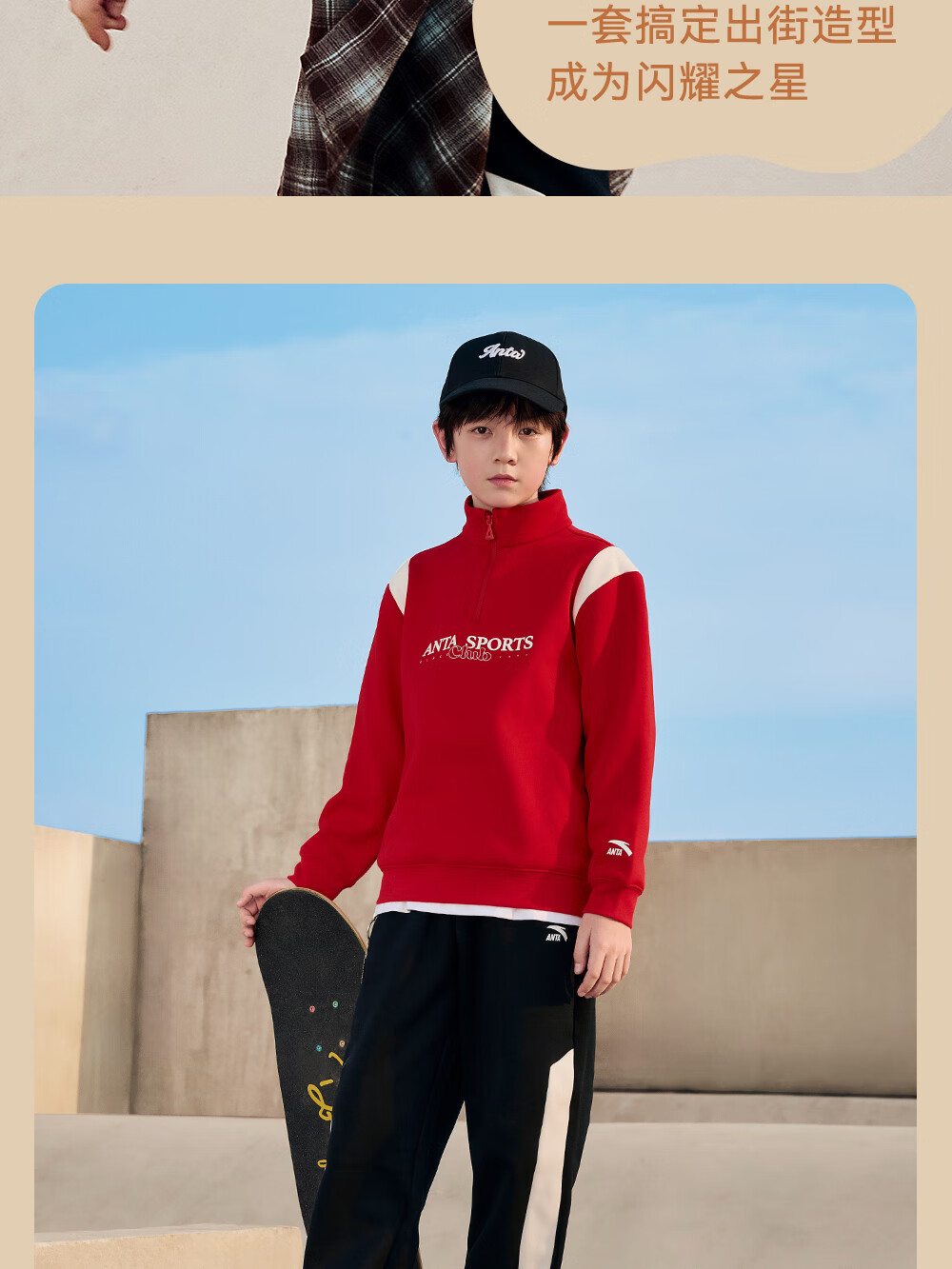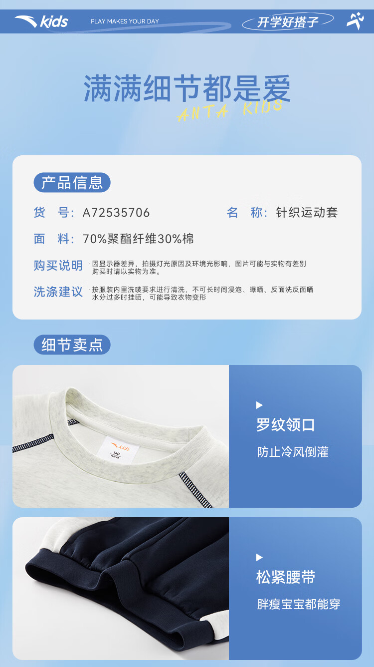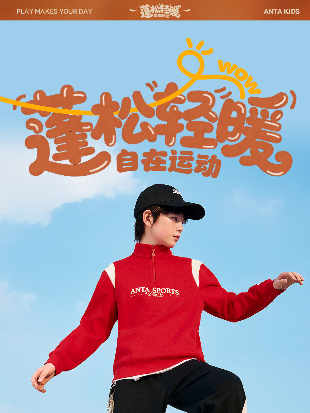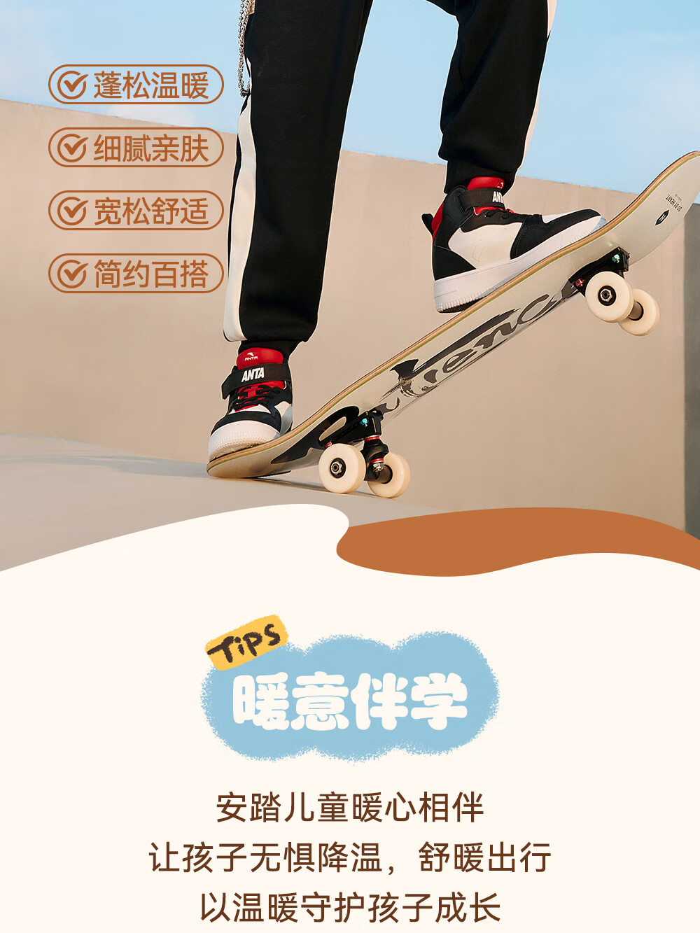 ANTA Children's Suit for Boys and Girls 2025 Autumn School Sports Children's Clothing Outdoor Running Training Knitted Sports Clothes Plus Velvet Style Black Letter Sweatshirt + Black Trousers Skin Warm Velvet 150 cm
