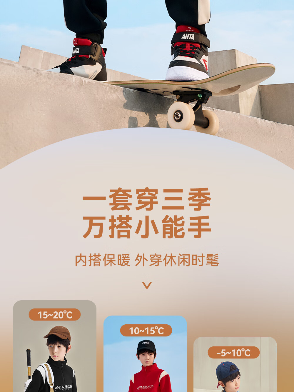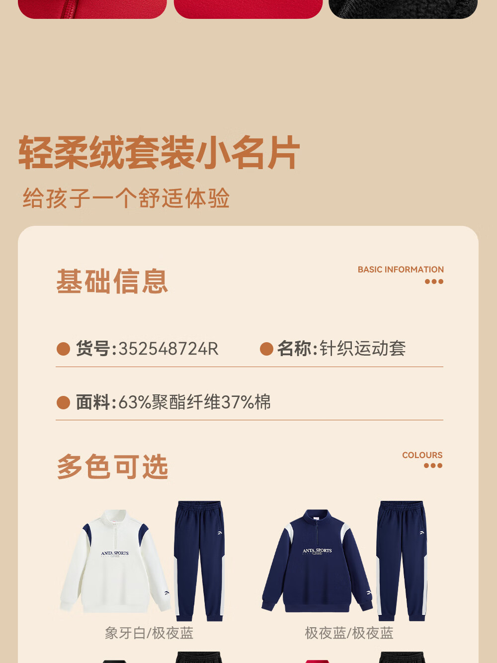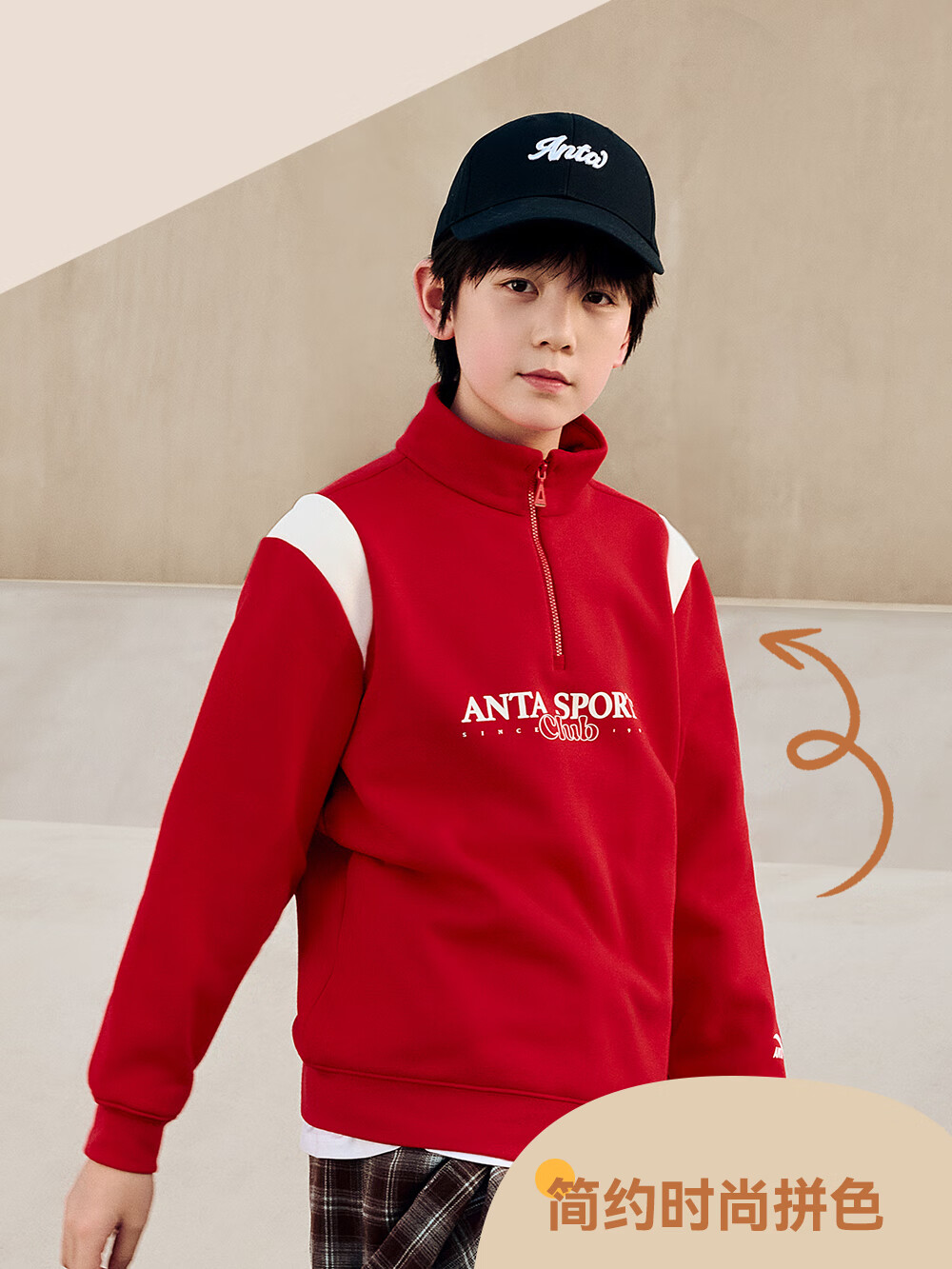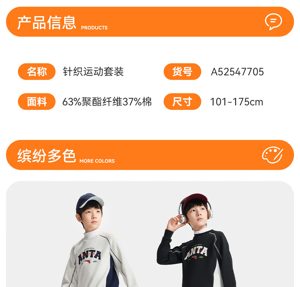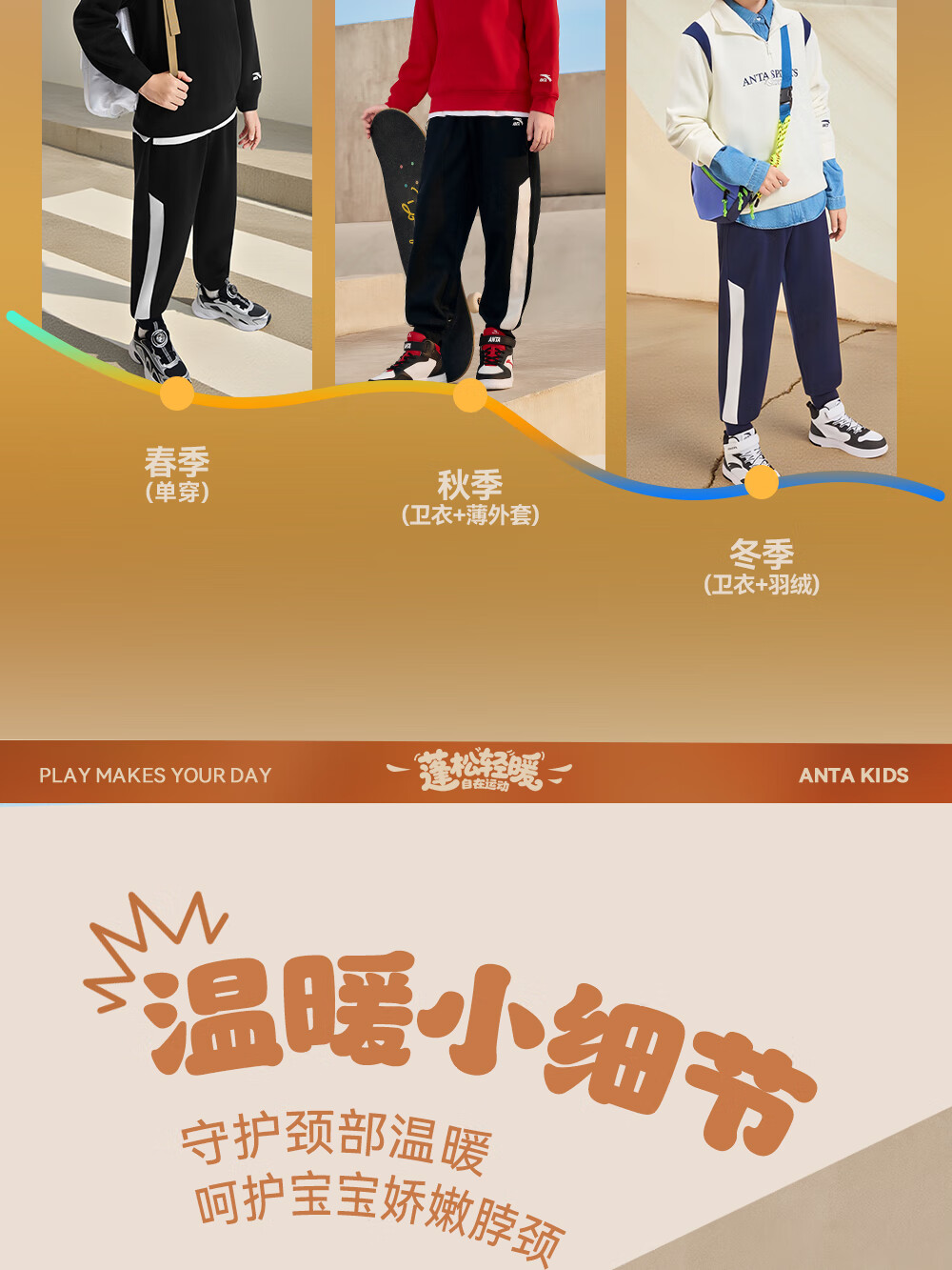 ANTA Children's Suit for Boys and Girls 2025 Autumn School Sports Children's Clothing Outdoor Running Training Knitted Sports Clothes Plus Velvet Style Black Letter Sweatshirt + Black Trousers Skin Warm Velvet 150 cm