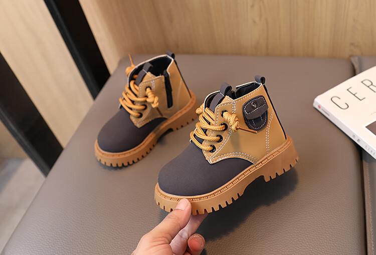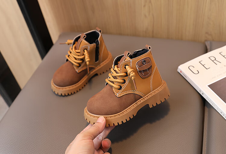 Terranis Yangma recommends boys' Martin boots for autumn and winter new style boys' single boots children's boots British leather boots baby school gray 21_inner length 13cm