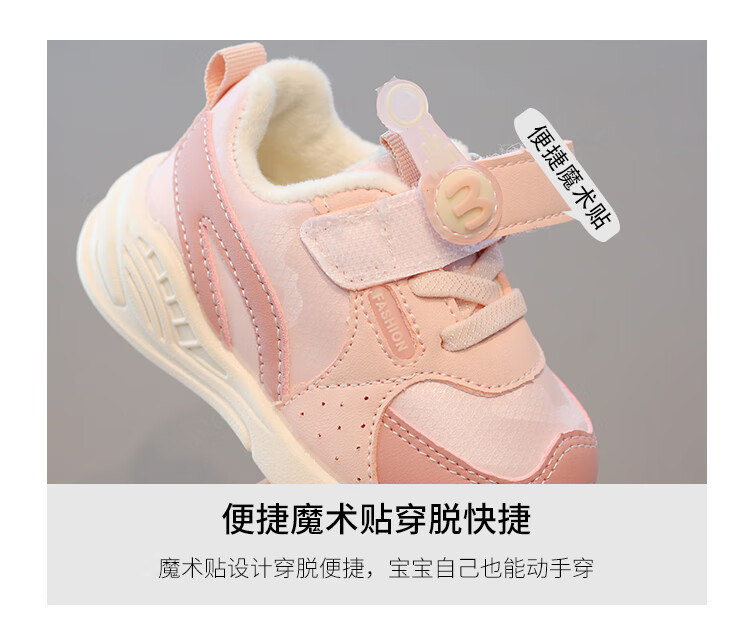 Tyrannis Yangma recommends toddler shoes for girls, soft soles and velvet, children's warm sports shoes, boys' non-slip winter style, soft-versatile-pink 11.5 inner length cm_16 size