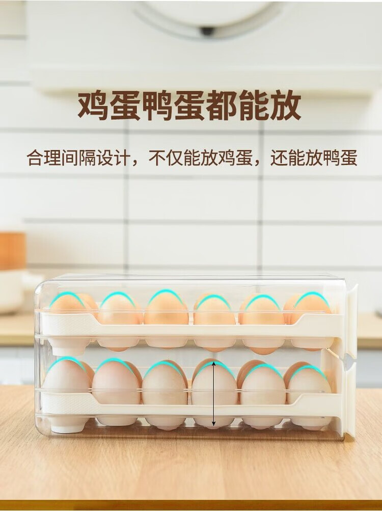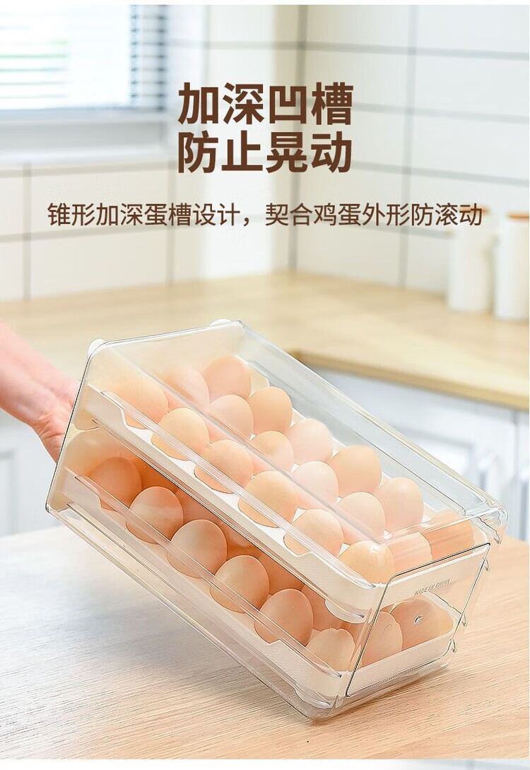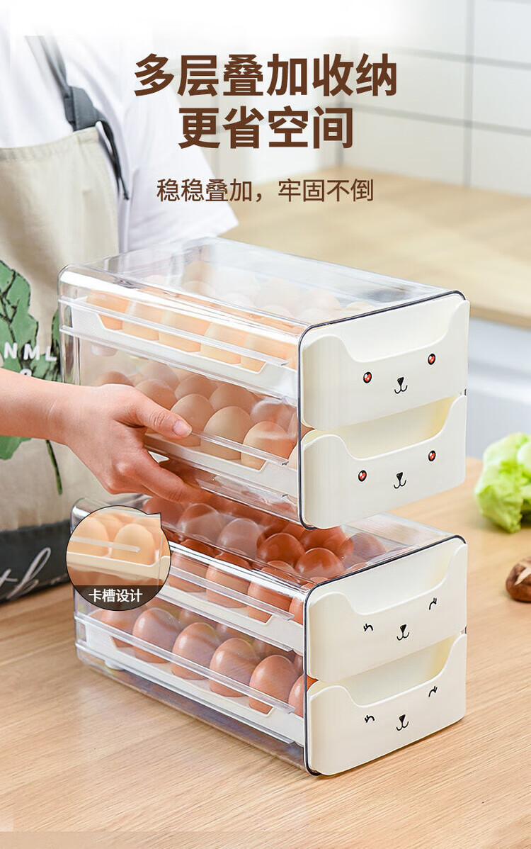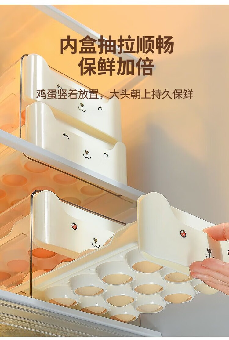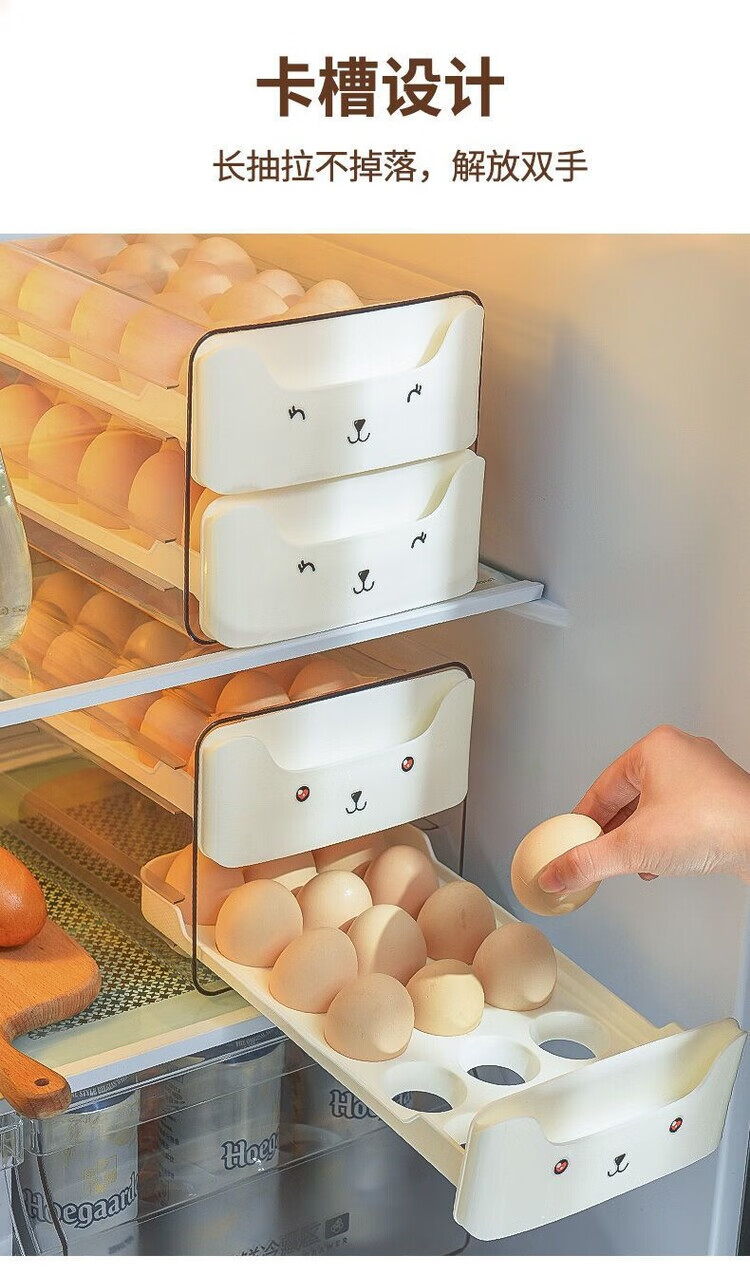 Ostar's new egg storage box drawer-type home refrigerator egg rack kitchen egg artifact food-grade egg storage box cream white single layer can hold 18 eggs