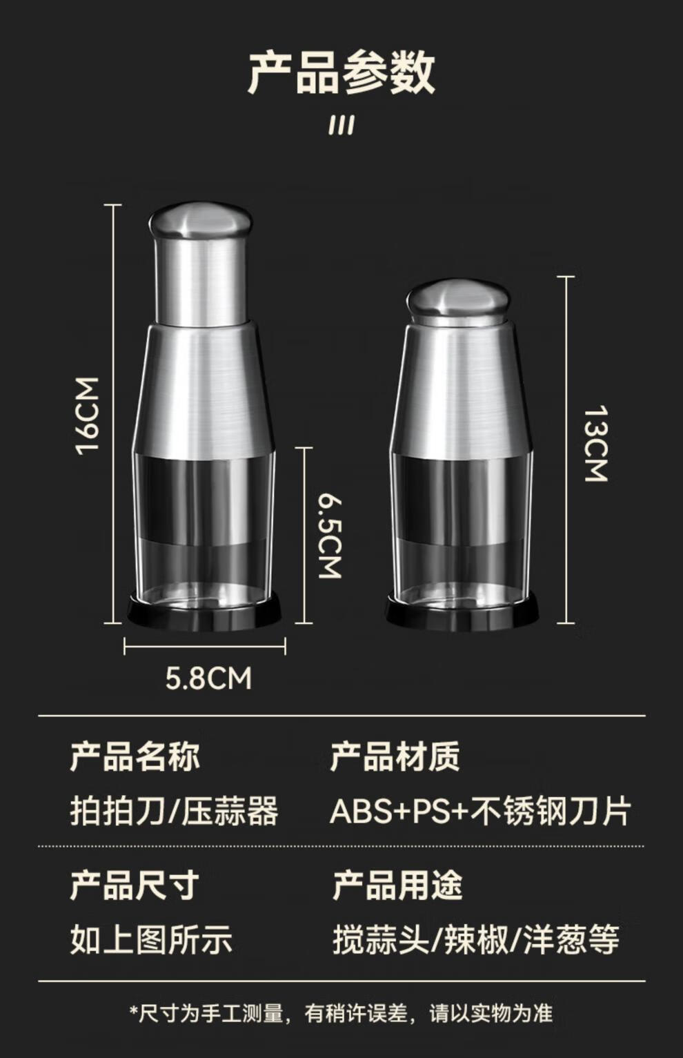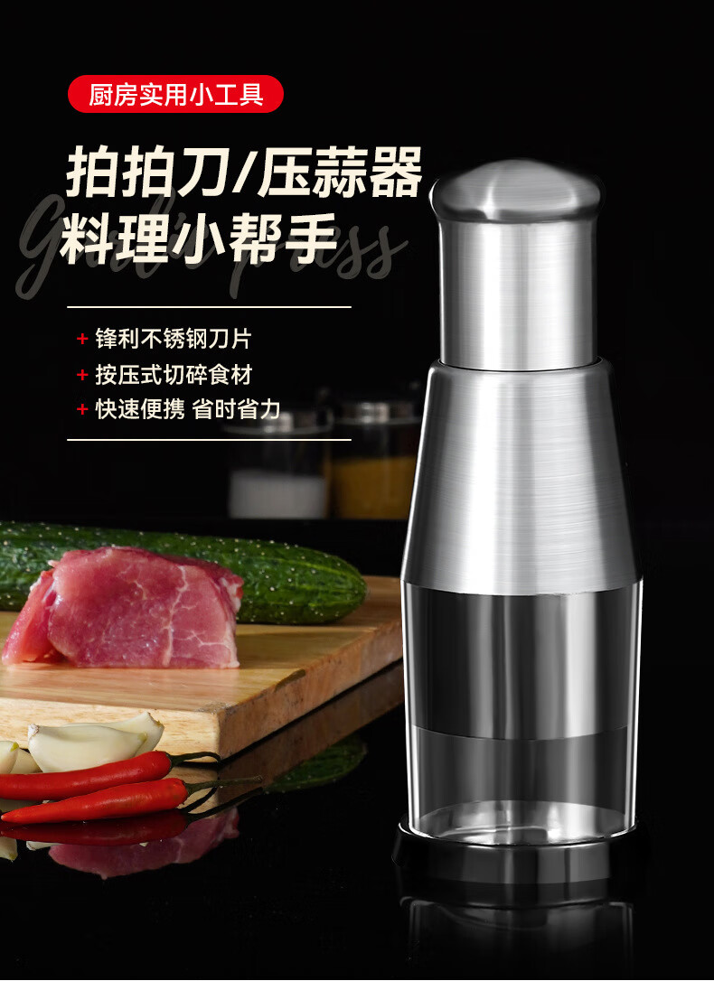 Fat Donglai's same type of garlic cutter, stainless steel multi-functional kitchen black technology manual garlic grinder, electroplated pat knife