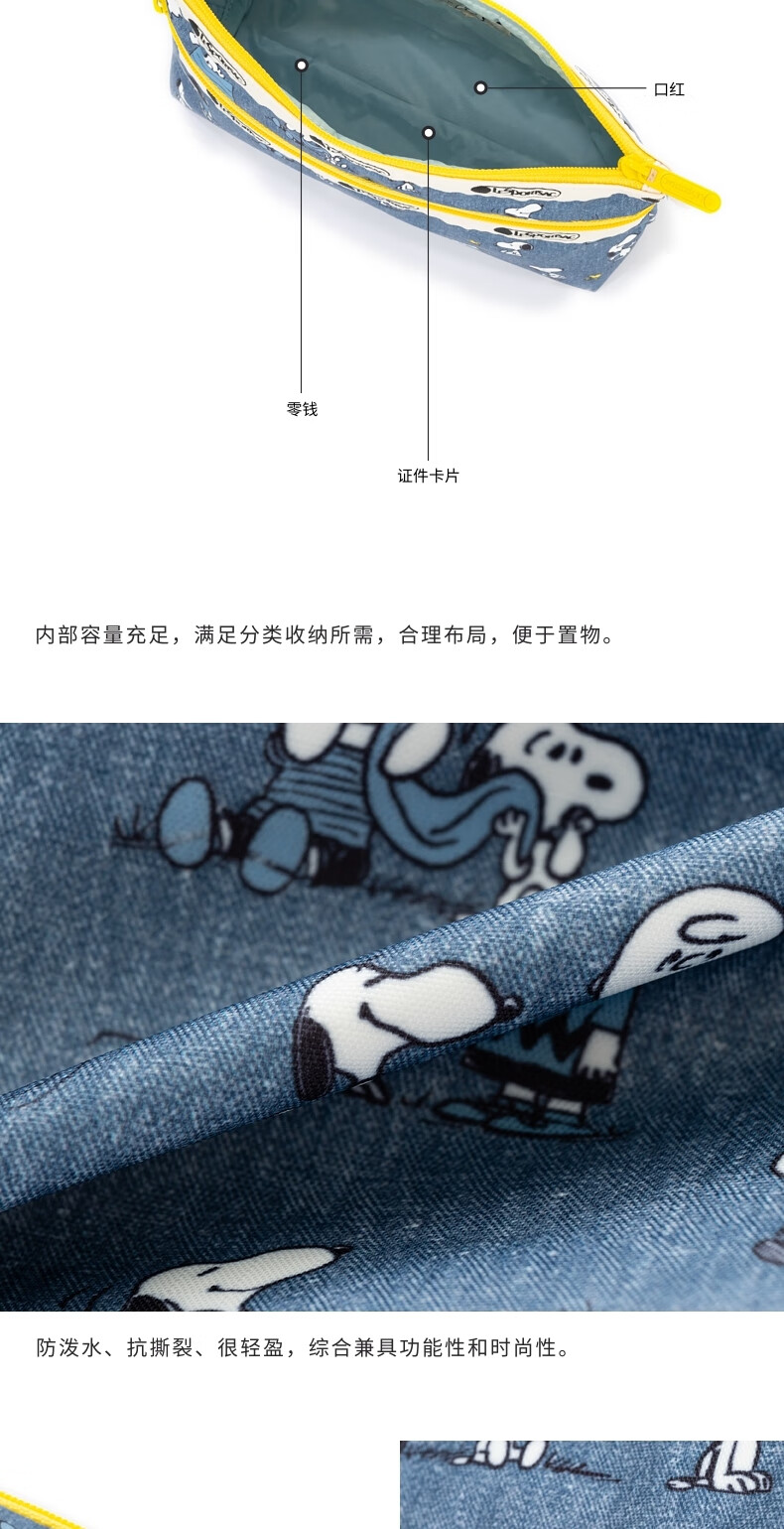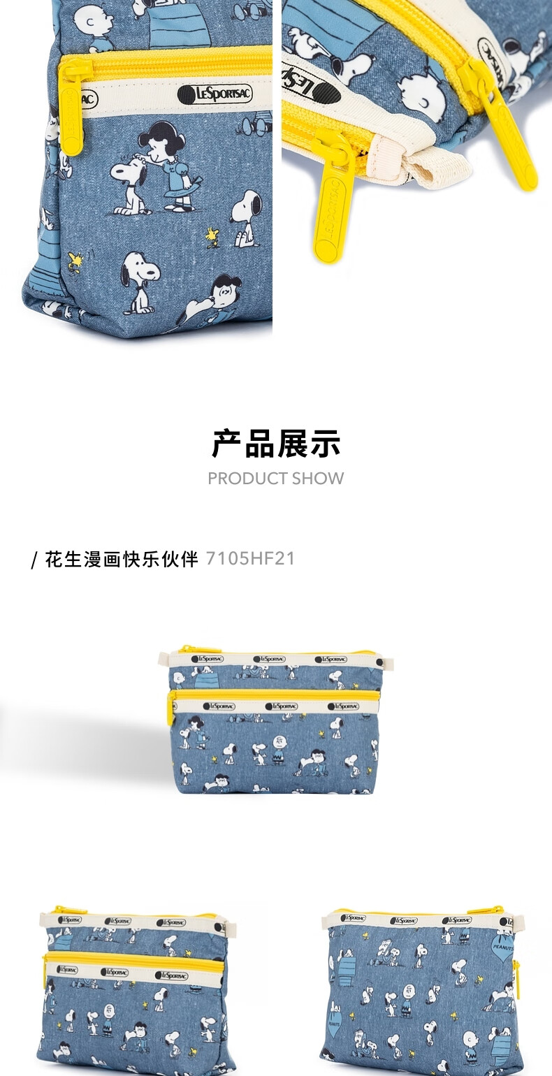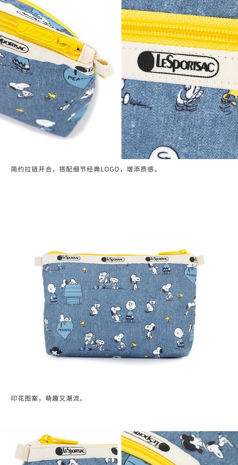 LeSportsac New Peanuts Comics Series Retro Blue Snoopy Compartment Storage Bag Clutch Peanuts Comics Happy Partner