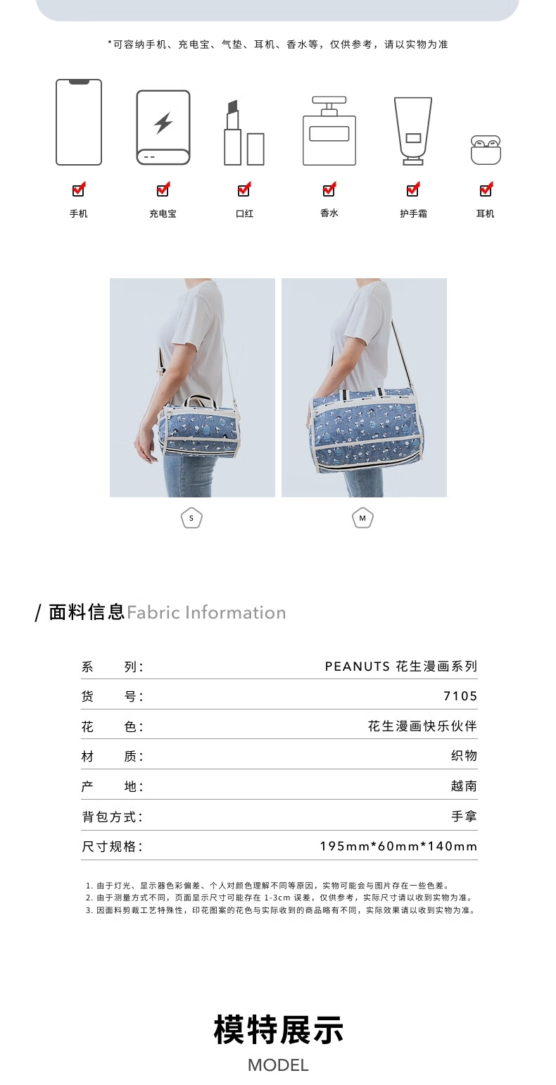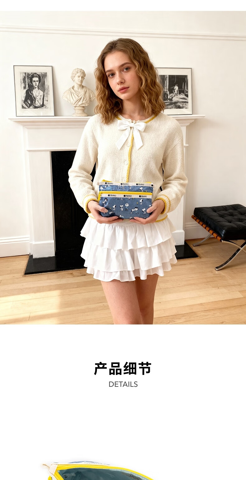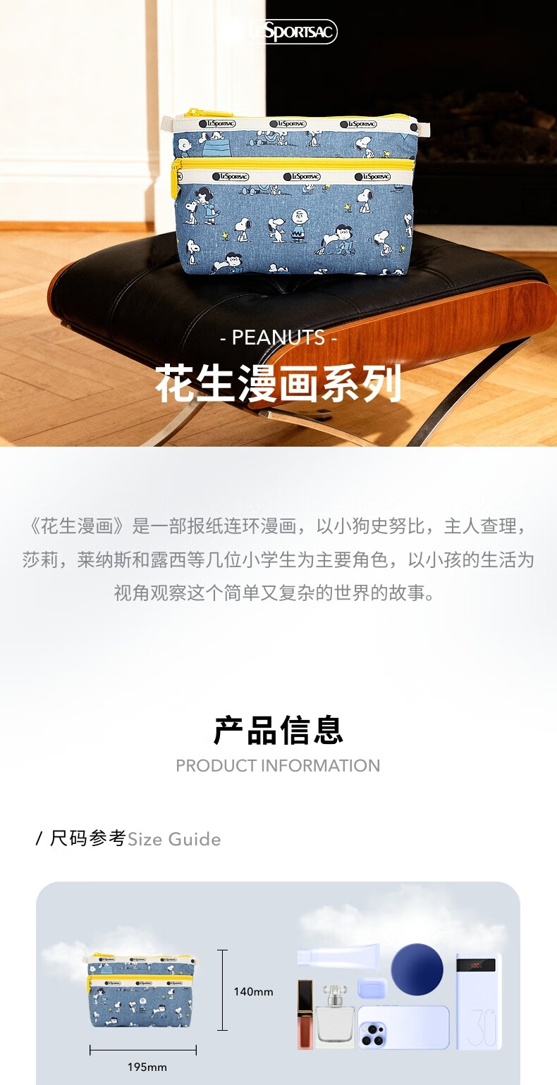 LeSportsac New Peanuts Comics Series Retro Blue Snoopy Compartment Storage Bag Clutch Peanuts Comics Happy Partner