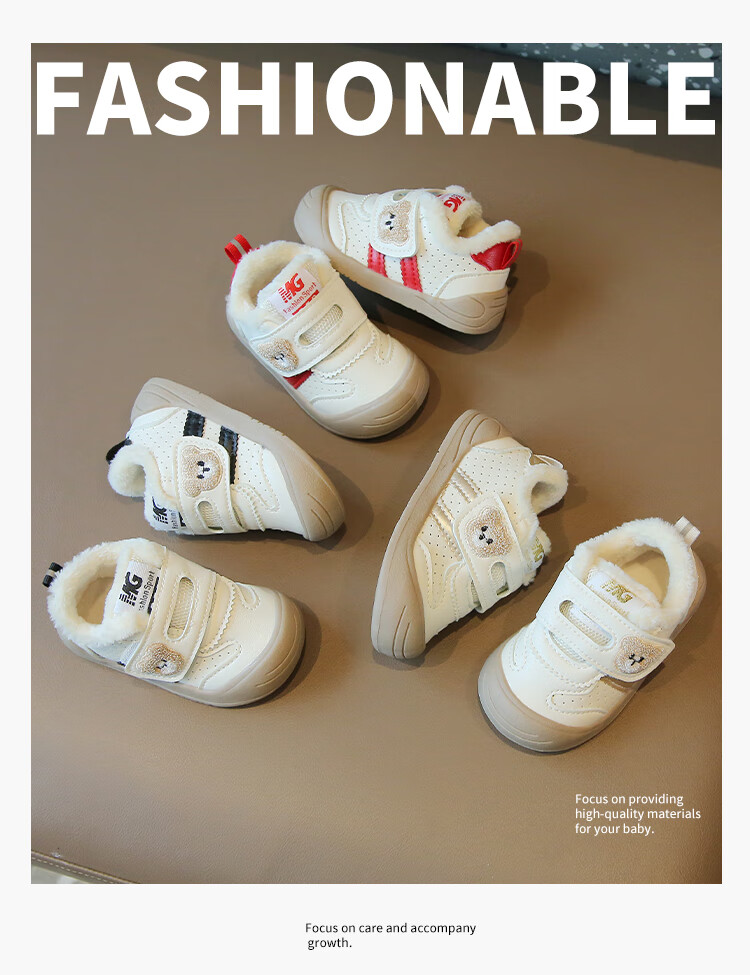 Tyrannis Yangma recommends toddler shoes, boys' autumn and winter velvet shoes 0 1-2 year old children's non-slip soft-soled shoes, black 17_inner length 12.5cm