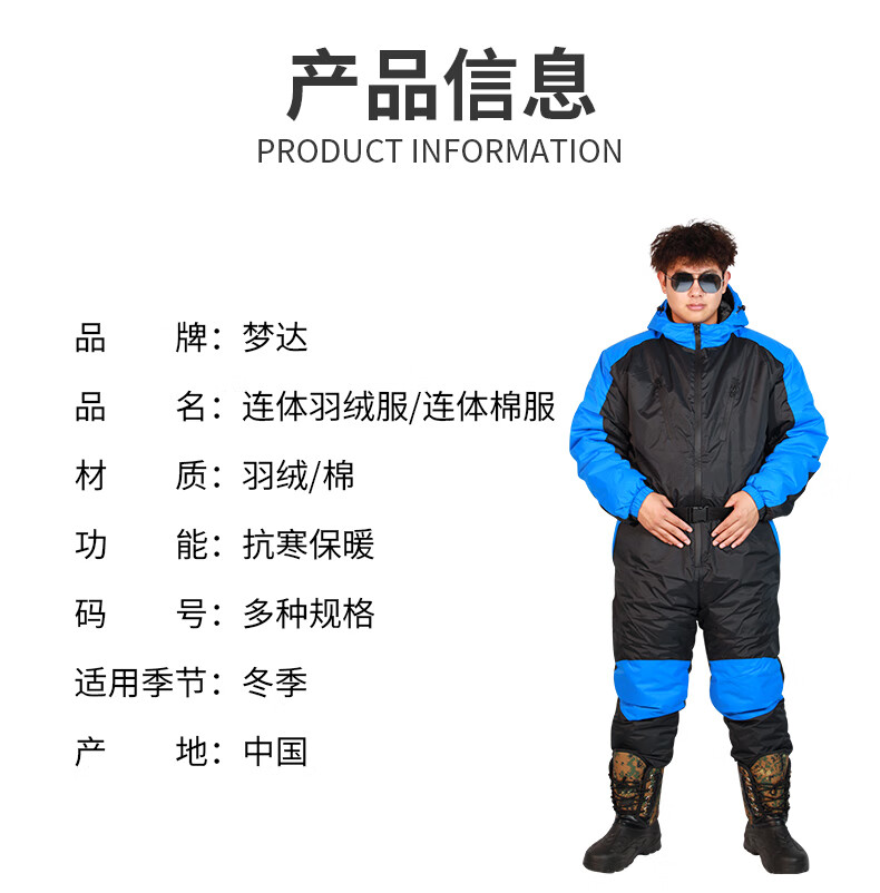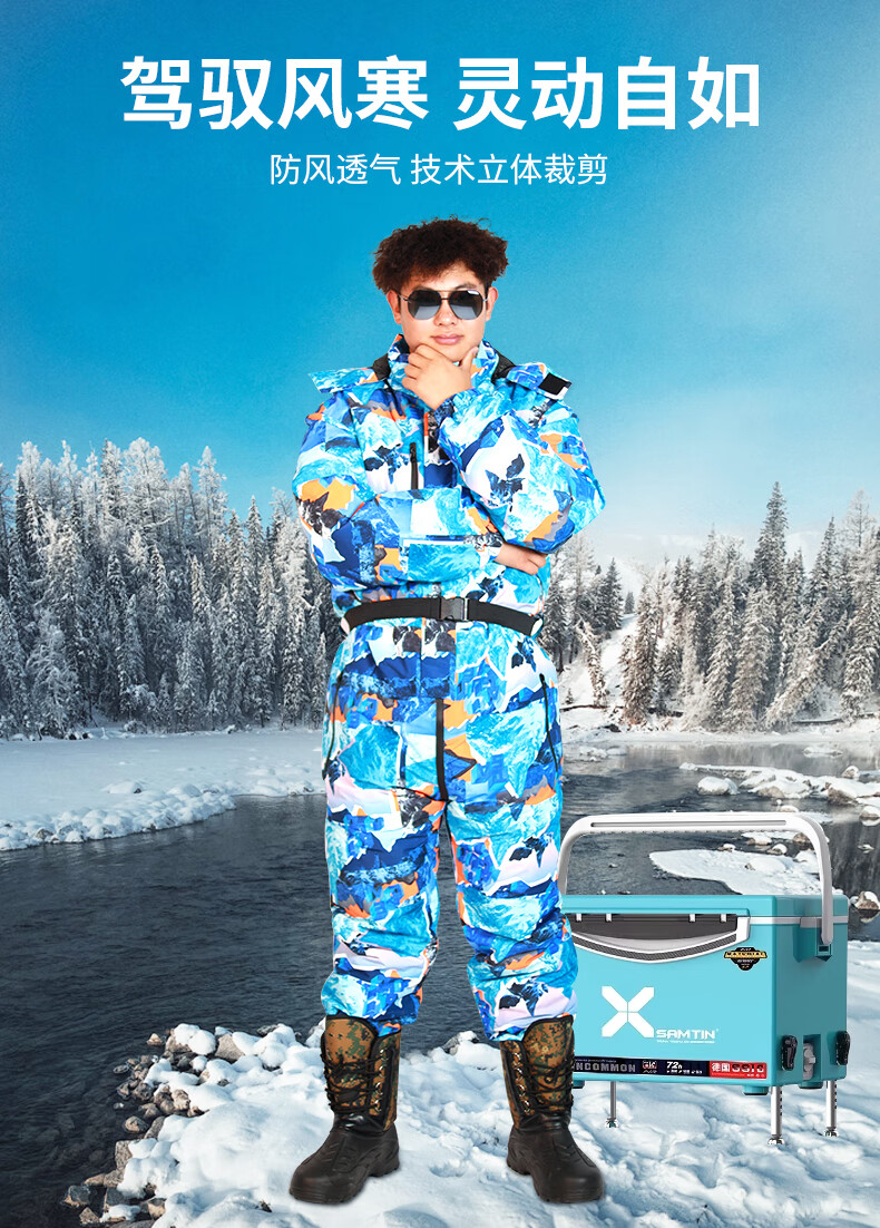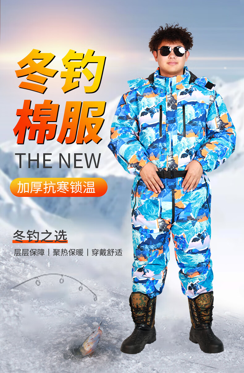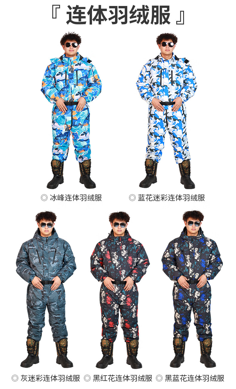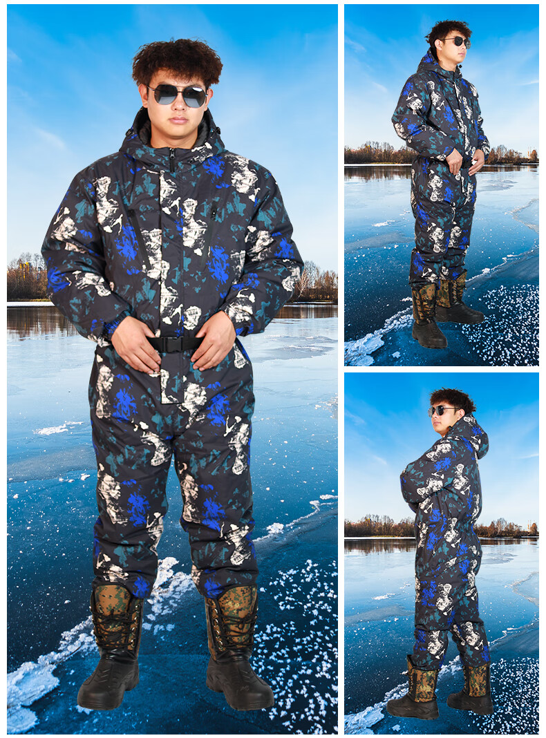 Wooden flute winter fishing one-piece down jacket men's thickened warm clothing winter fishing anchor fish ice fishing cold storage sea fishing anti-black and red flower jumpsuit M 60
