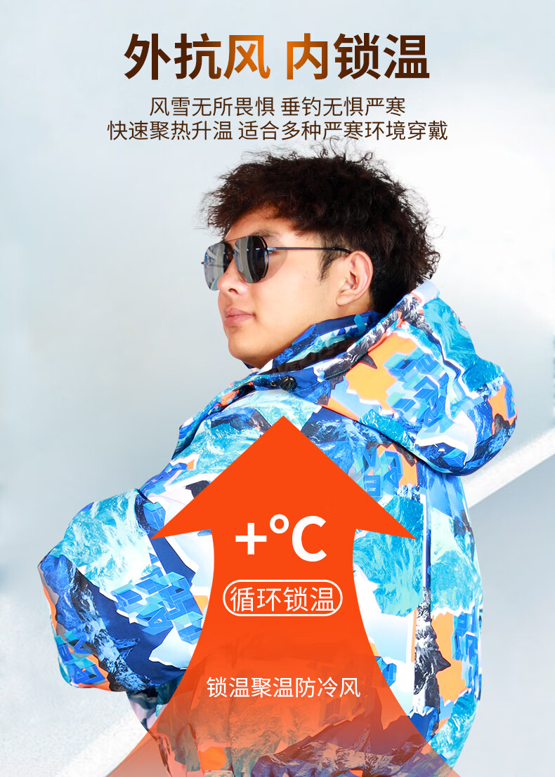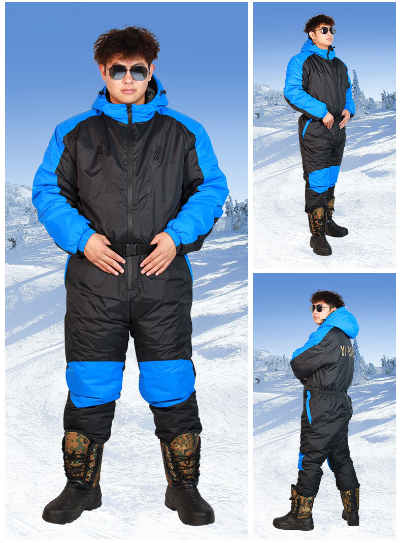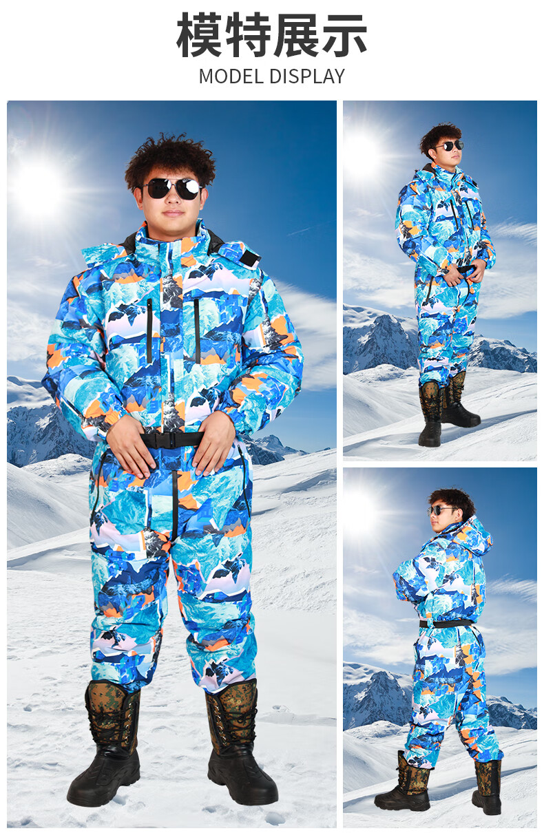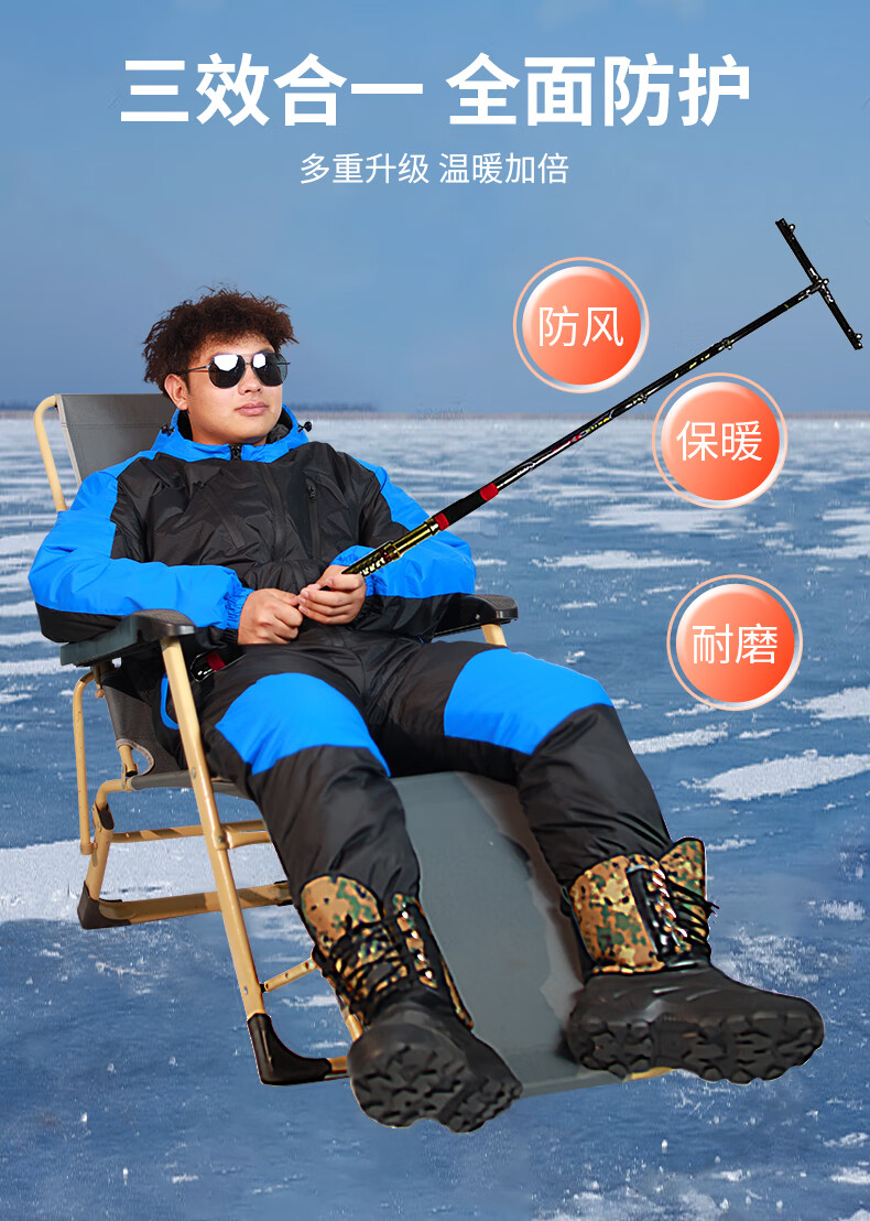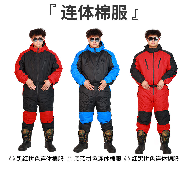 Wooden flute winter fishing one-piece down jacket men's thickened warm clothing winter fishing anchor fish ice fishing cold storage sea fishing anti-black and red flower jumpsuit M 60