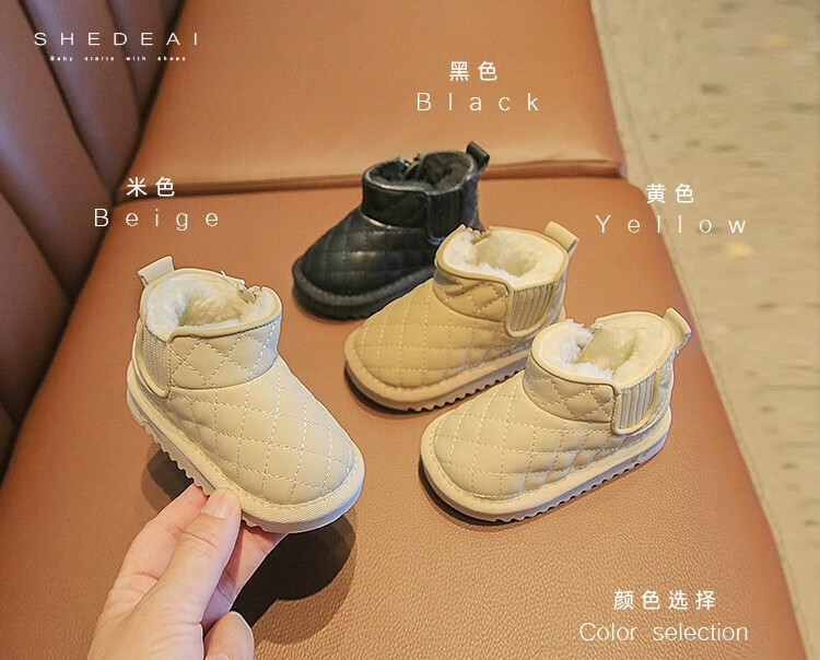 Terranis Yangma recommends baby boy autumn and winter snow boots, children's velvet cotton shoes, toddler shoes for girls 0-3 years old, Khaki 15_inner length 11.5cm