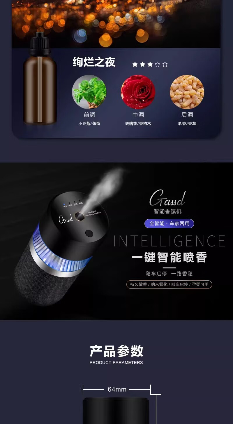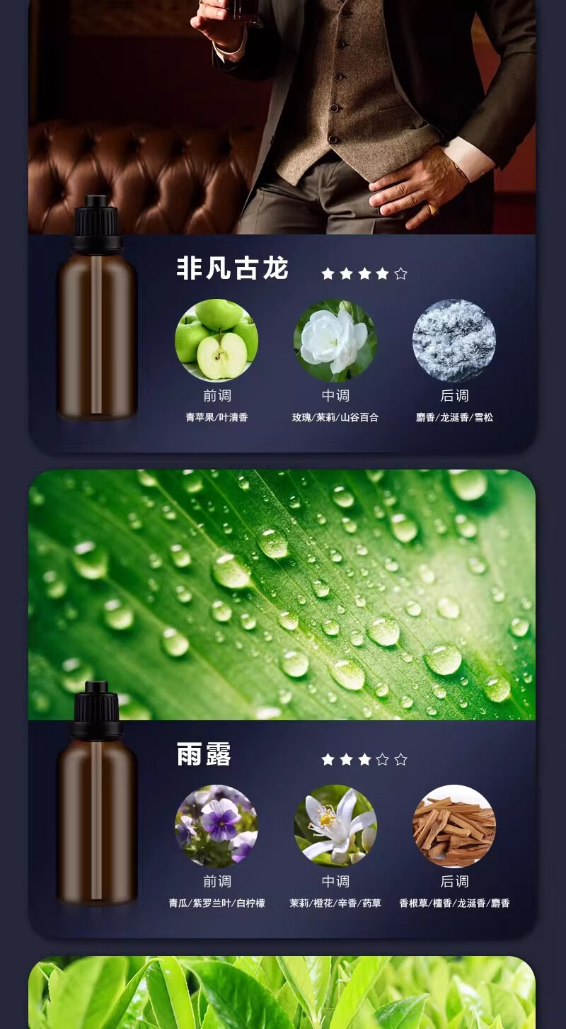 Car smart atmosphere aromatherapy long-lasting light fragrance car formaldehyde removal perfume ornaments air freshener gift rain dew 30ml 1 bottle