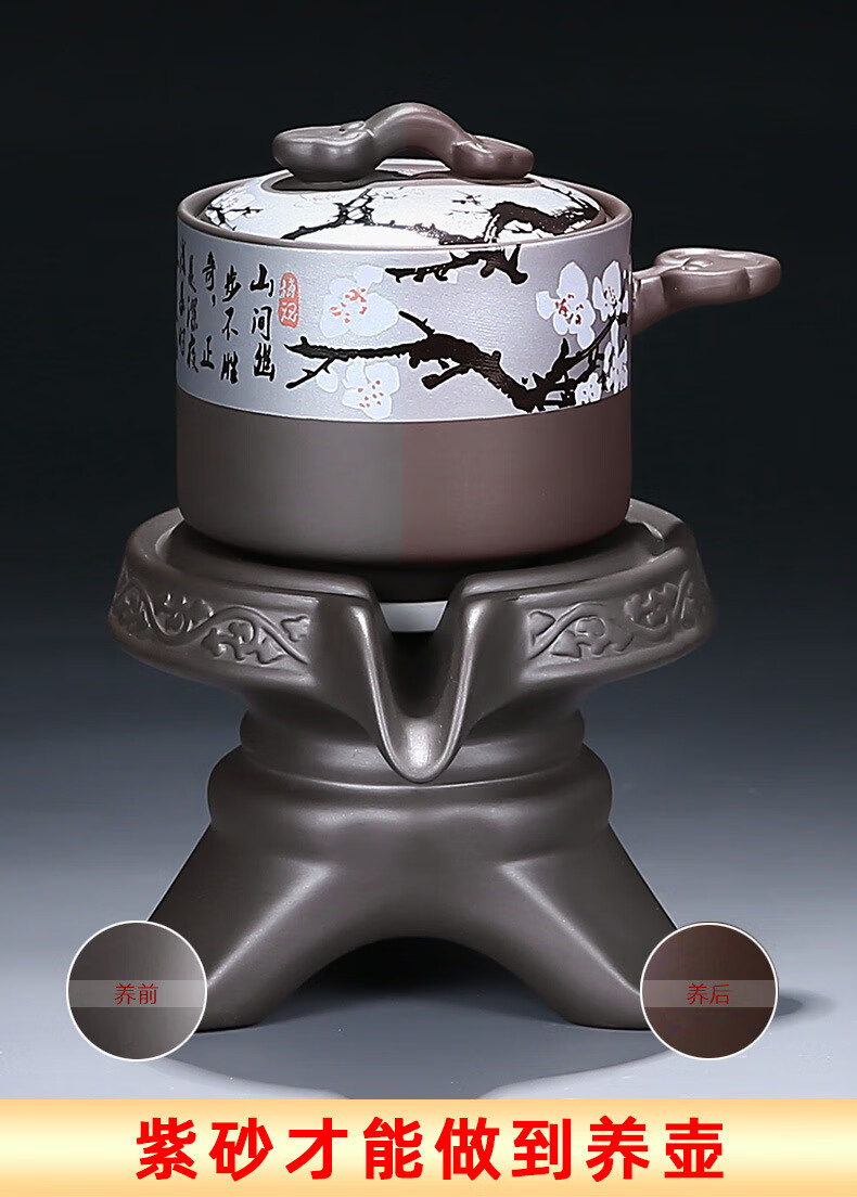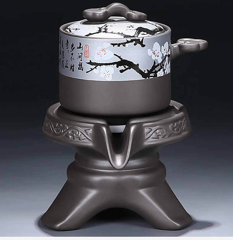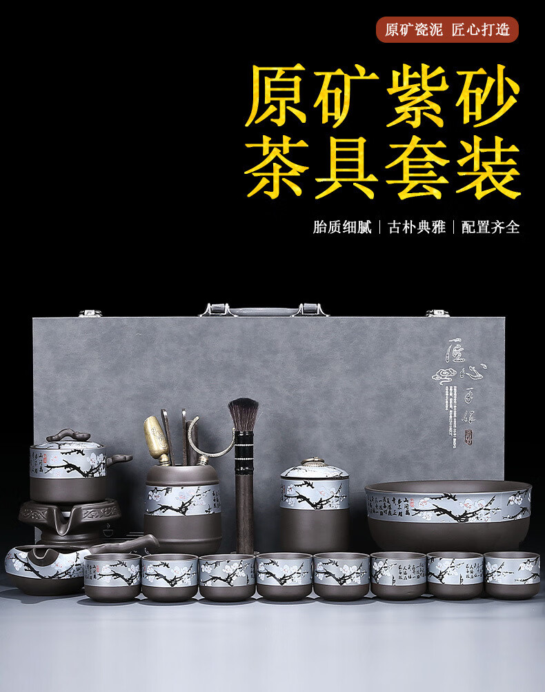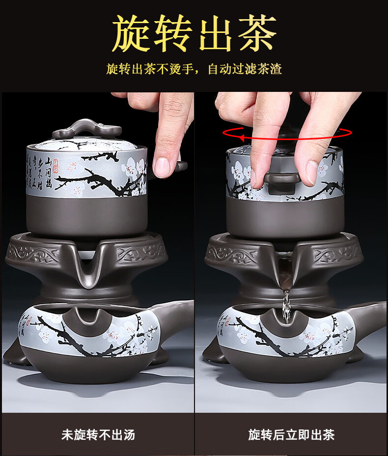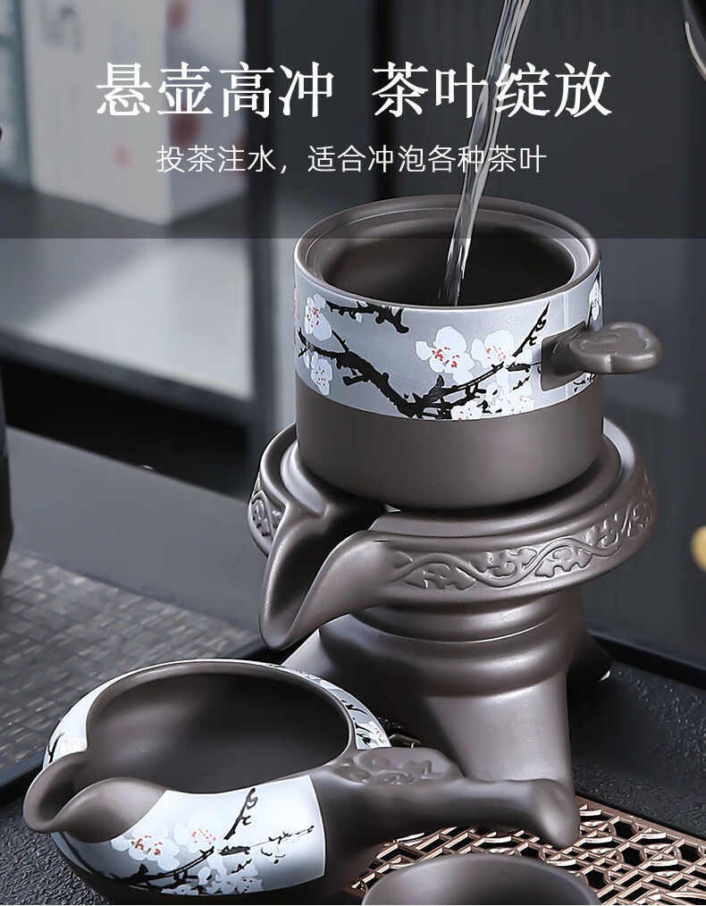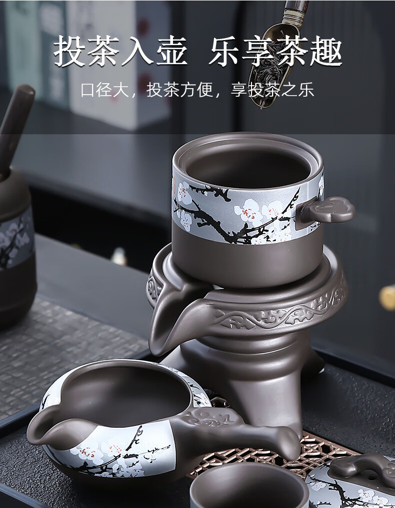 Zisha lazy tea making artifact Kung Fu tea cup tea set household retro stone mill automatic teapot gift box Zisha plum blossom thirteen-piece set--safe packaging 13 pieces