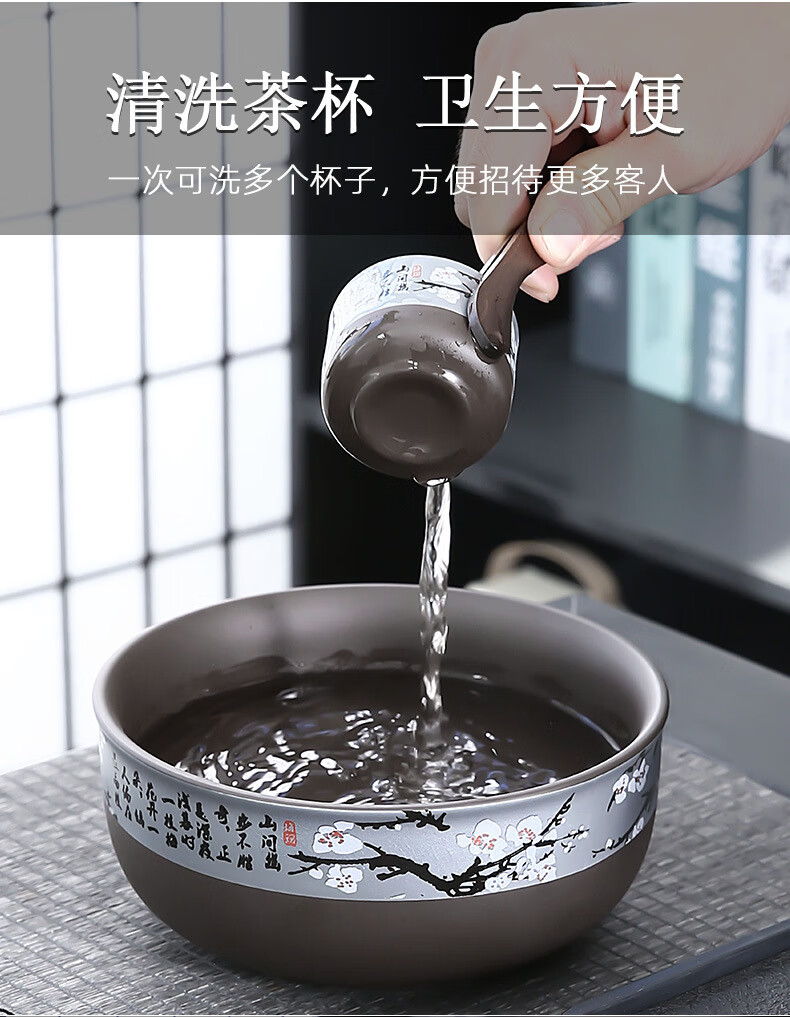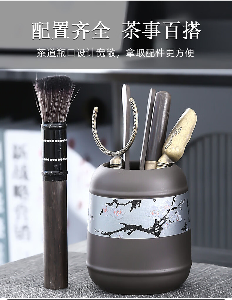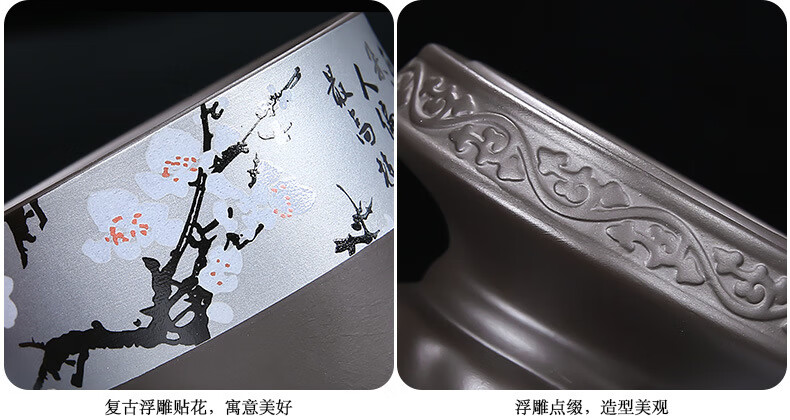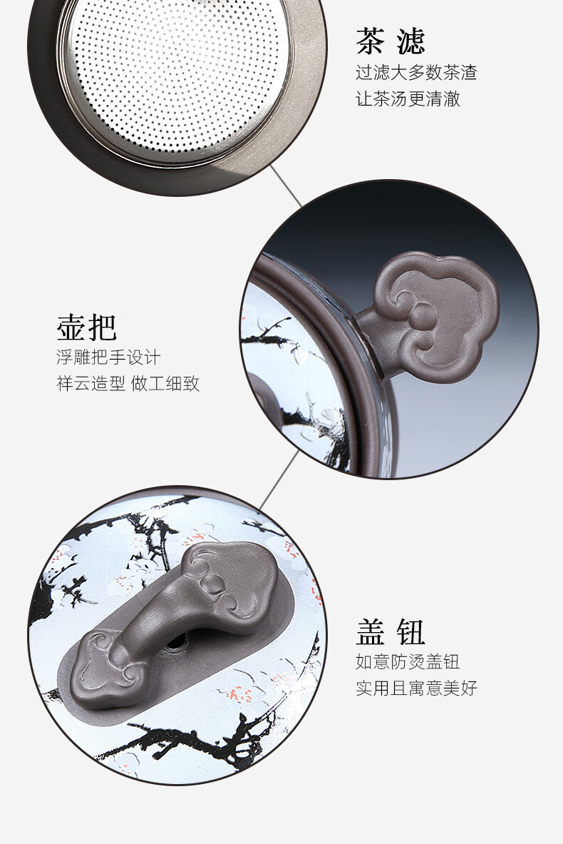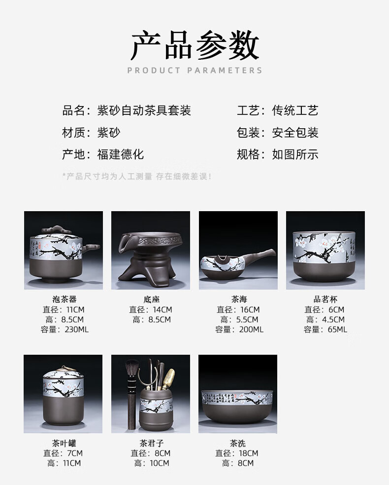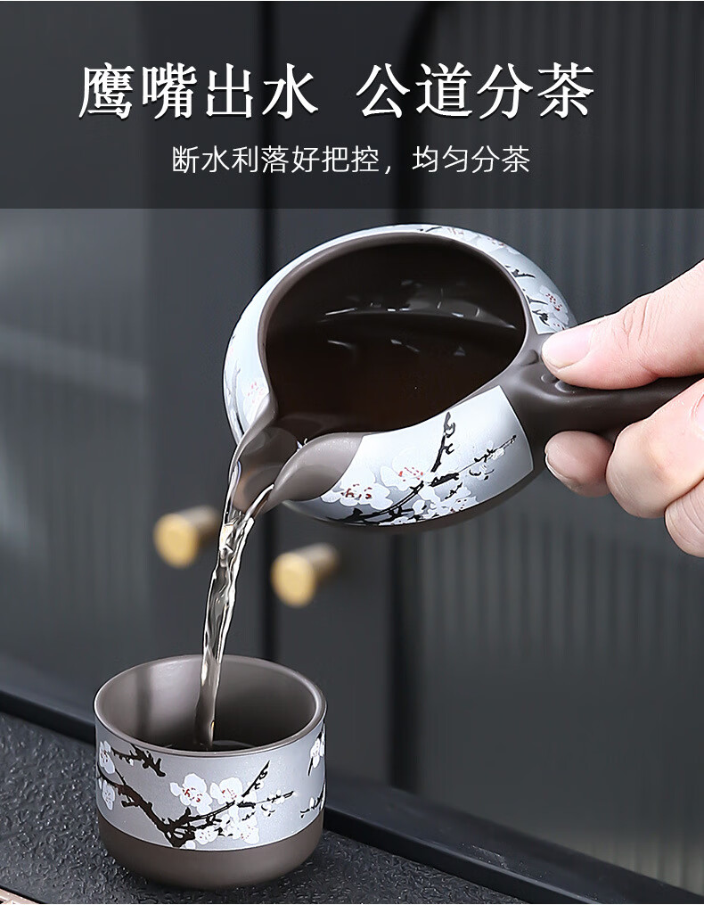 Zisha lazy tea making artifact Kung Fu tea cup tea set household retro stone mill automatic teapot gift box Zisha plum blossom thirteen-piece set--safe packaging 13 pieces