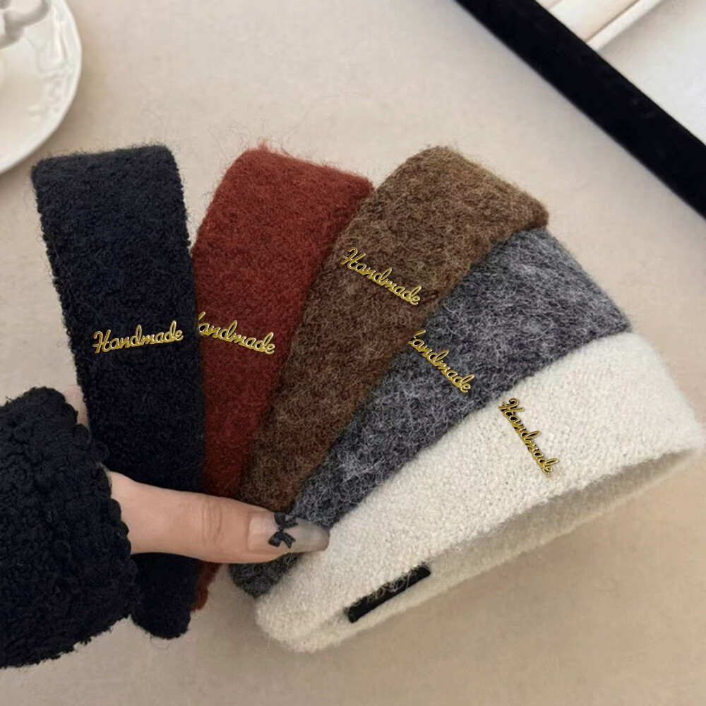 Autumn and winter widened woolen headbands for women 2025 new style pressed hair wash hairpin letter style high-end headband wine red