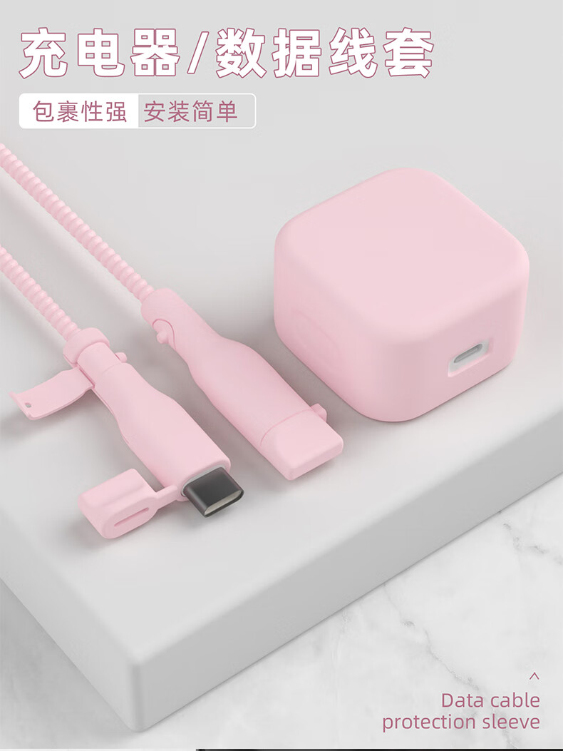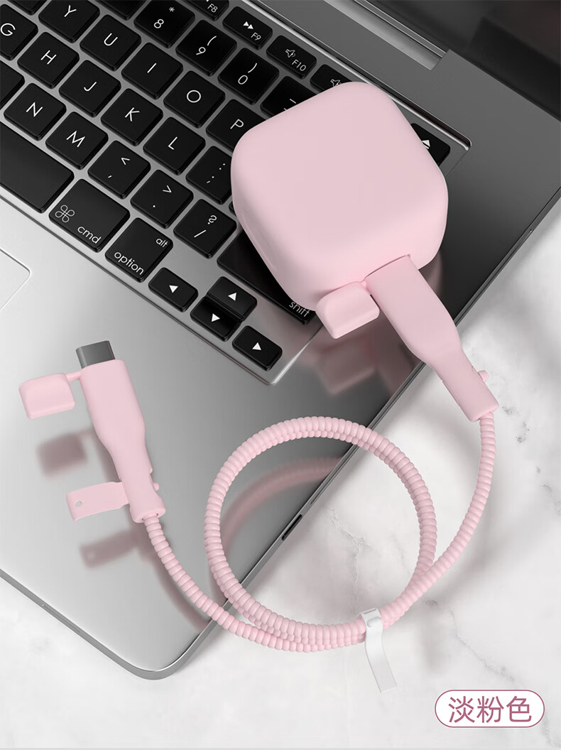 HAPPYMAKER new Apple 17Pro dustproof charger data cable protective cover 40W Apple 17/17Promax mobile phone case Apple 40W dual C port four-piece set light pink-cable cover one color with dustproof plug
