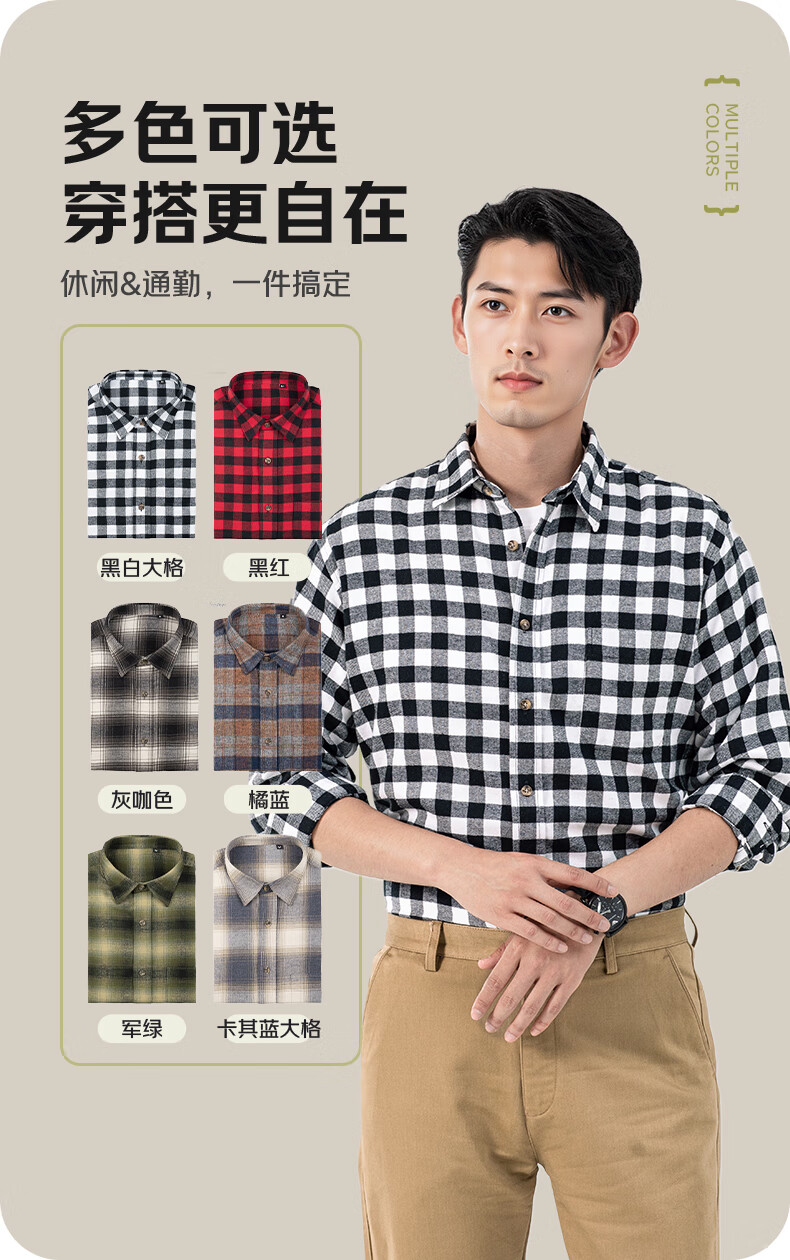 Skin-friendly and warm, autumn and winter velvet men and women's casual flannel plaid long-sleeved shirt, comfortable, skin-friendly and warm, orange and blue BA185A274AH L