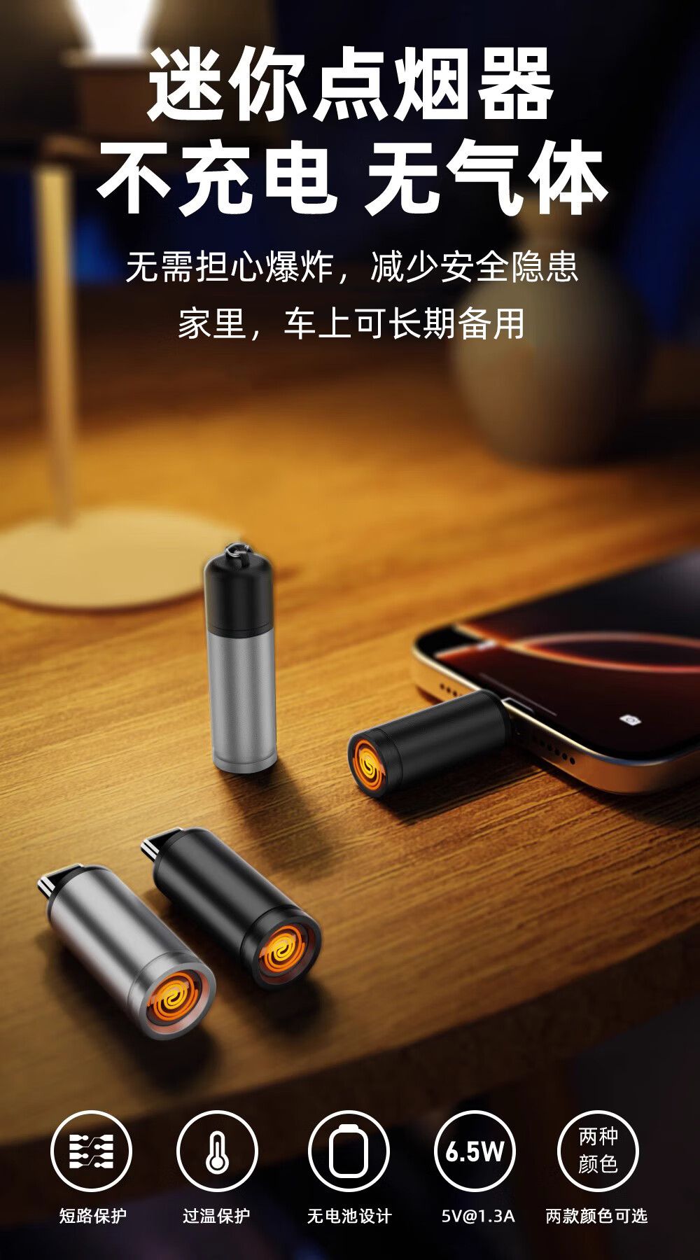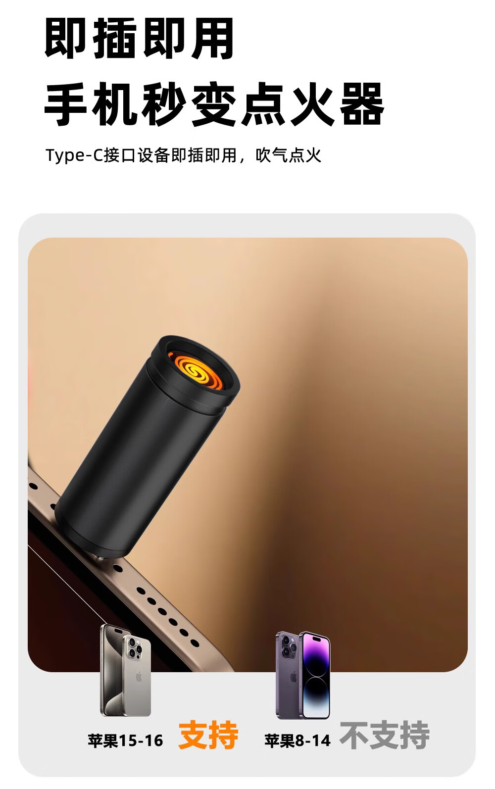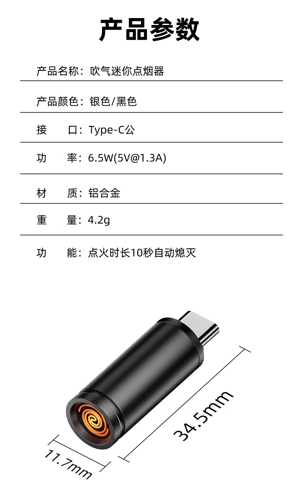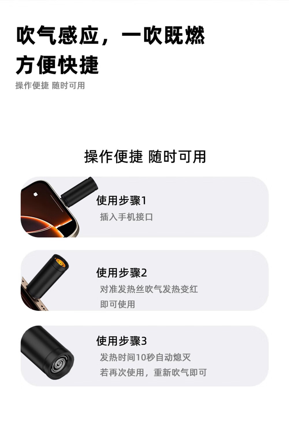 Blowing sensor, trendy lifestyle appliances, newly upgraded mobile phone cigarette lighter, Type-c socket, safe, portable mini cigarette lighter, 10 seconds auto-extinguishing lighter, DY3 portable cigarette lighter, black, no need to inflate and charge + ignites as soon as you blow it