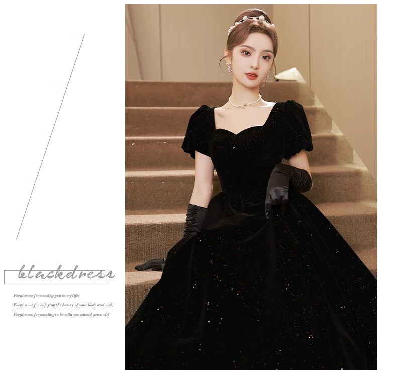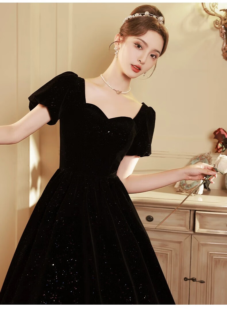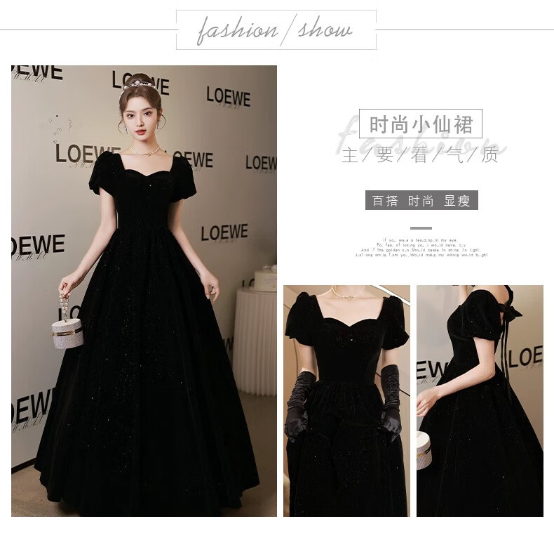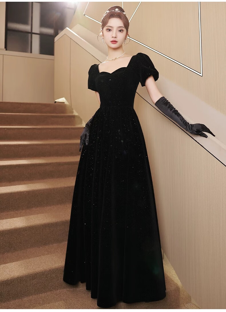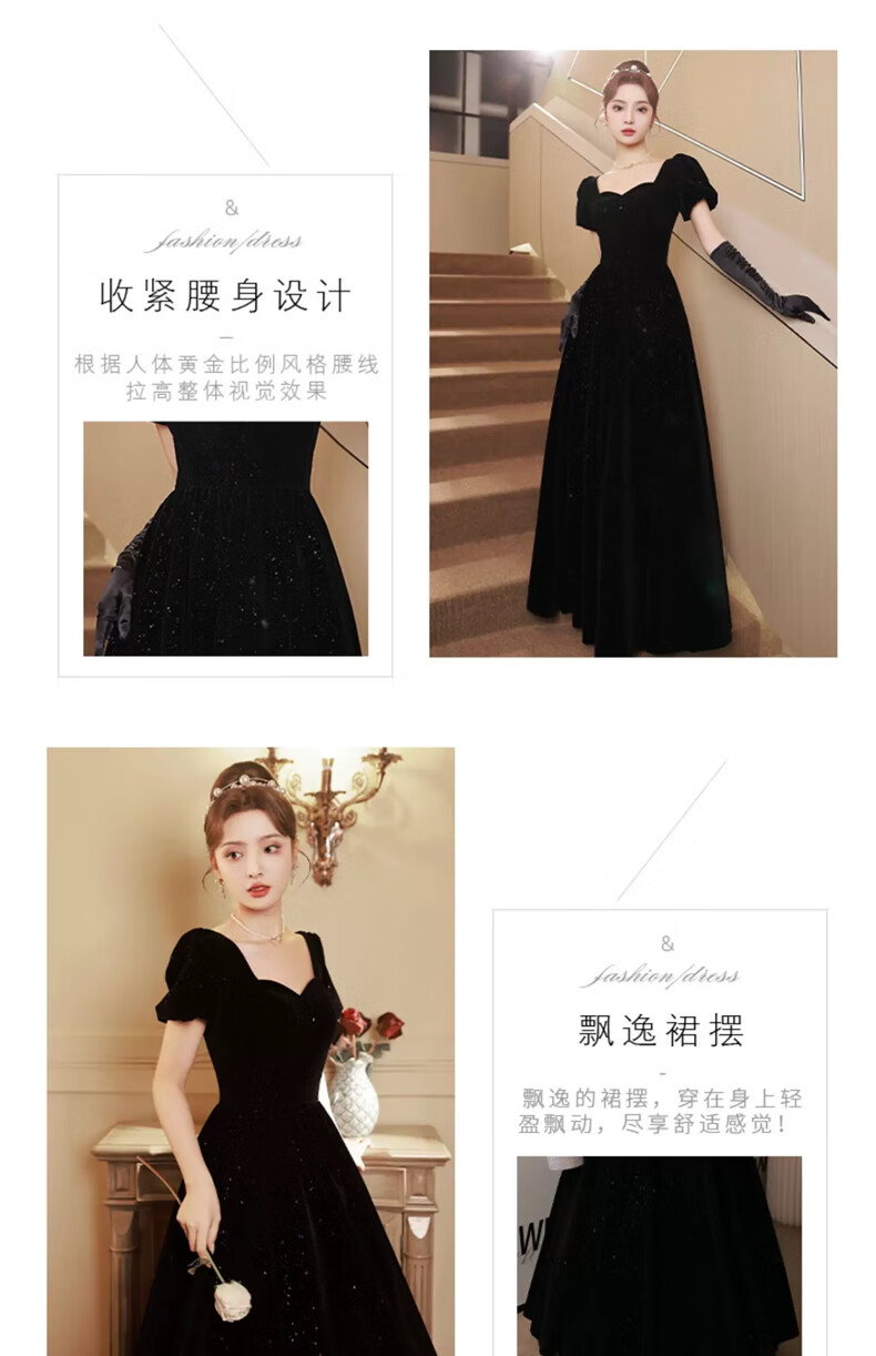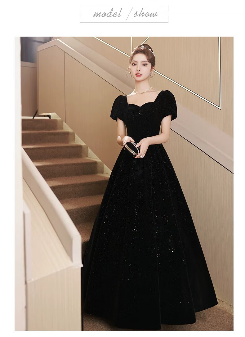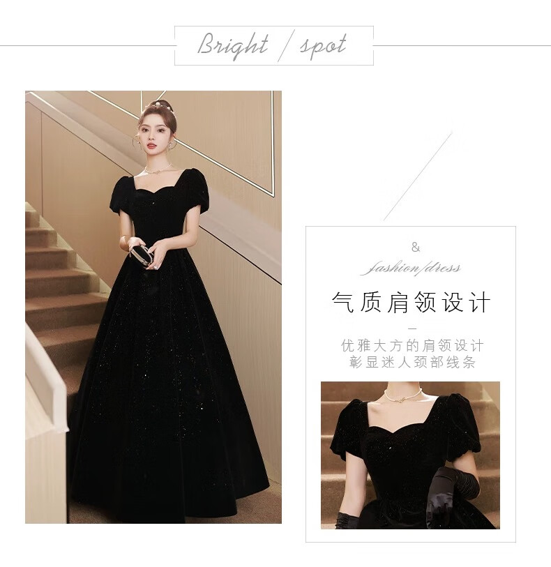 Black autumn and winter new evening dress light luxury niche high-end art exam adult ceremony host long French high-end large size black strap style L