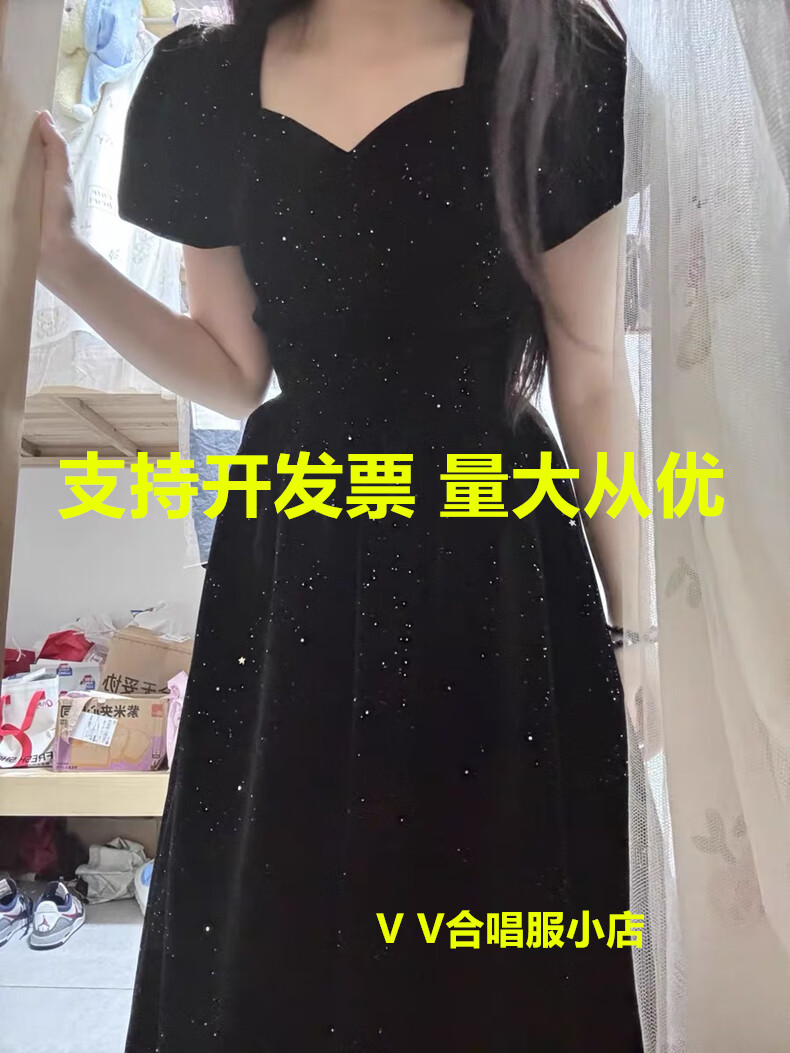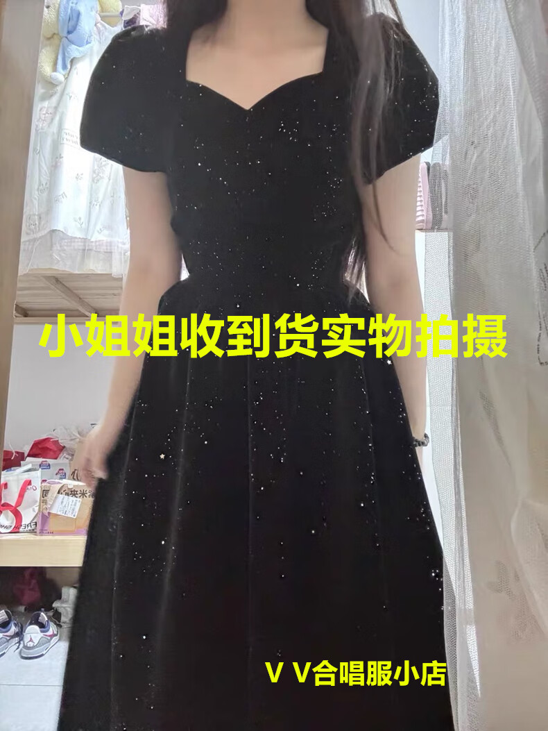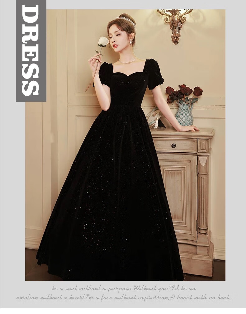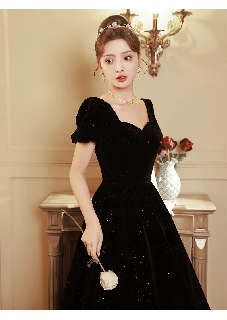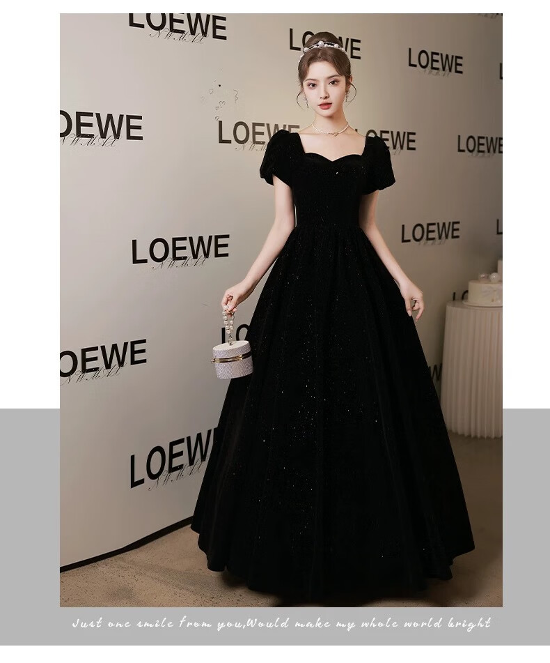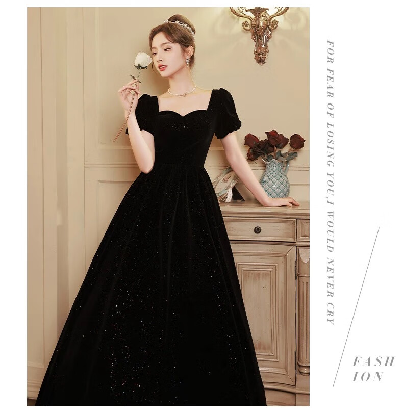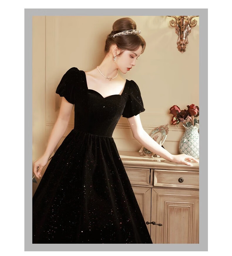 Black autumn and winter new evening dress light luxury niche high-end art exam adult ceremony host long French high-end large size black strap style L