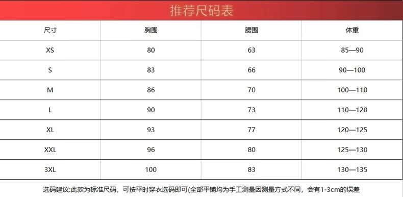 China (cm) 160-165/84-86 165-170 / 88-90 167-172 / 92-96 168-173 / 98-102 170-176 / 106-110