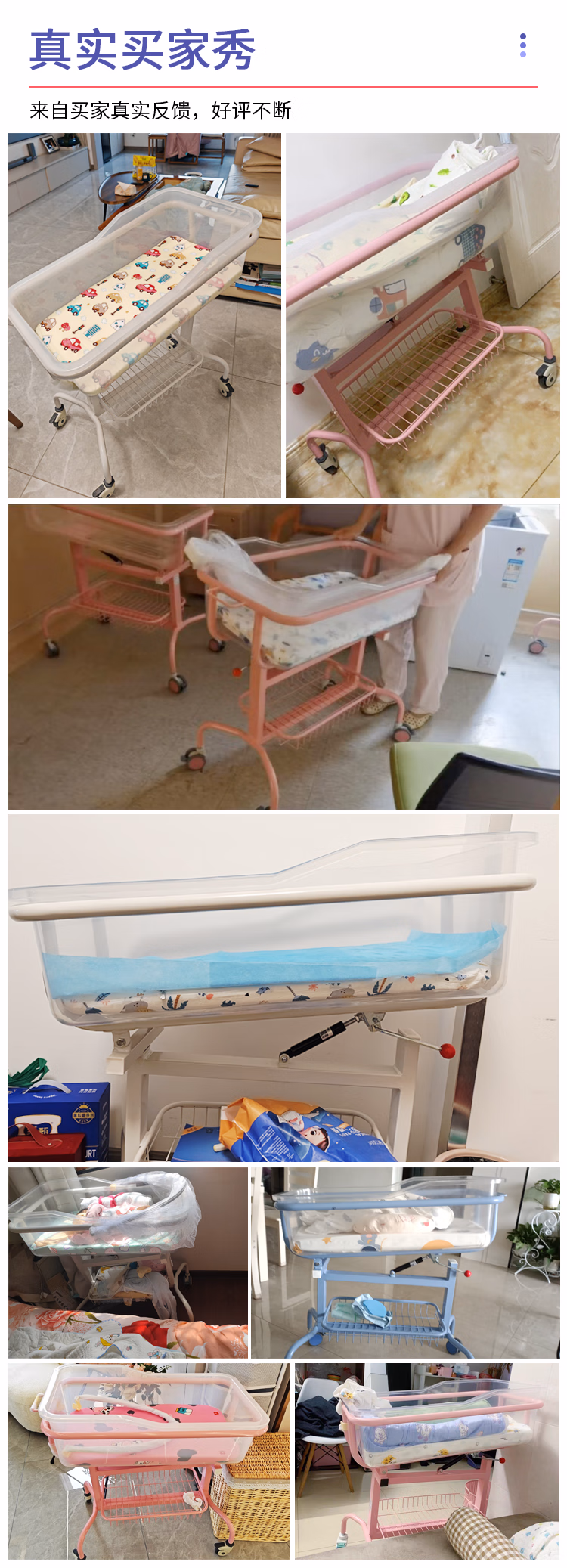 General Hospital Same Style Baby Crib Confinement Center Stroller Hospital Same Style Baby Crib Medical Newborn Crib Confinement Upgraded Transparent Basin White Double-Sided Wheel (Includes Mosquito Net Mattress)