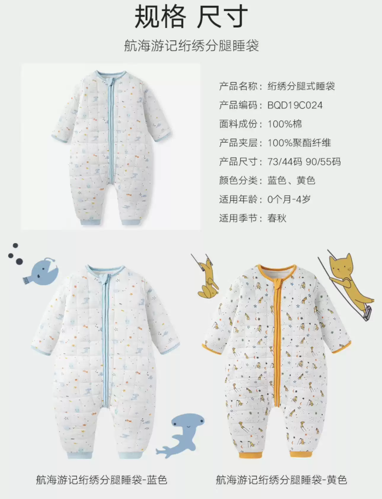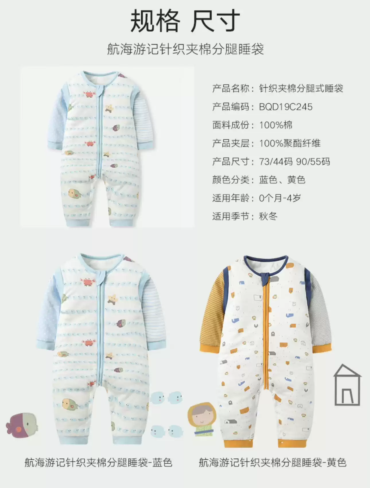 Goodbaby (gb) Goodbaby baby sleeping bag anti-kick quilt spring and autumn children's winter model baby autumn and winter thickened quilt small month old 73 yards 65-80cm nautical travel style recommended temperature 0-15 packaging slightly defective