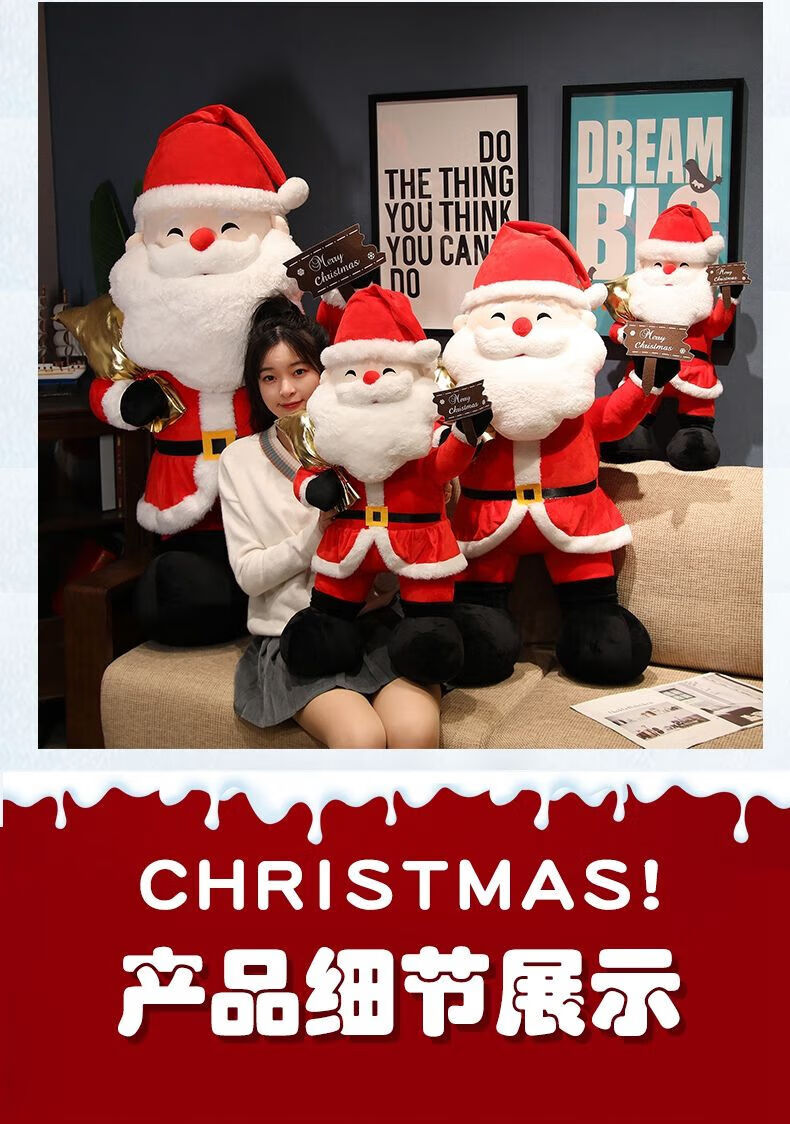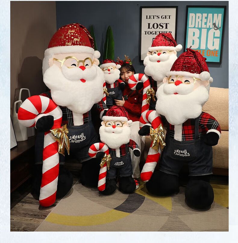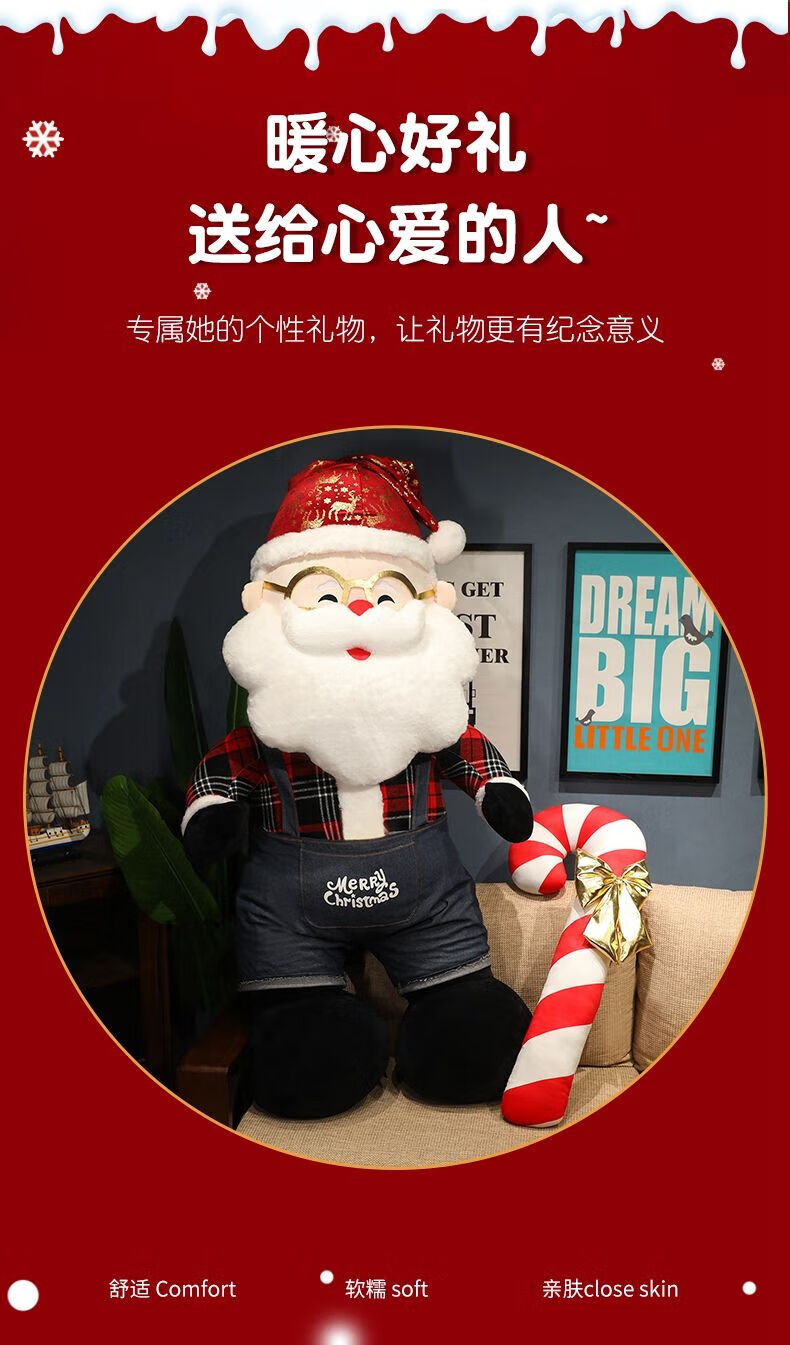 FANCYCHIC Extra Large Santa Claus Doll Plush Toy Doll Rag Doll Christmas Gift Children's Decoration Girls Overalls + Gold Wire Glasses Santa Claus Extra Large 1.6 Meters