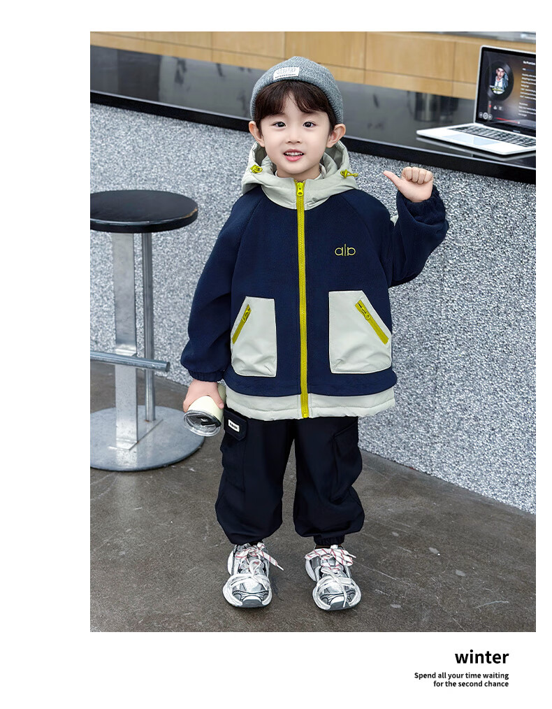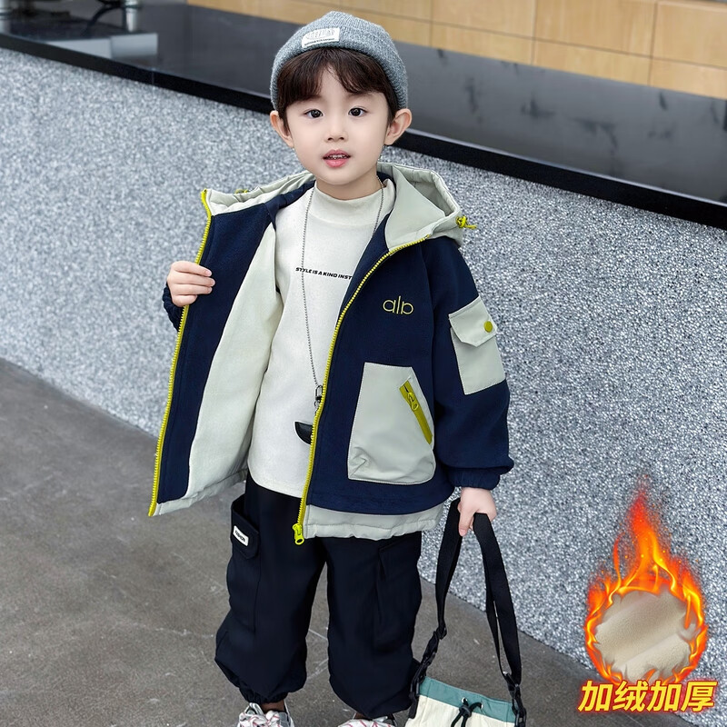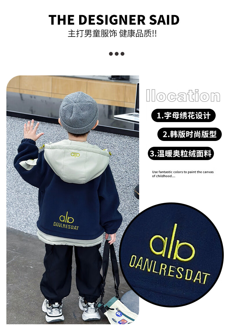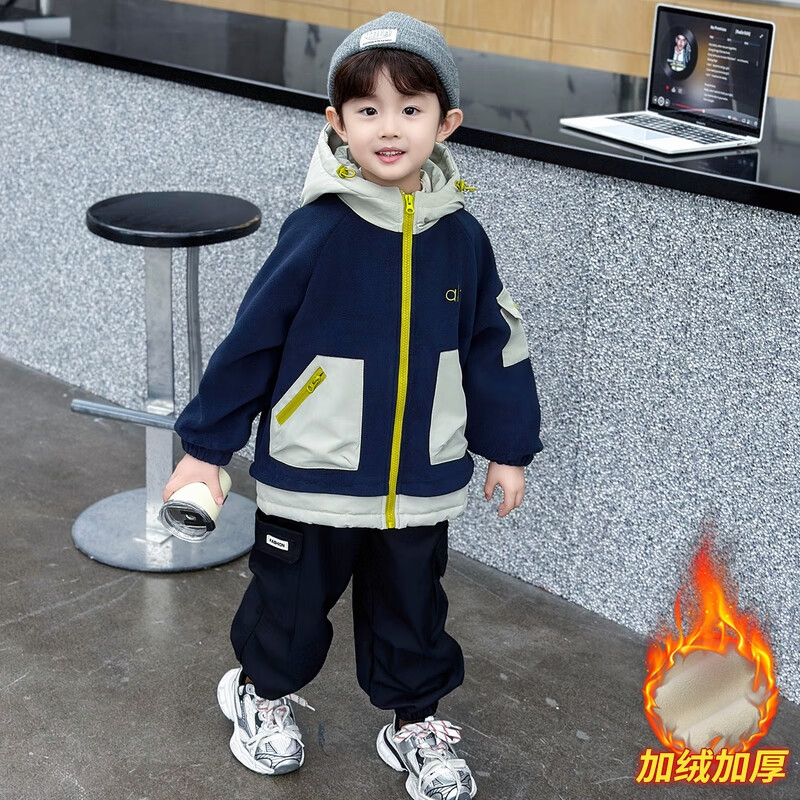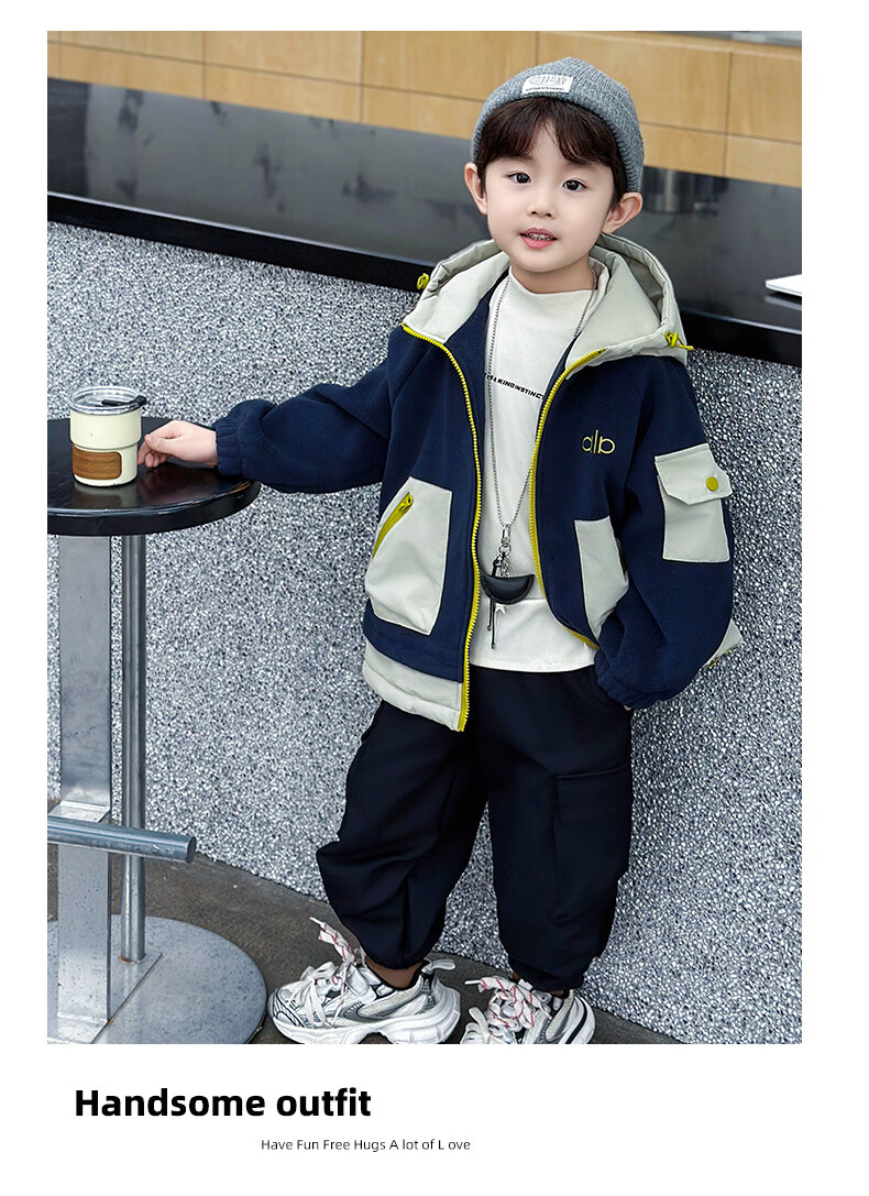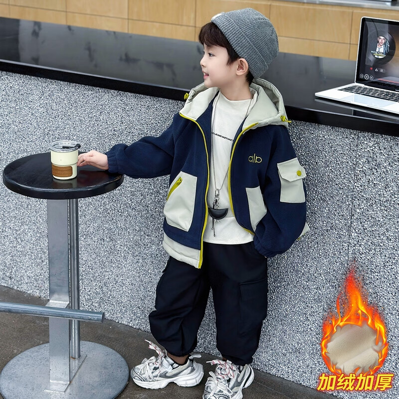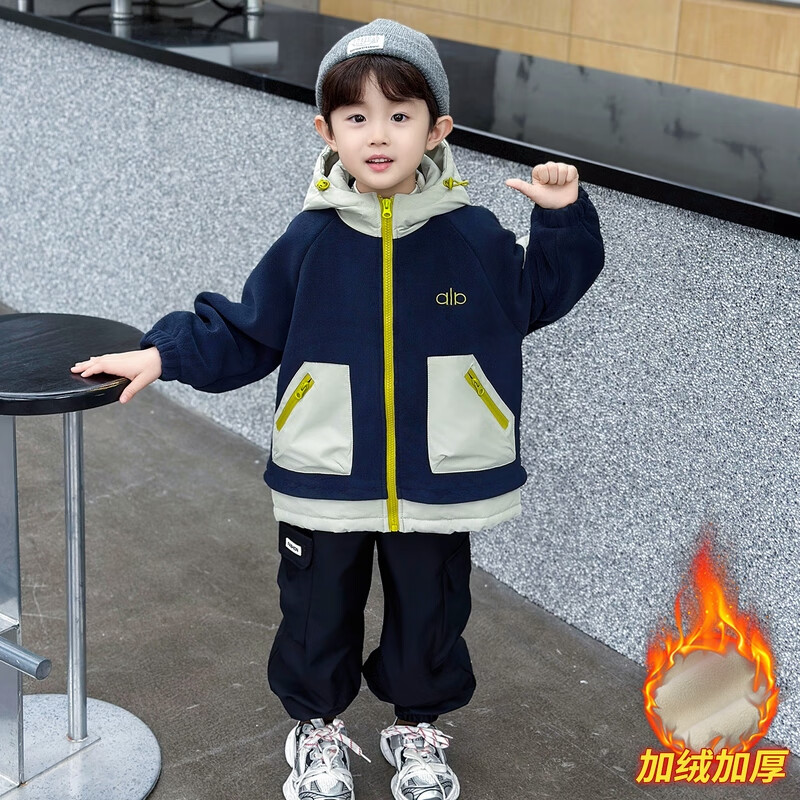 Boys' autumn and winter woolen sweaters, velvet thickened jackets, children's style jackets, 2025 new Austrian velvet tops, navy blue 120