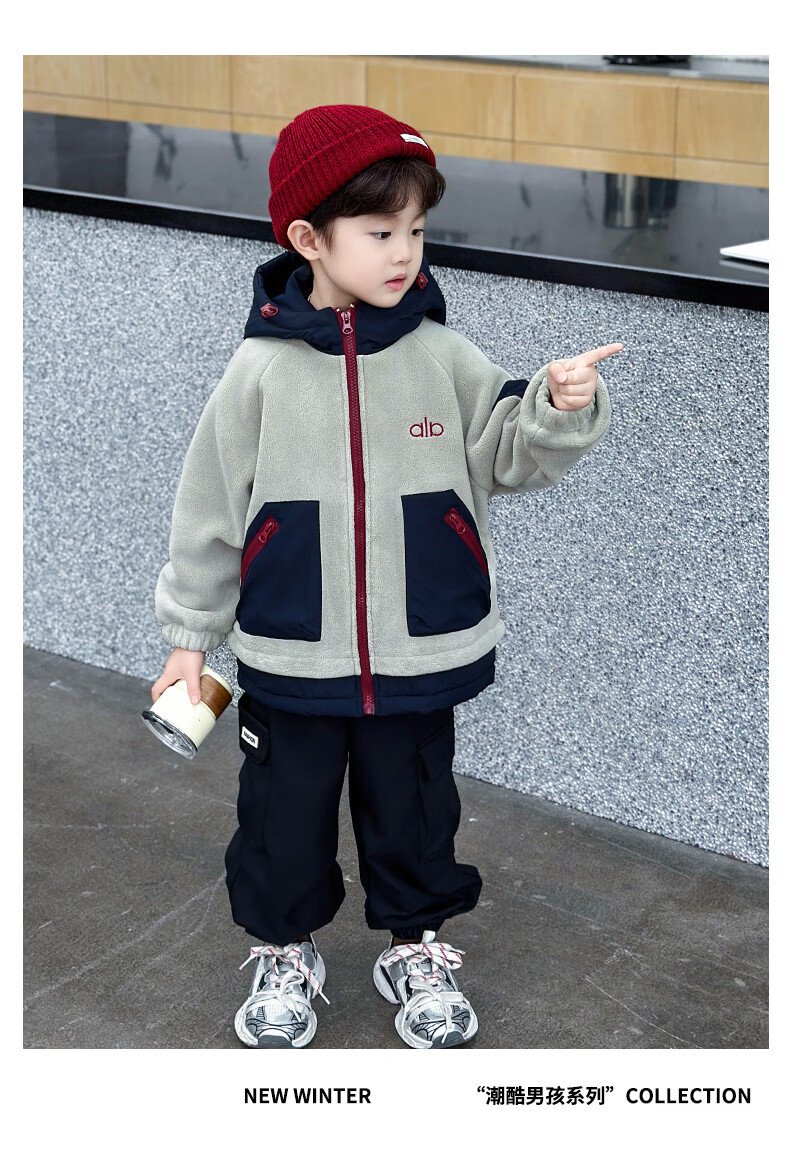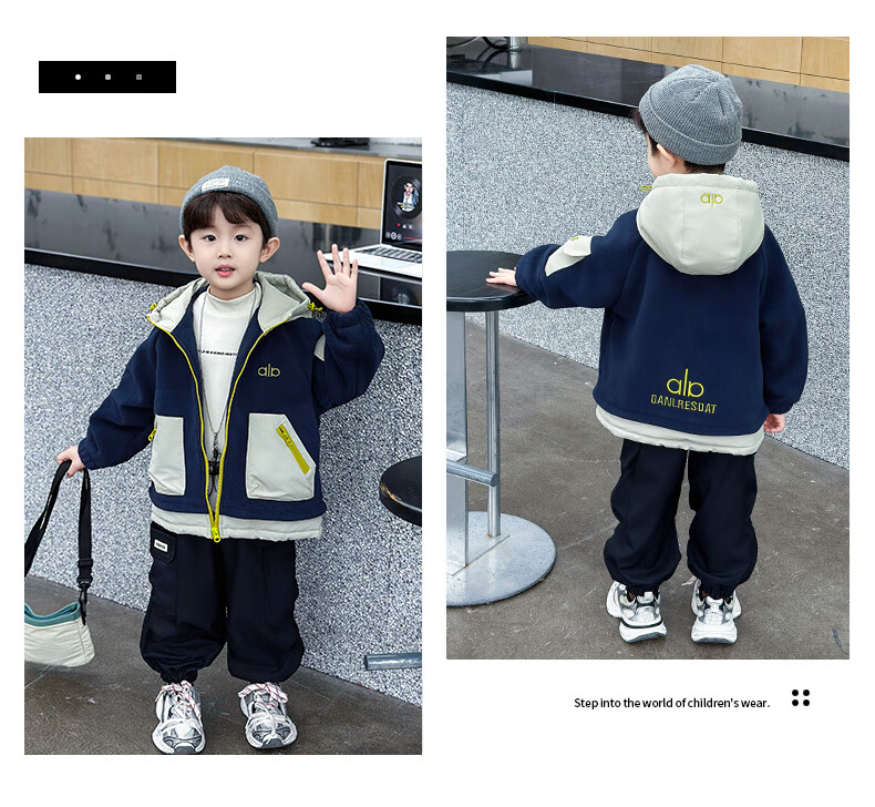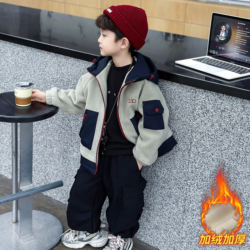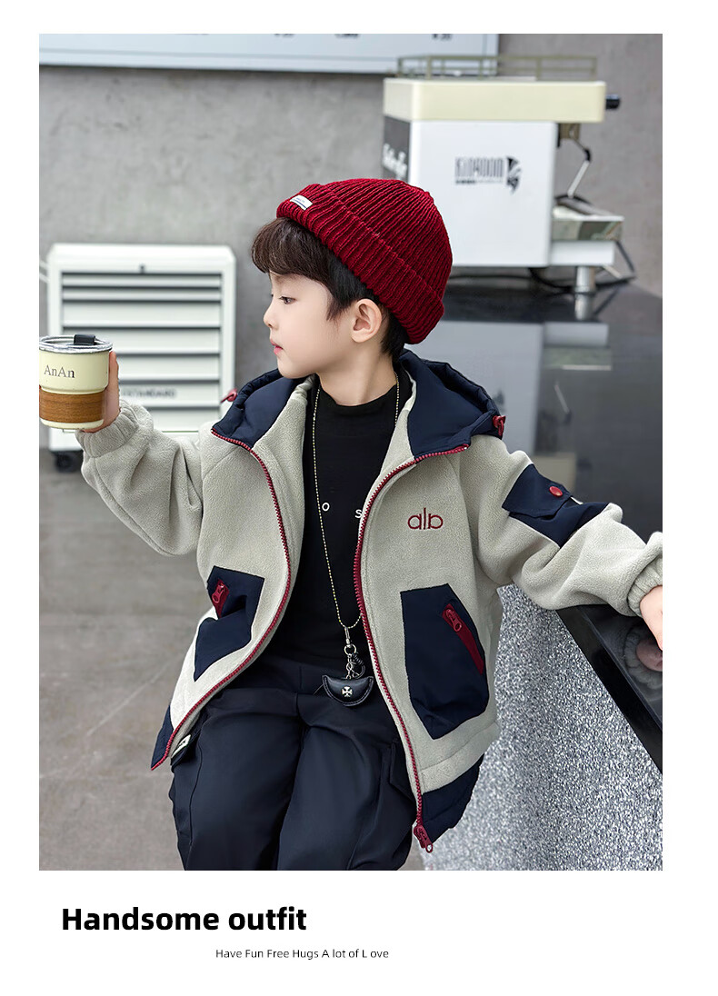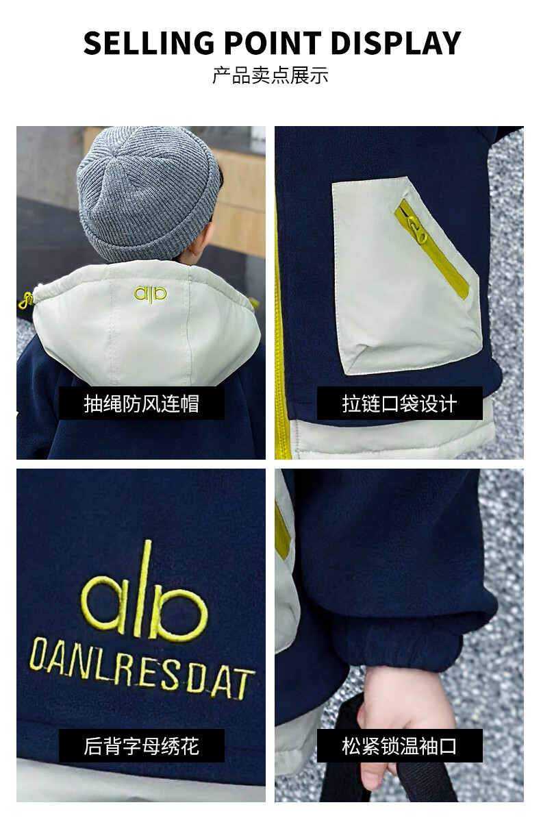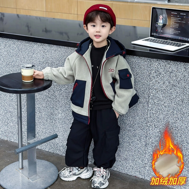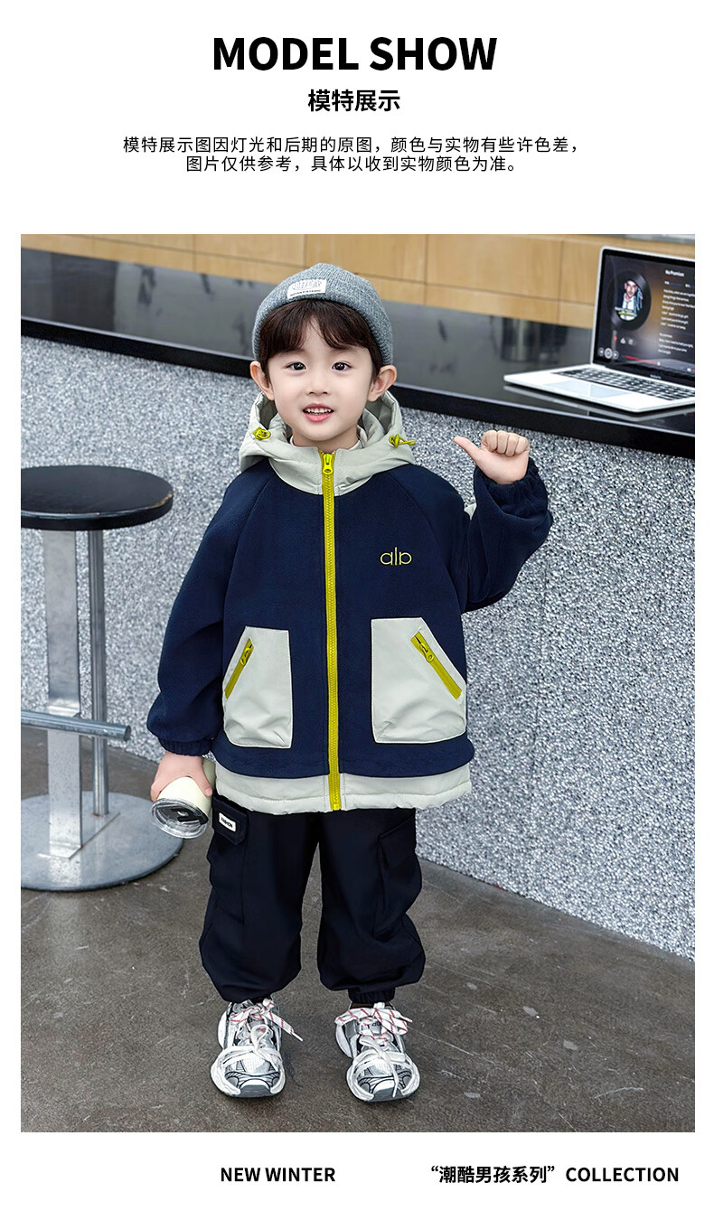 Boys' autumn and winter woolen sweaters, velvet thickened jackets, children's style jackets, 2025 new Austrian velvet tops, navy blue 120