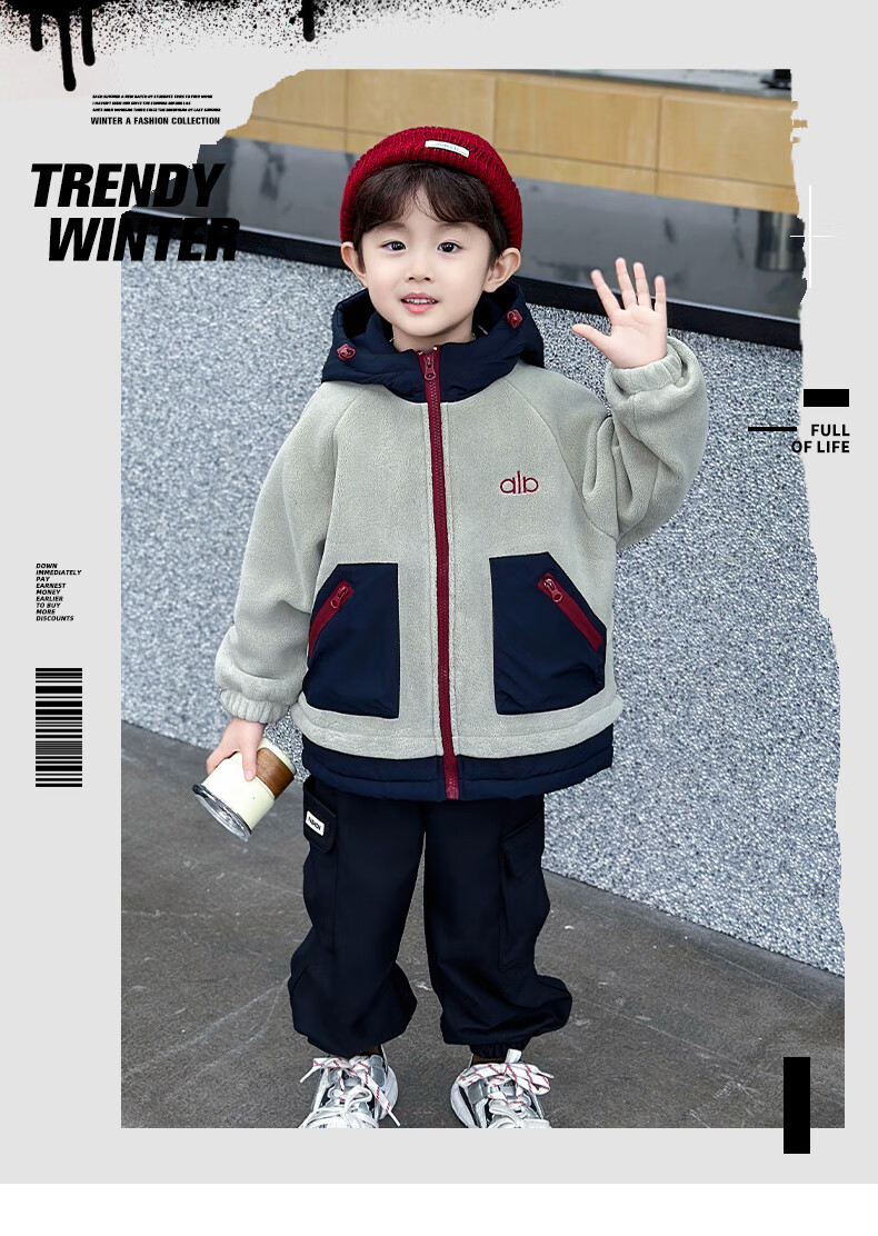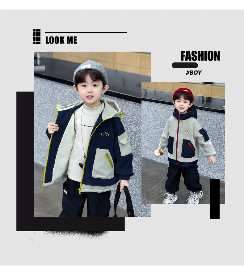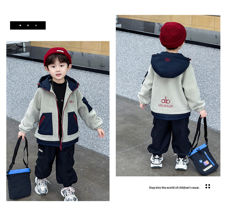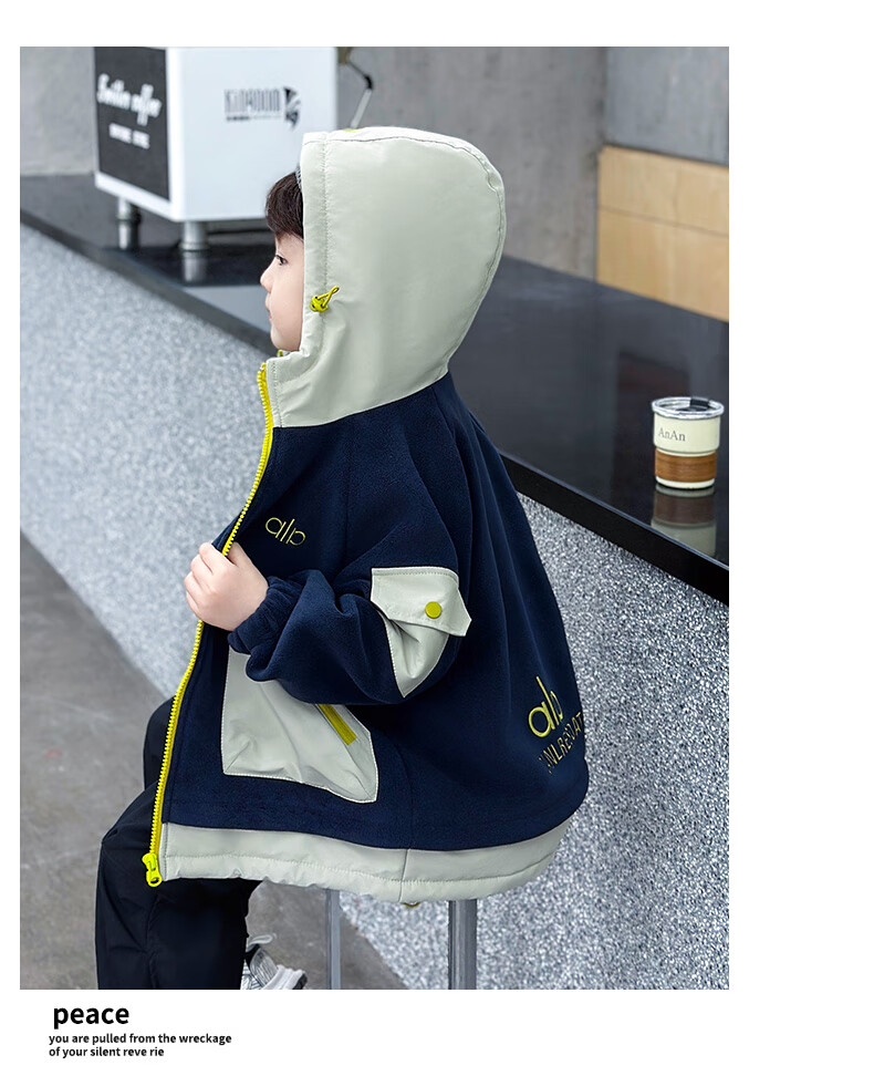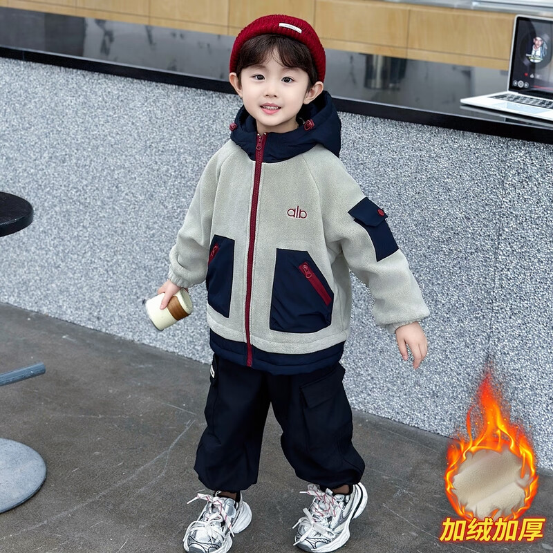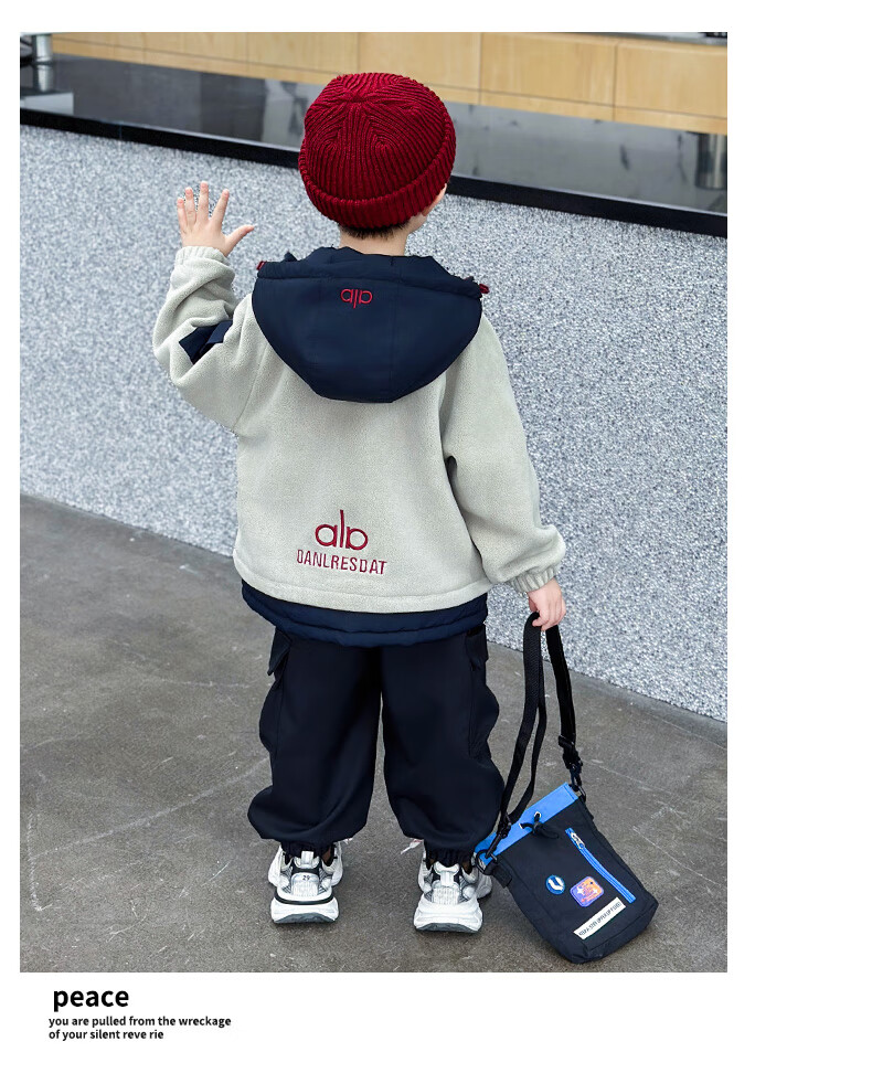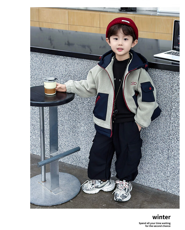 Boys' autumn and winter woolen sweaters, velvet thickened jackets, children's style jackets, 2025 new Austrian velvet tops, navy blue 120