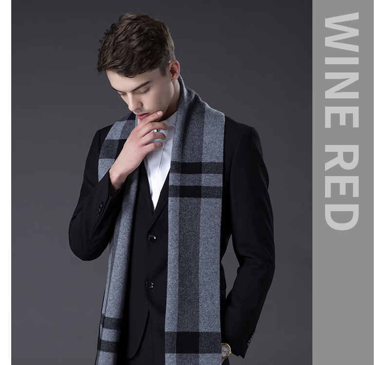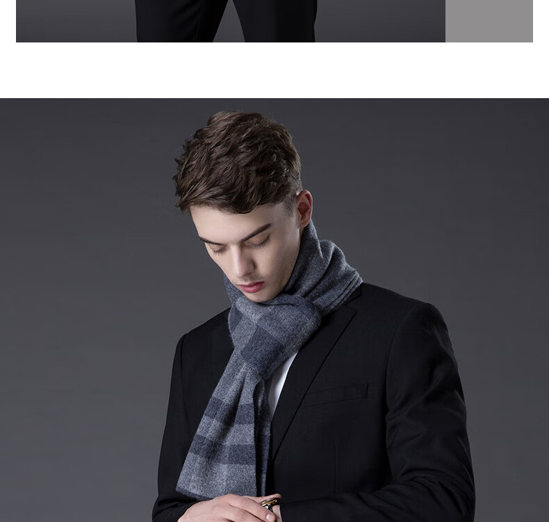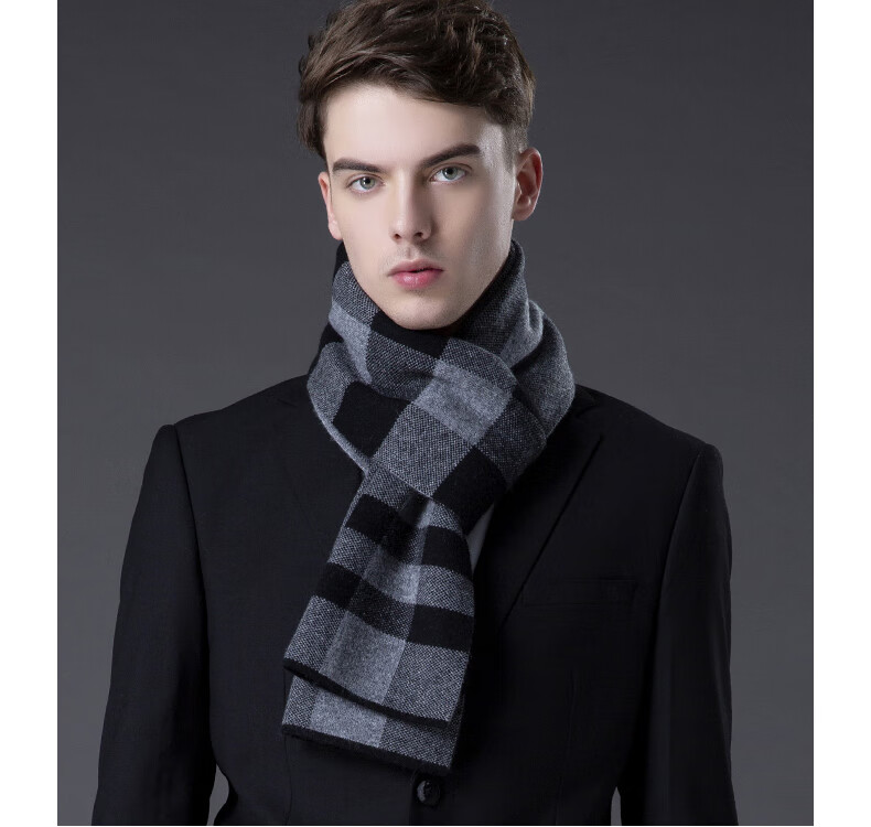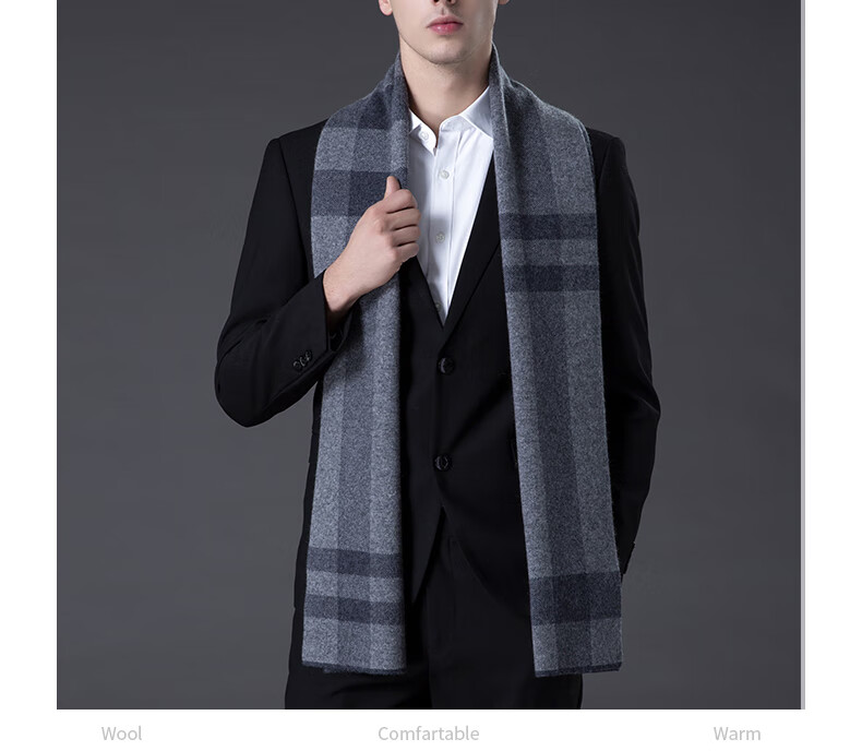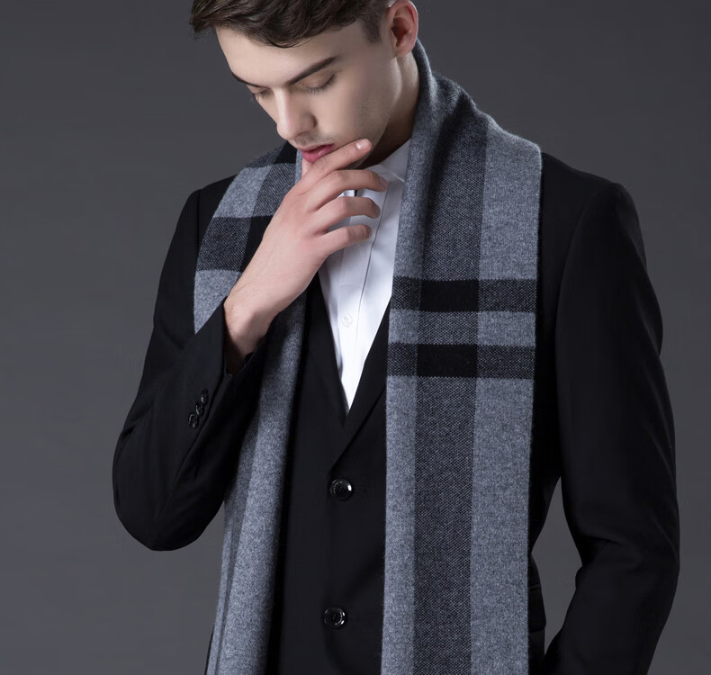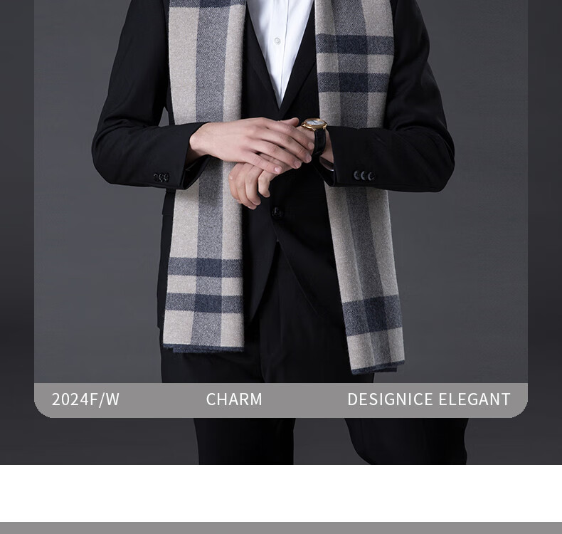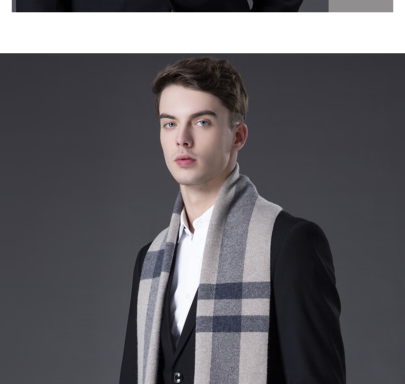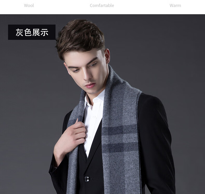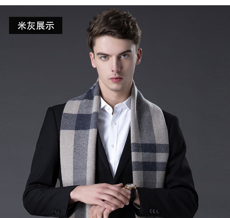 ERDOS Ordos pure wool scarf men's winter birthday gift versatile warm scarf men's scarf gift box rice gray-PY3008
